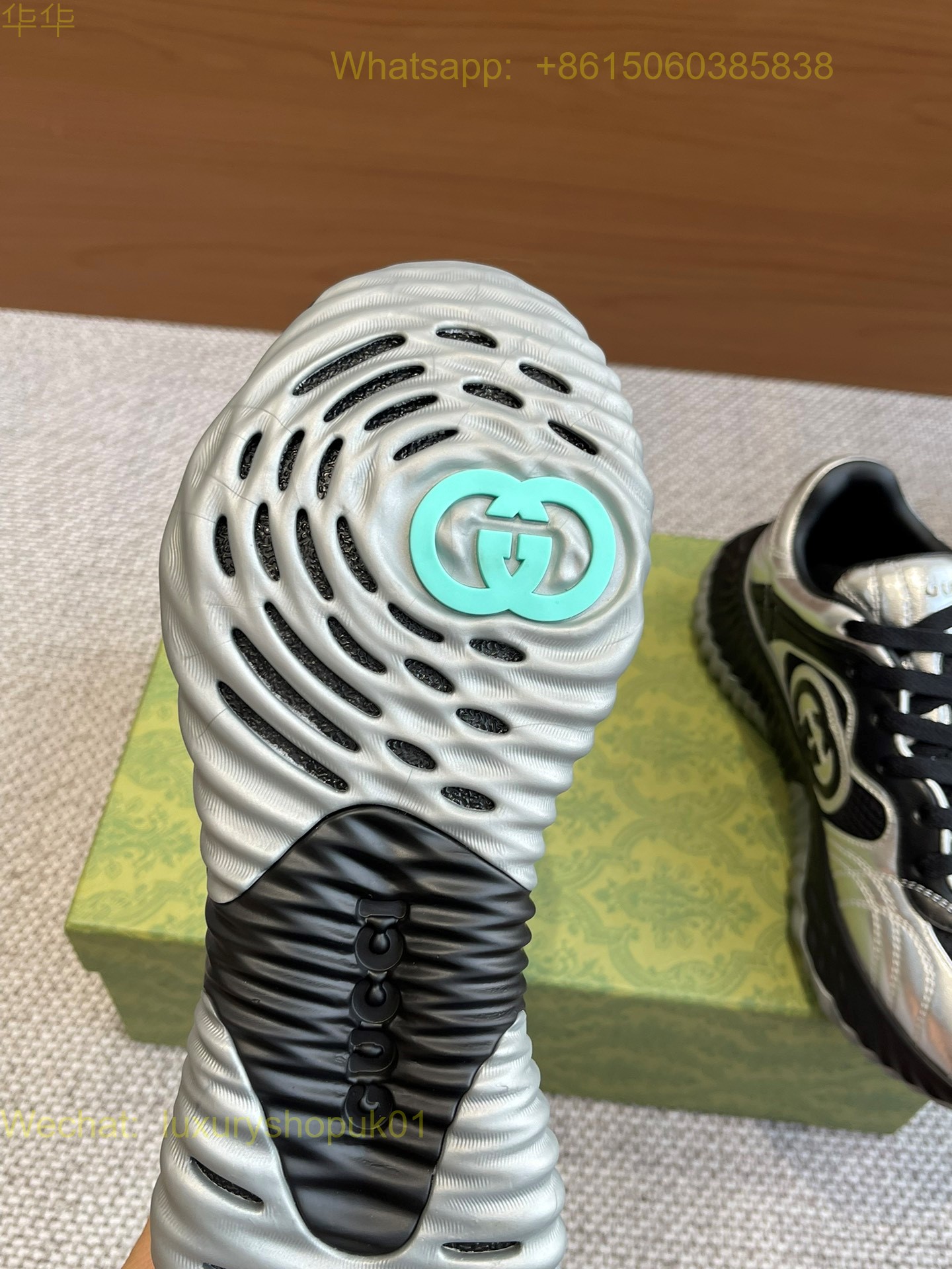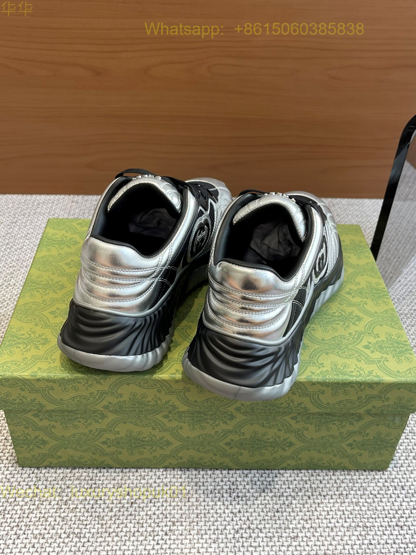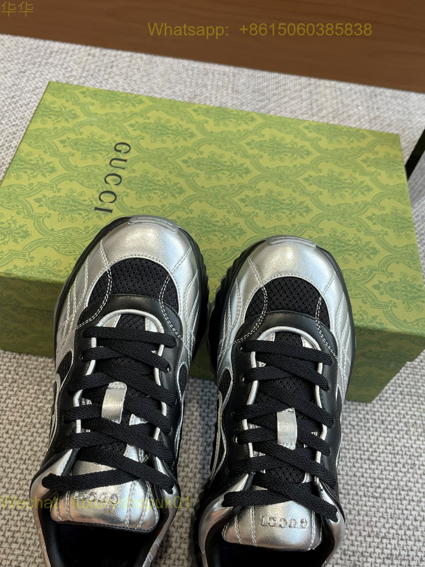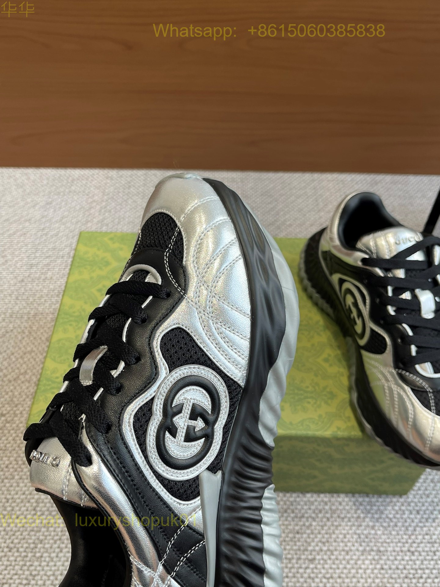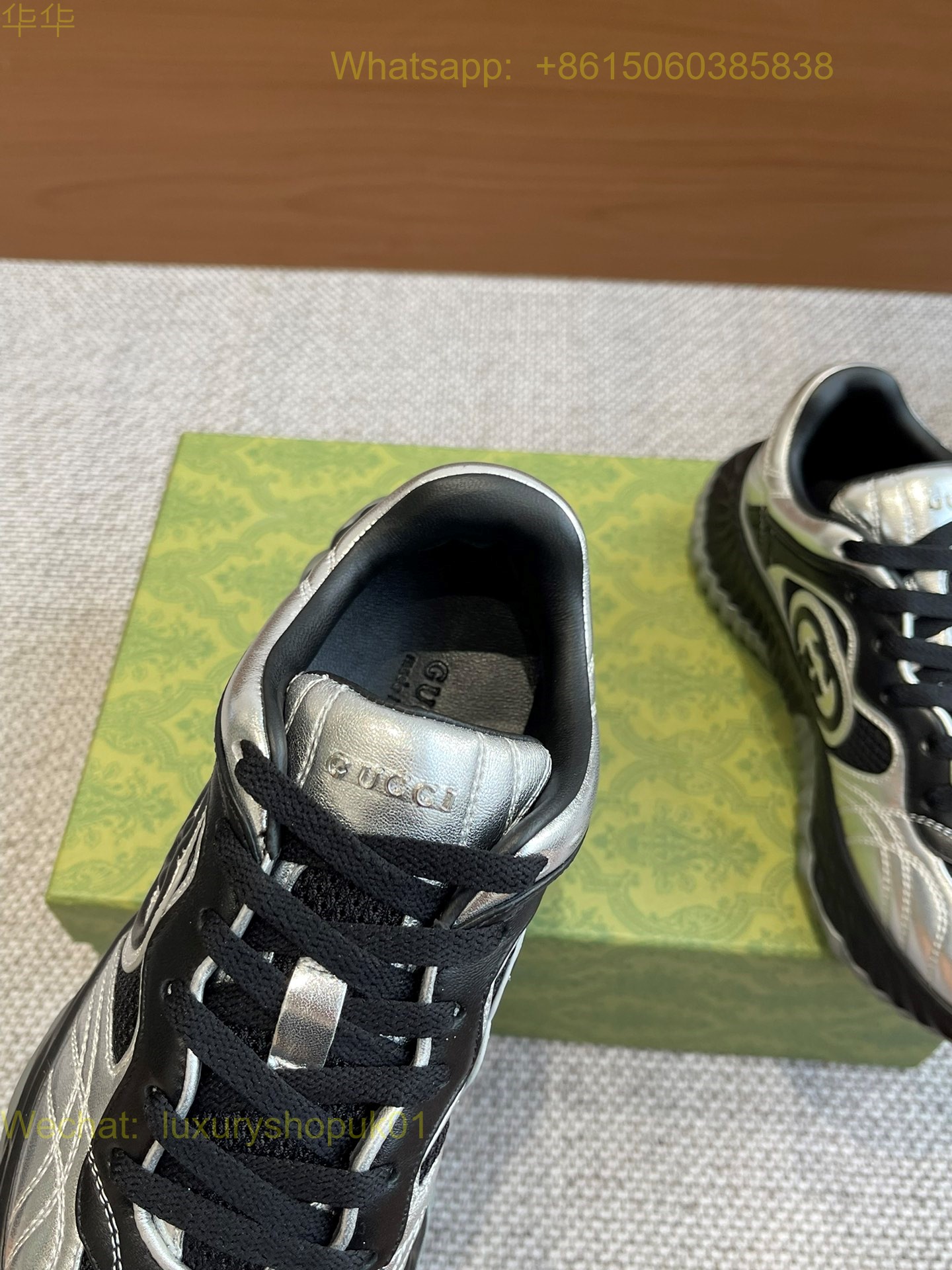Gucci Web Leather GG Canvas Sneakers Women Mens Shoes