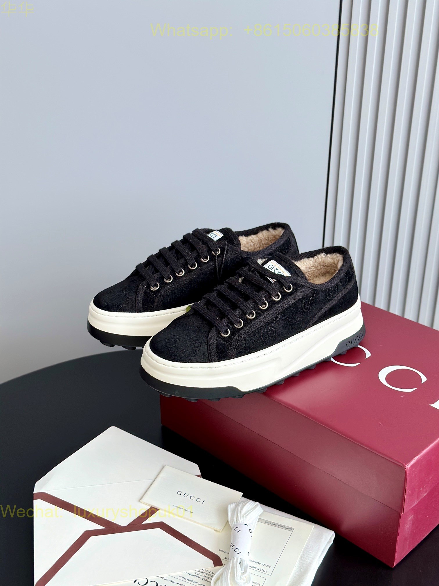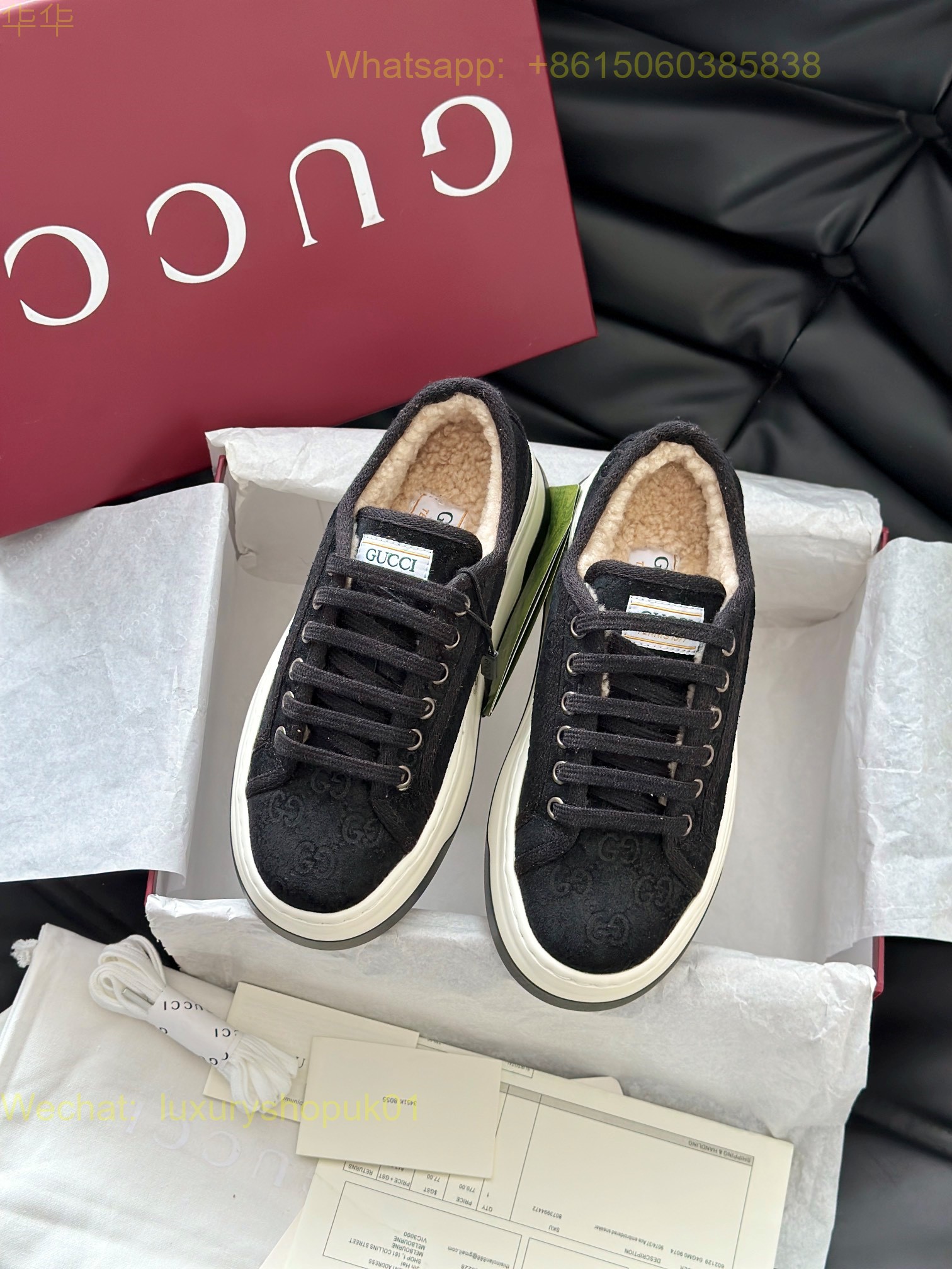 Gucci Fur shearling Sneaker Mens Women GG Shoes