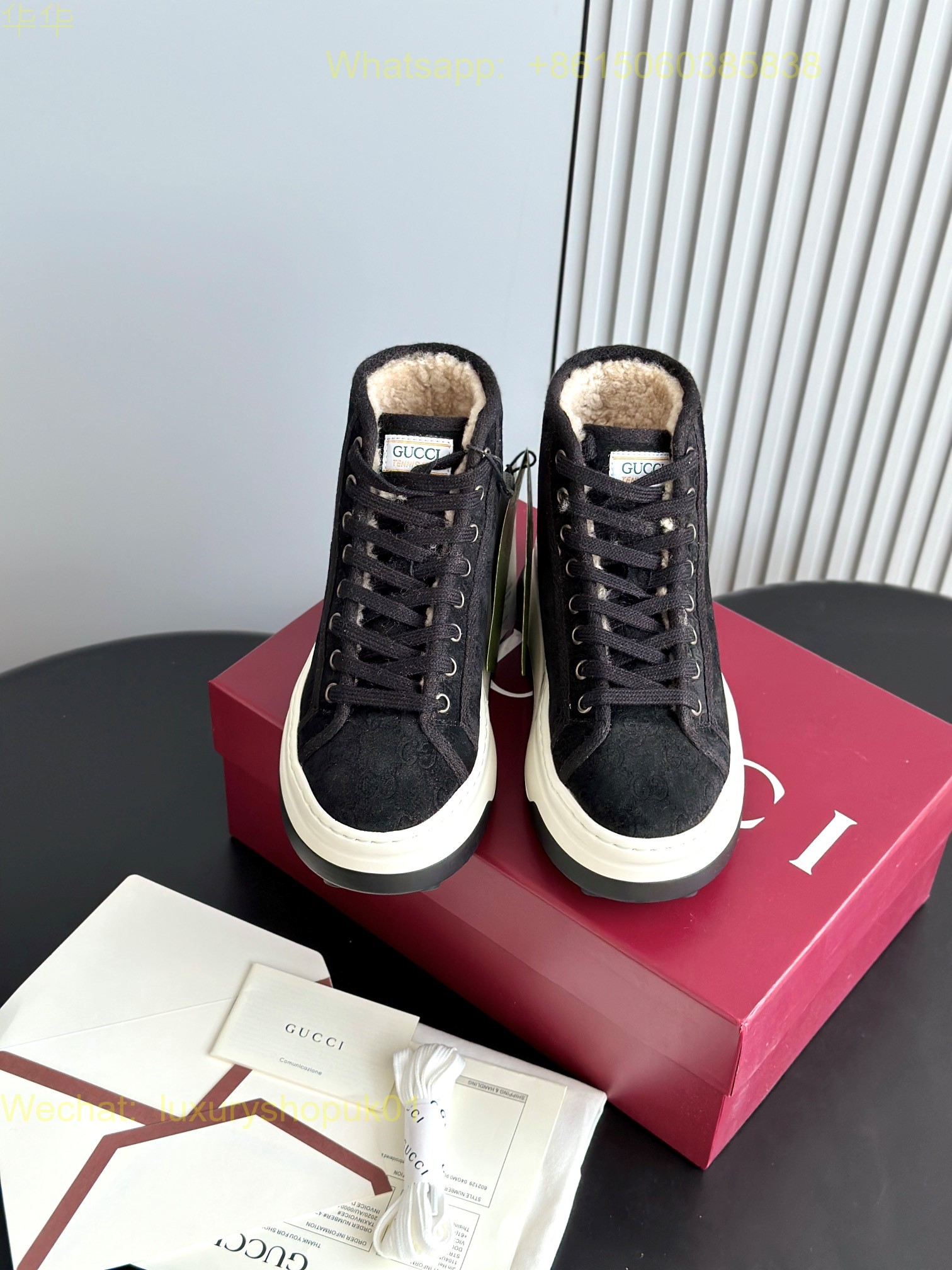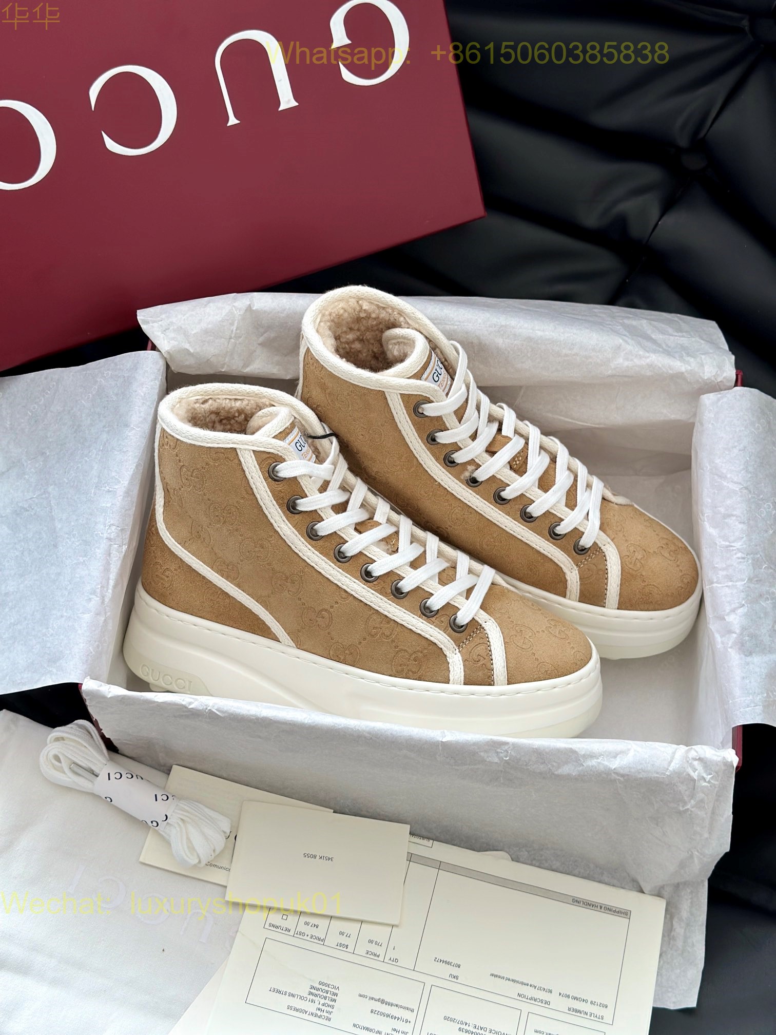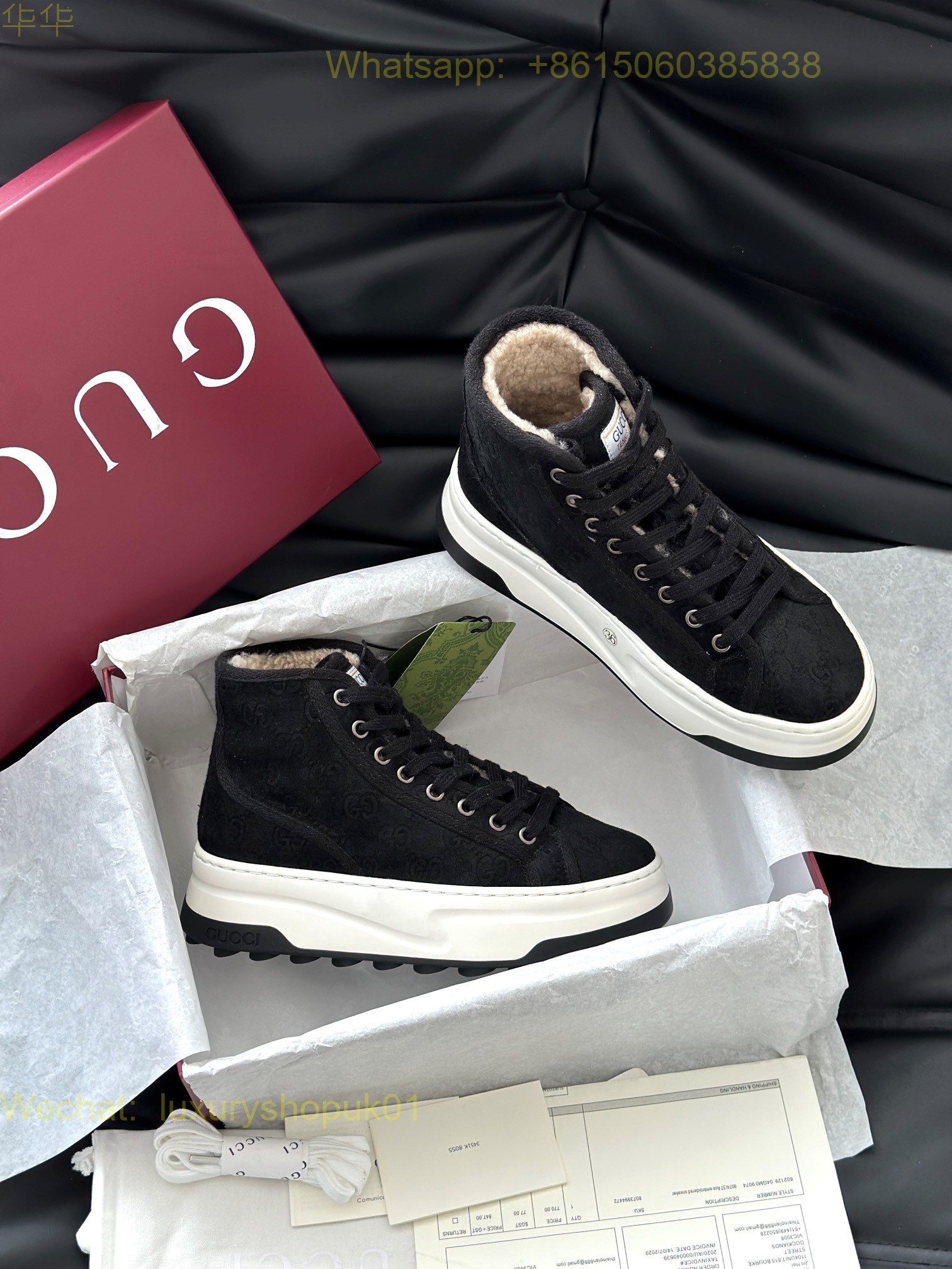 Gucci Fur shearling high top Sneaker Mens Women GG Shoes