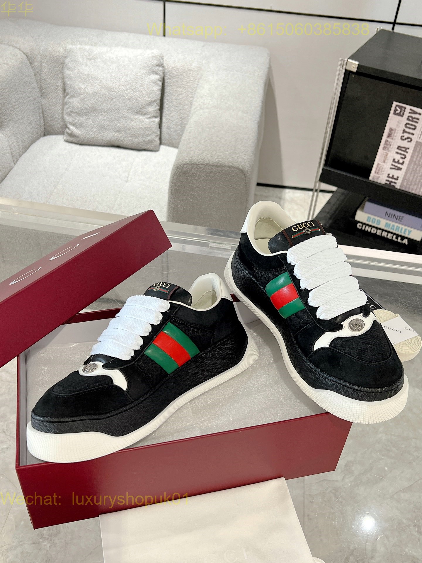 Gucci Rhyton Leather Vintage Sneaker Mens Women Shoes