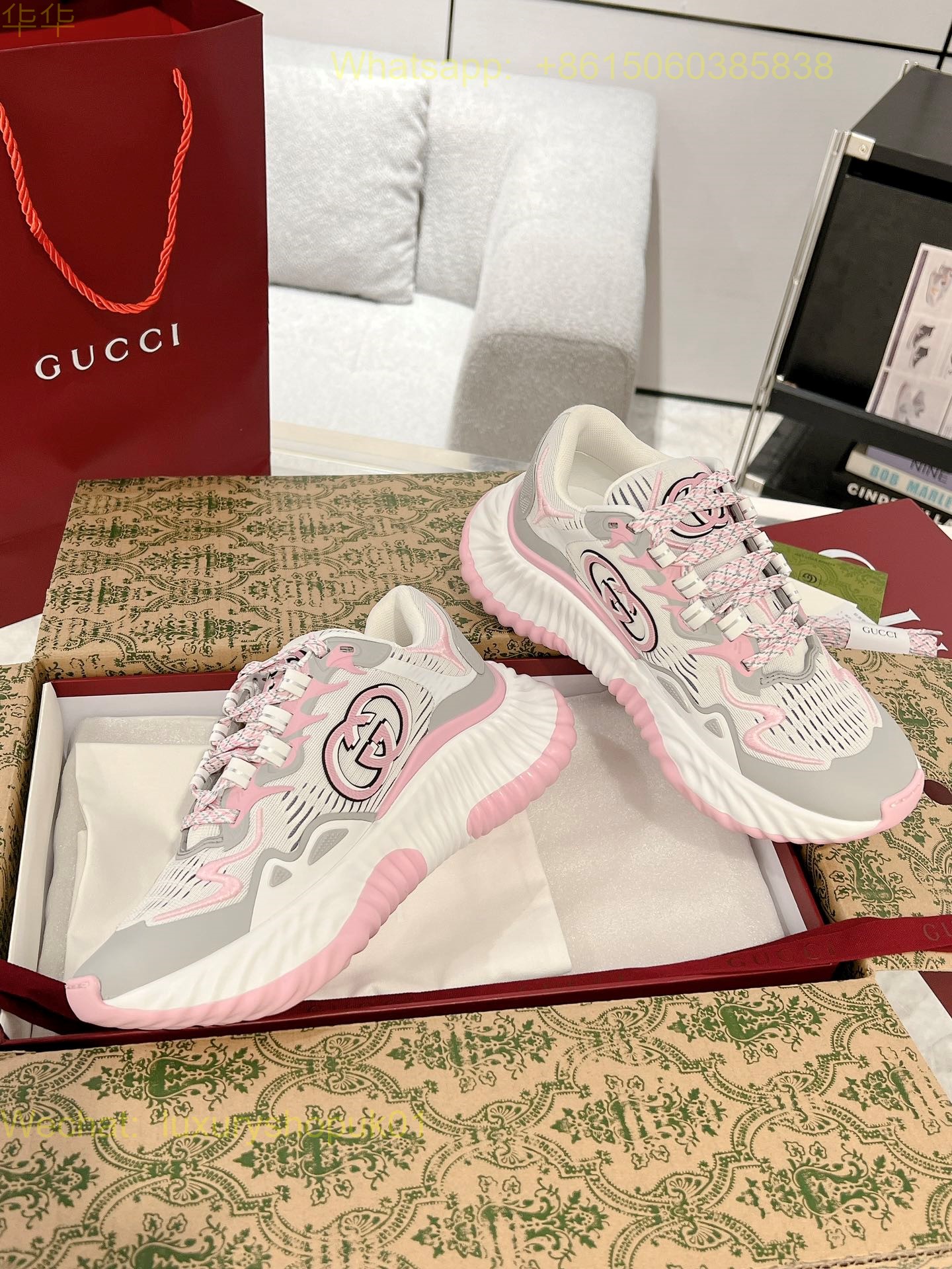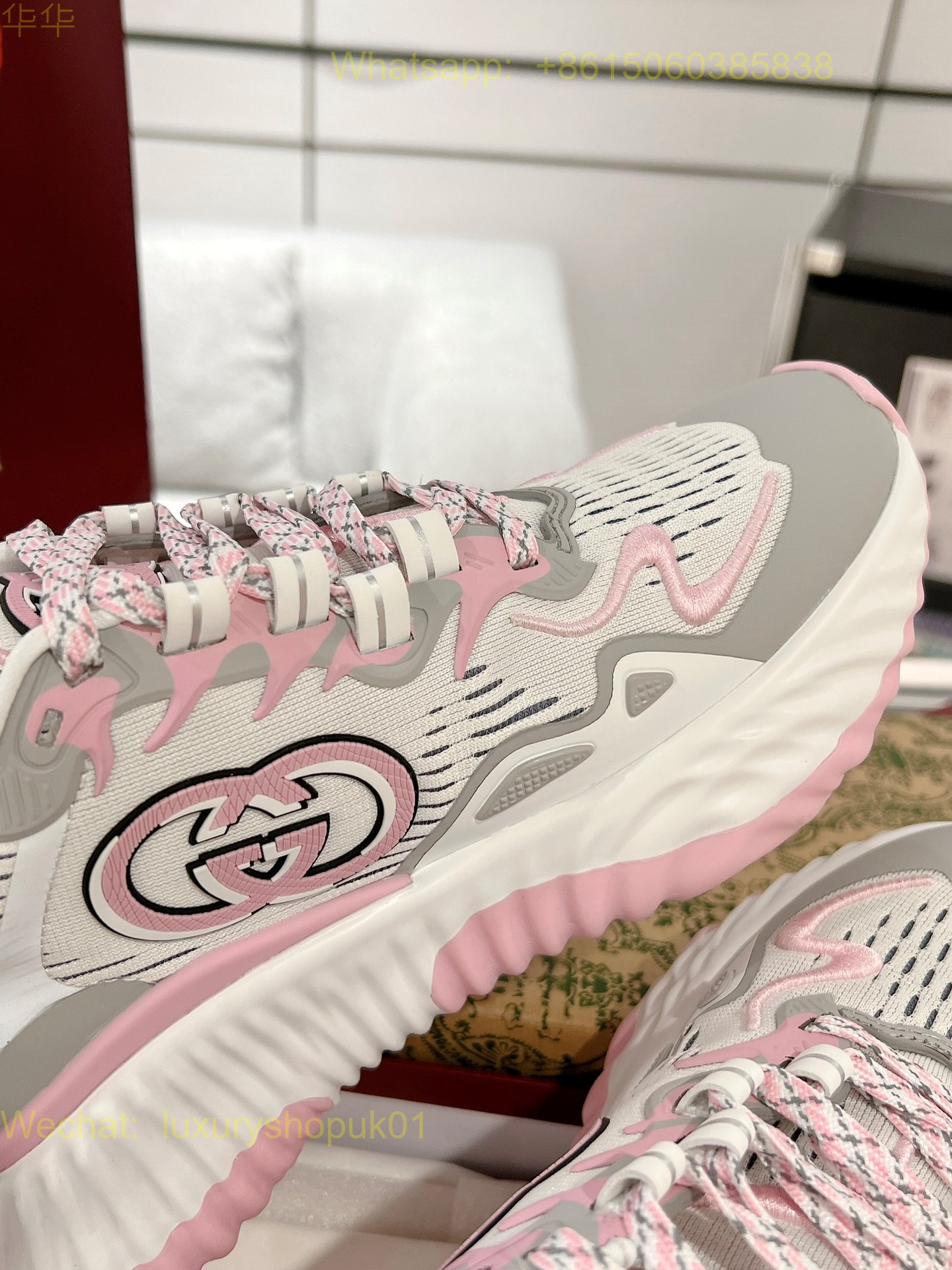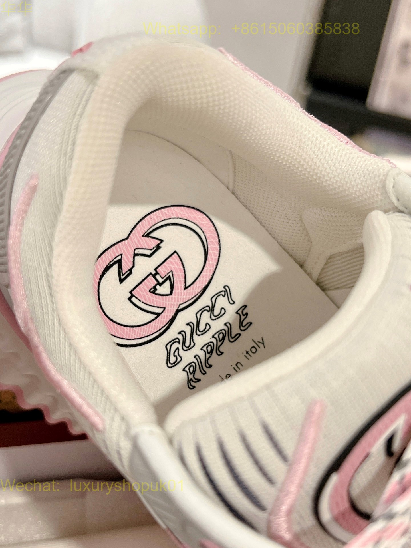 Gucci Ripple sneaker pale pink leather Mens Women Shoes