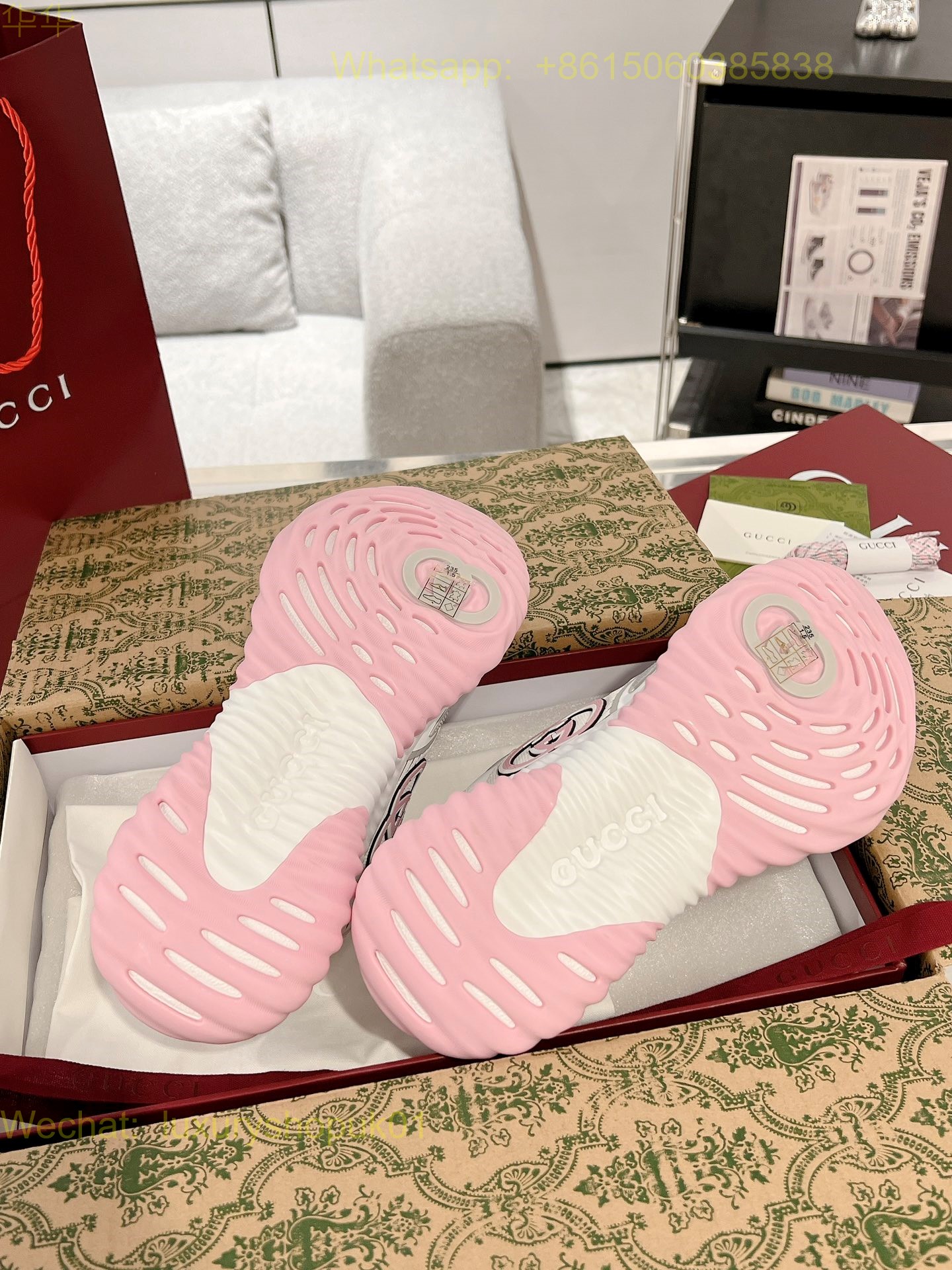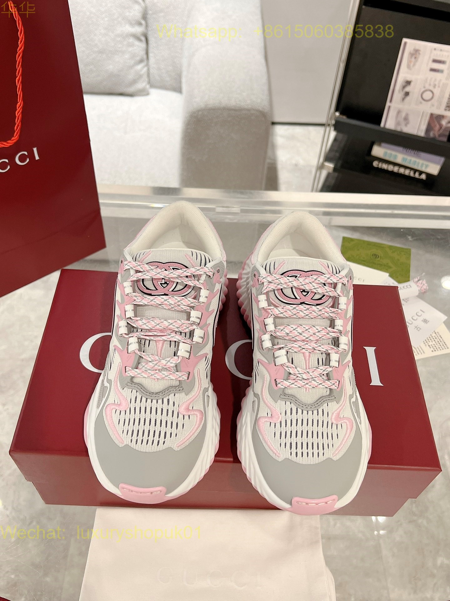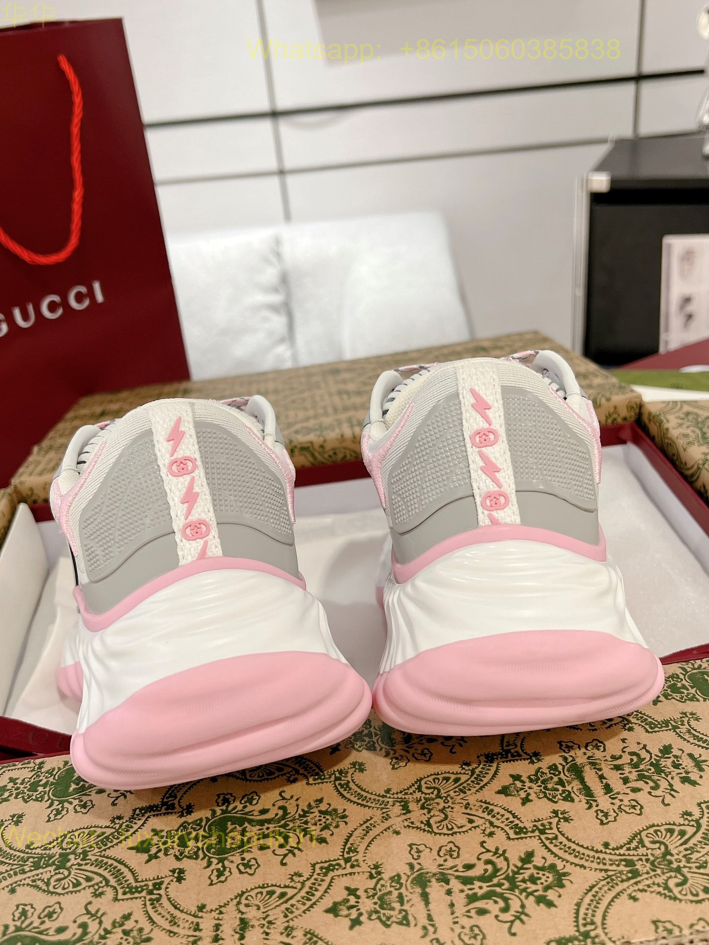 Gucci Ripple sneaker pale pink leather Mens Women Shoes