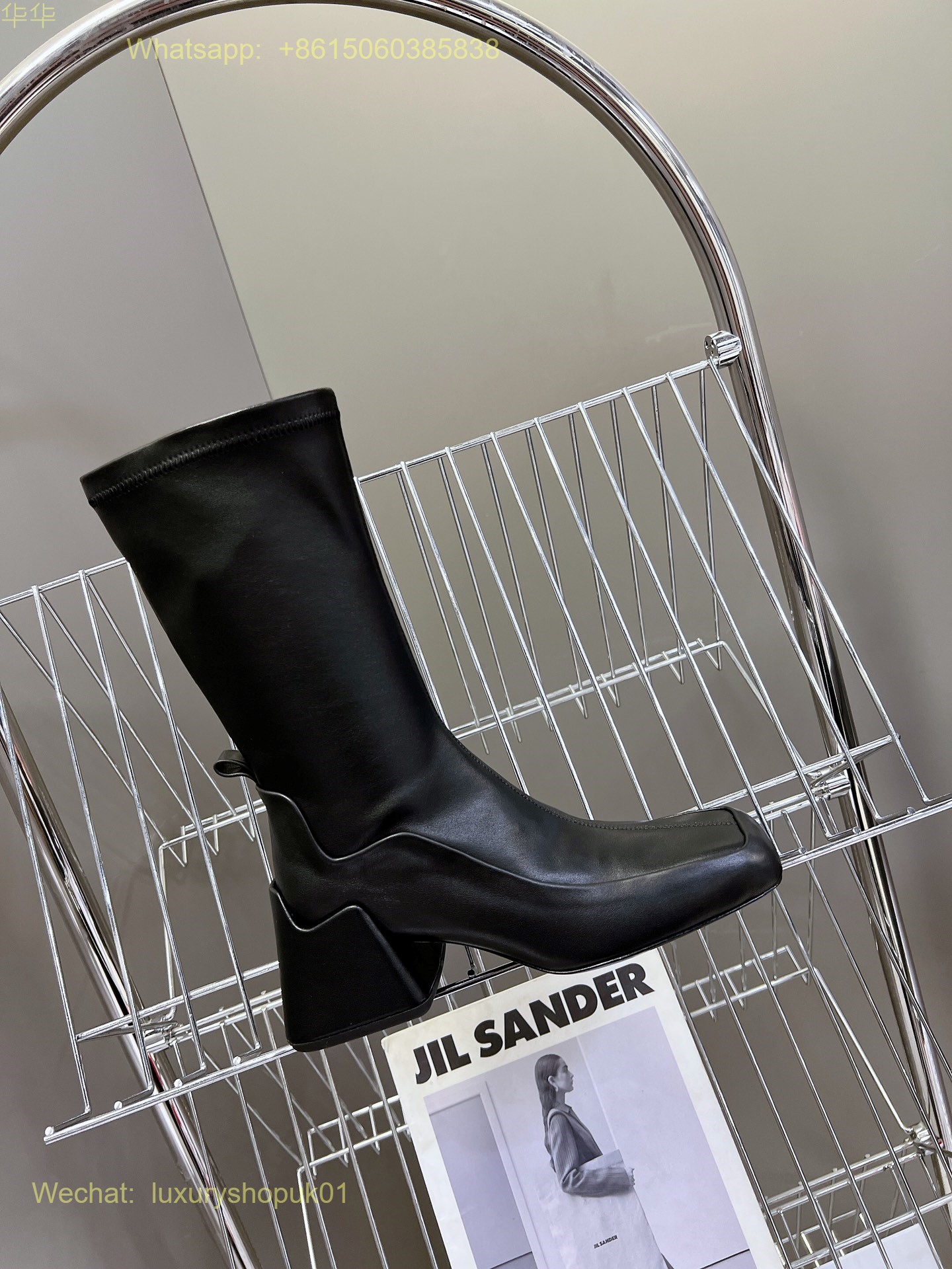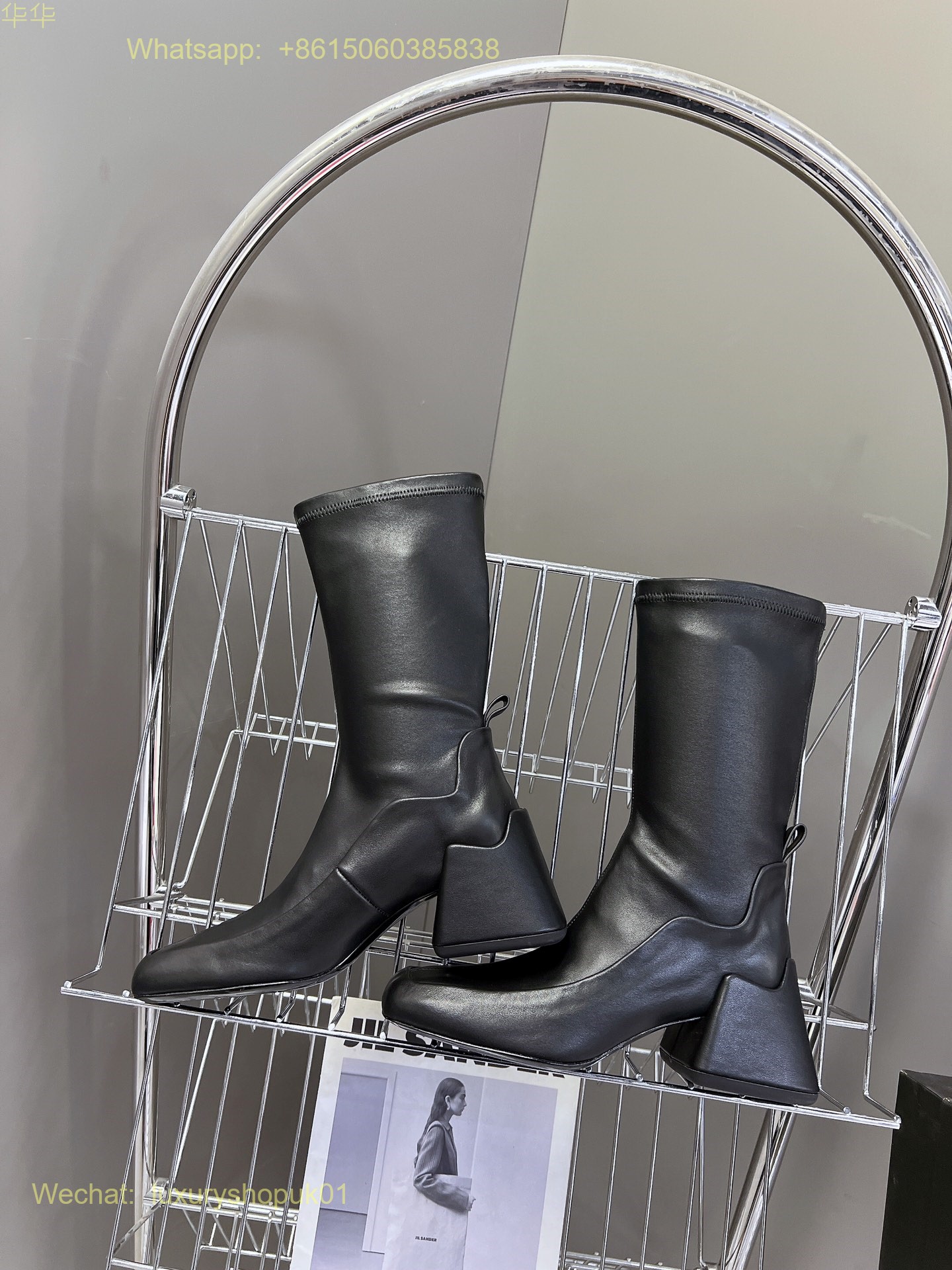 Jil Sander Block-Heel Leather Boots Women Shoes