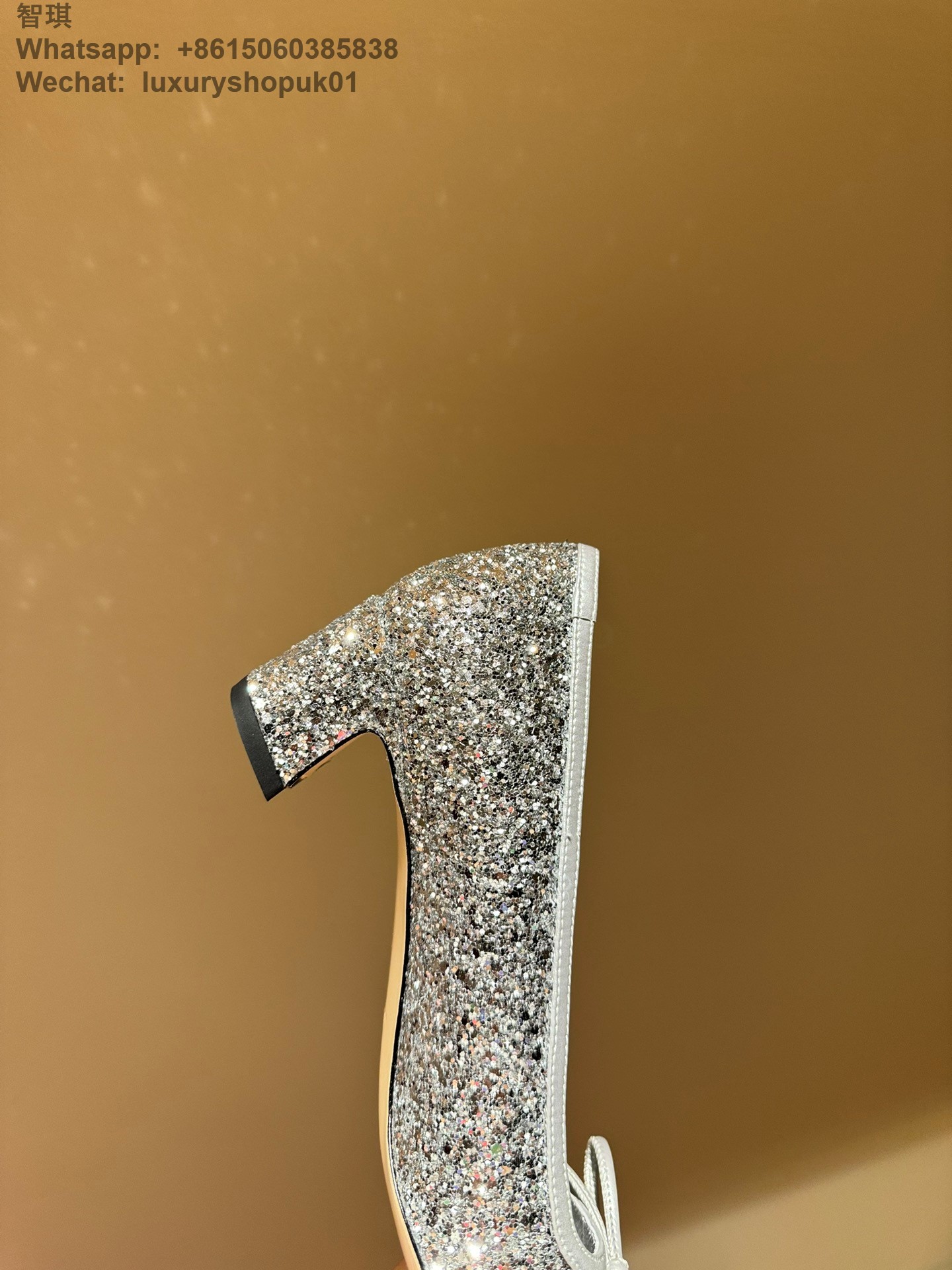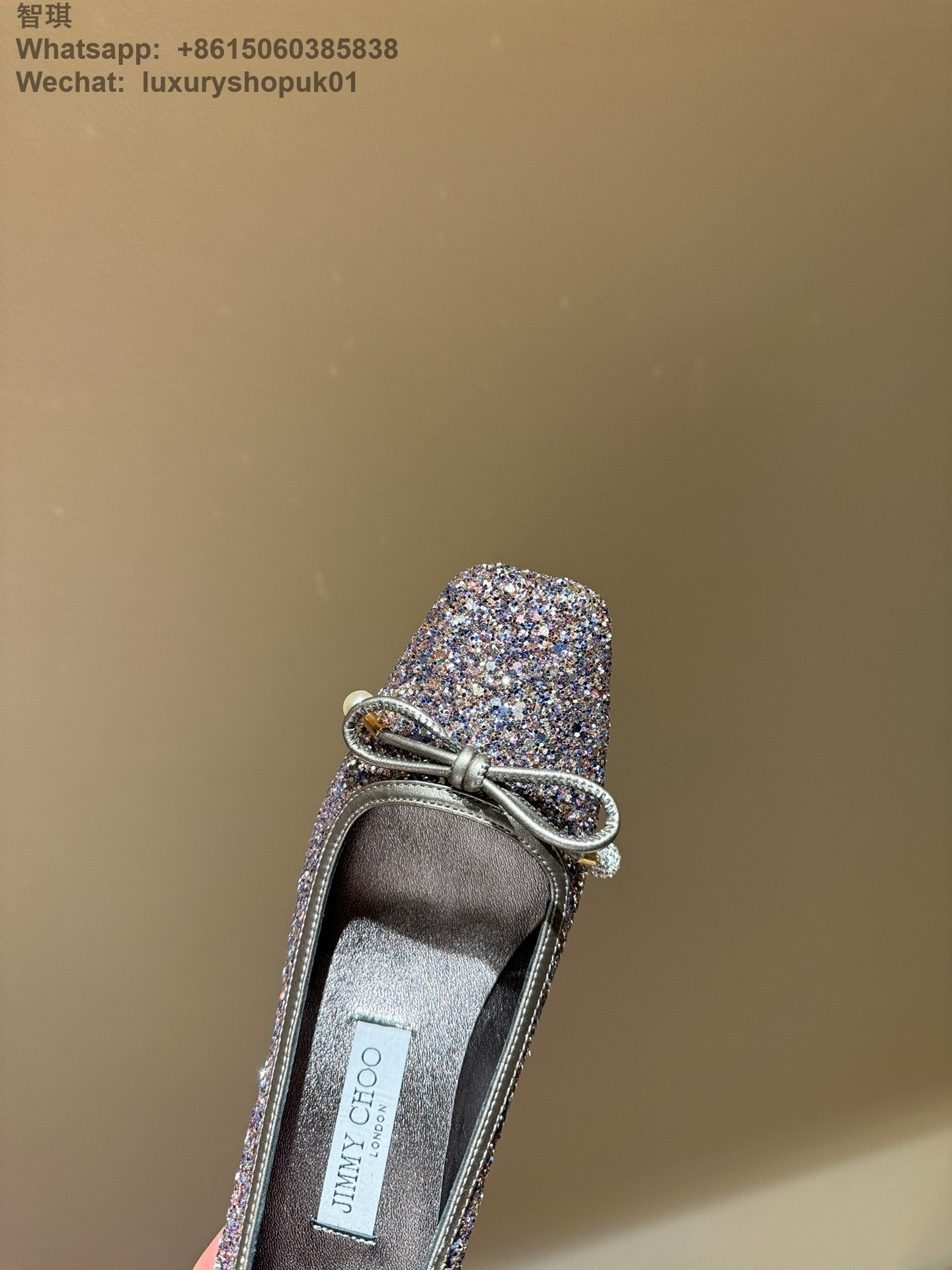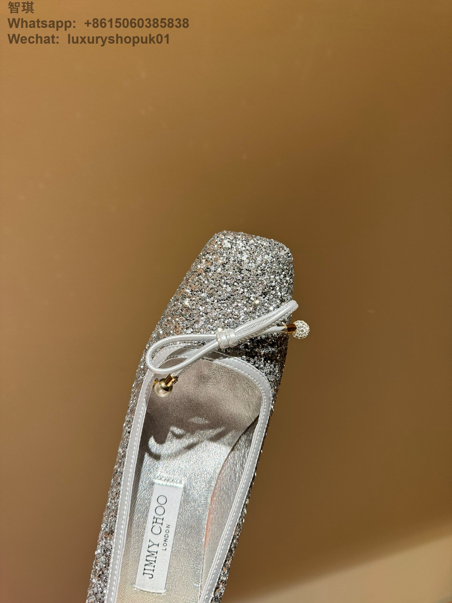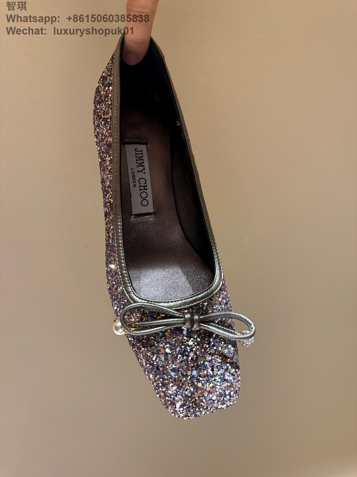Jimmy Choo Elme Leather Bow Ballerina Pumps Women Shoes glitter