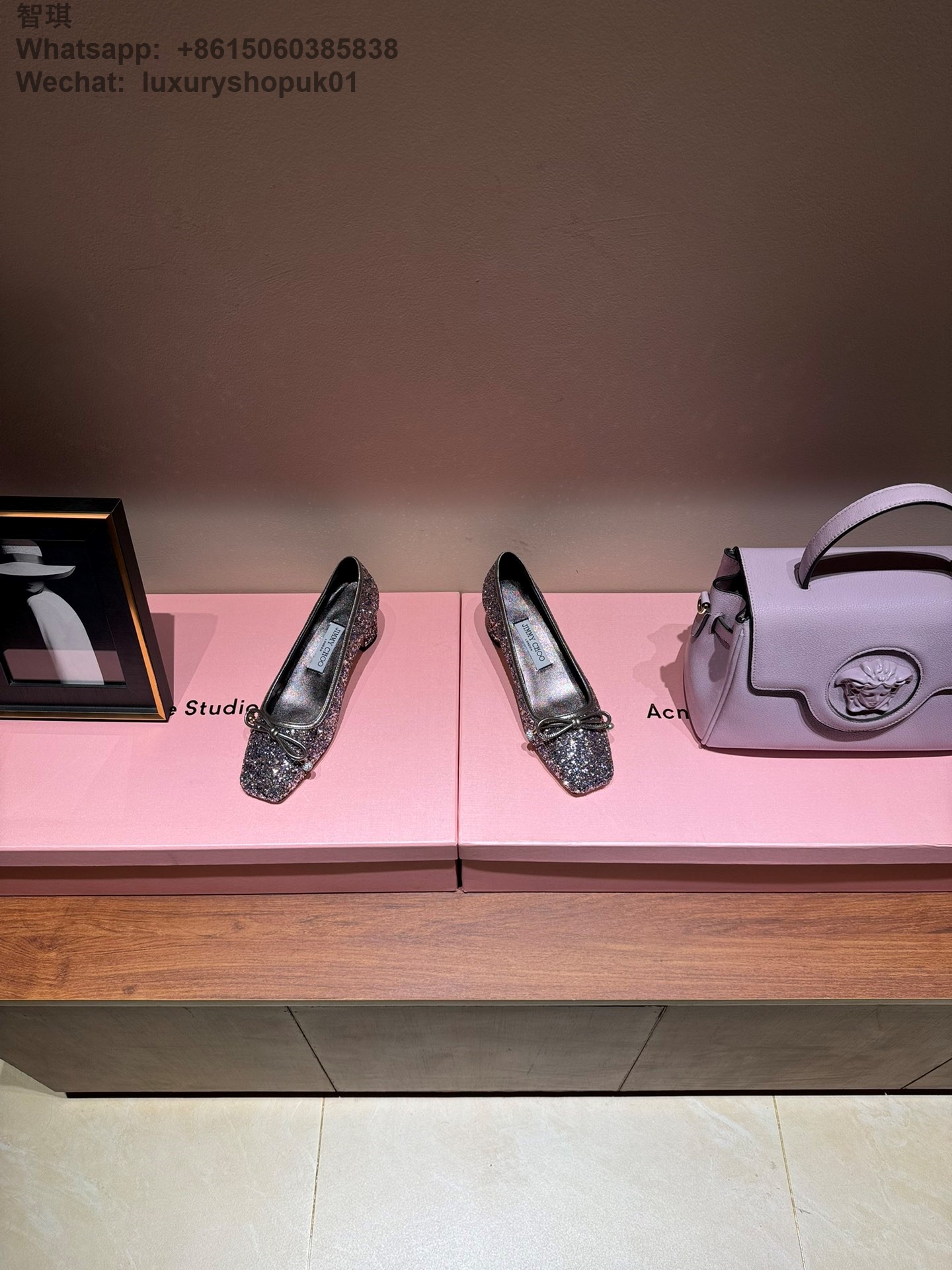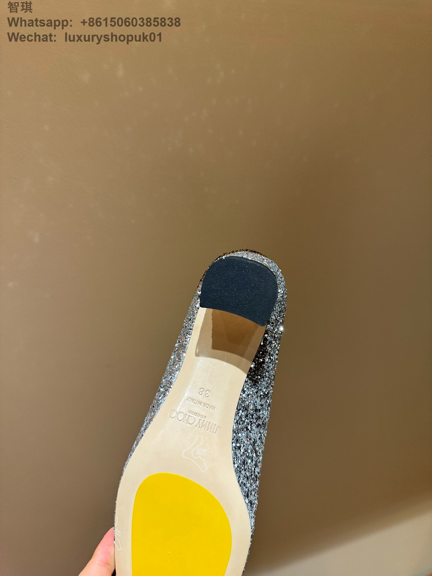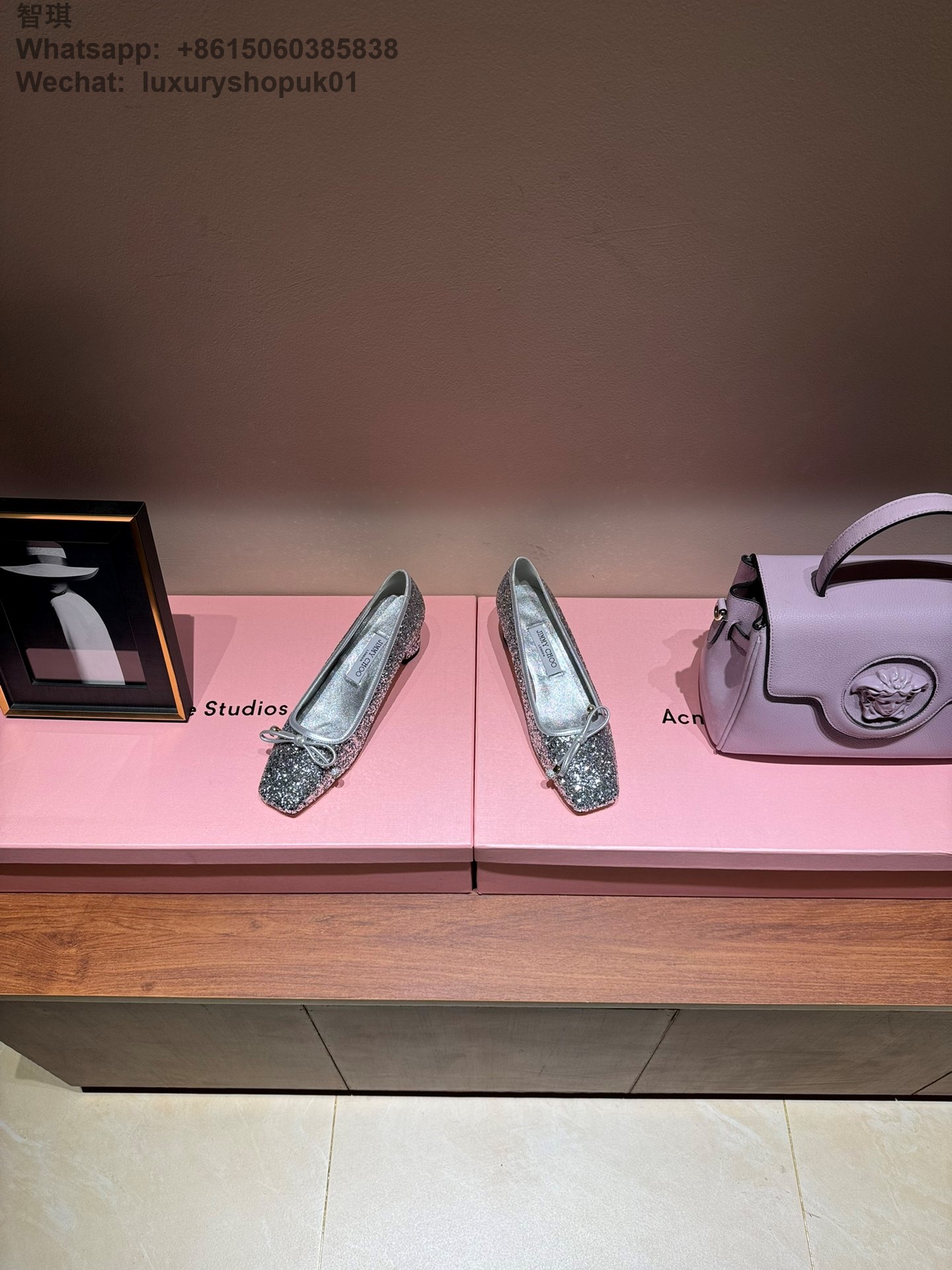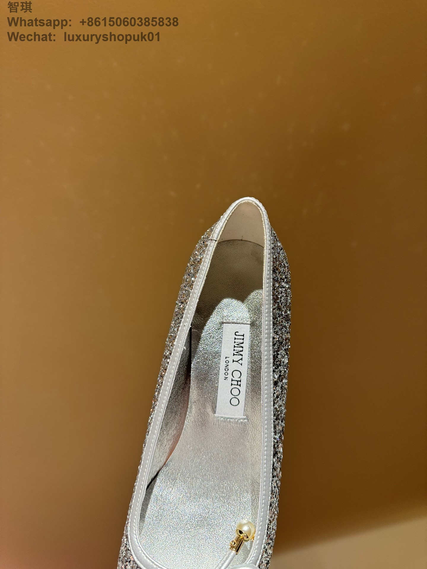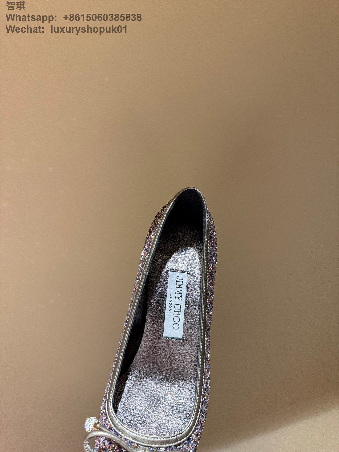 Jimmy Choo Elme Leather Bow Ballerina Pumps Women Shoes glitter