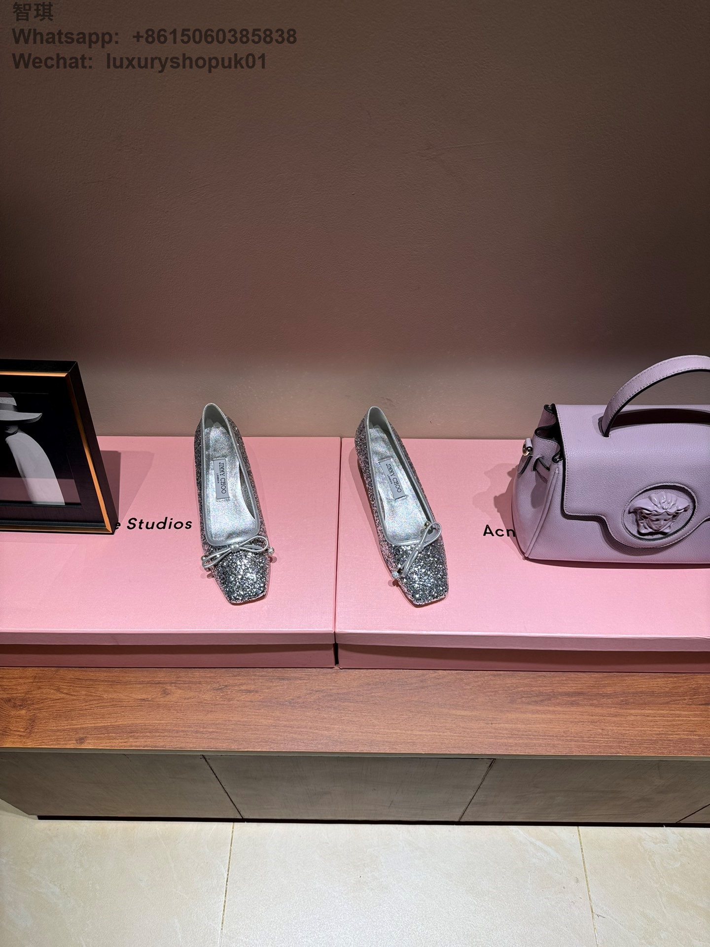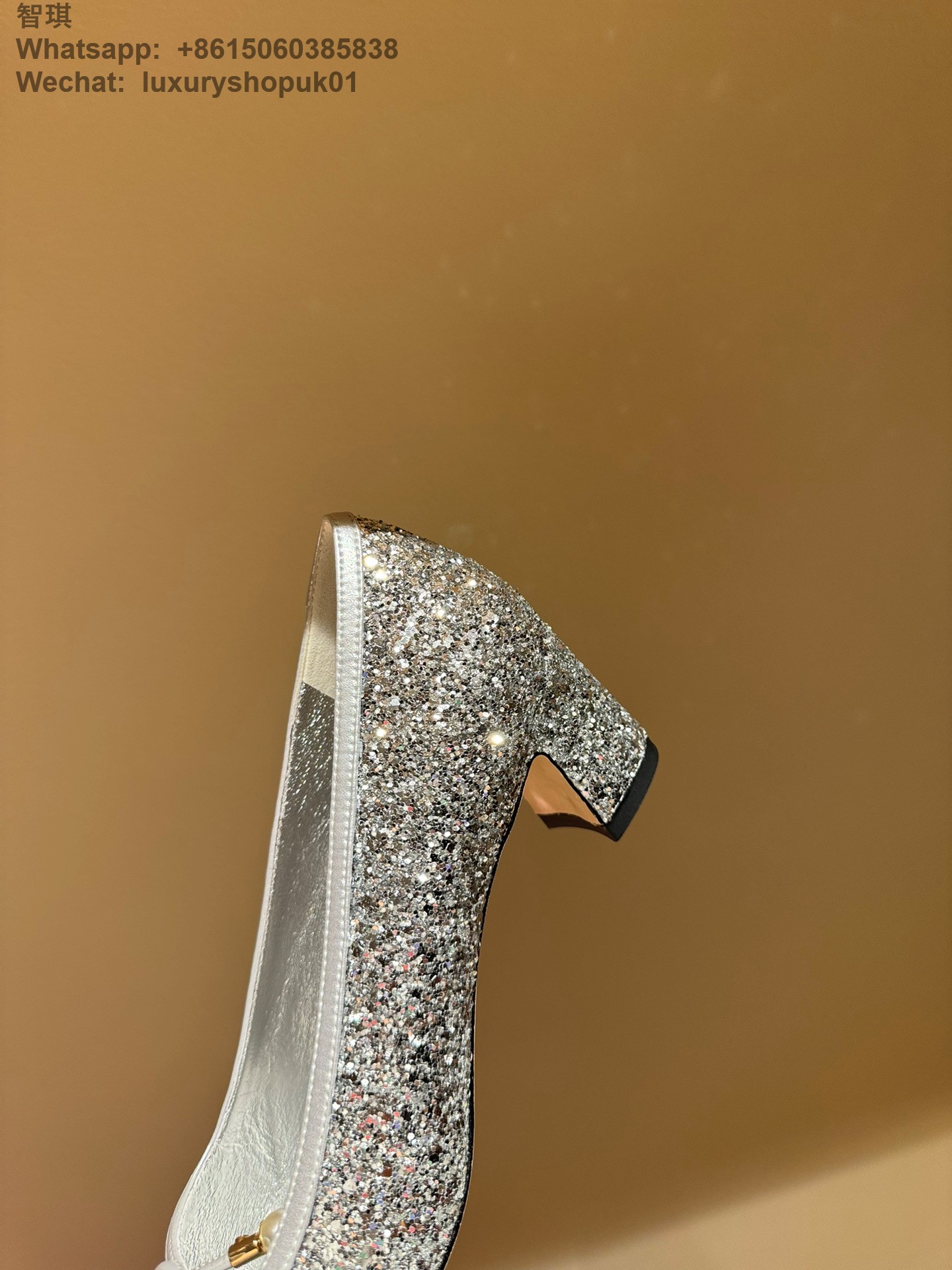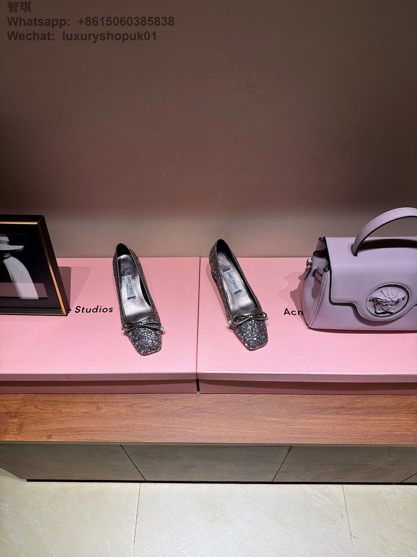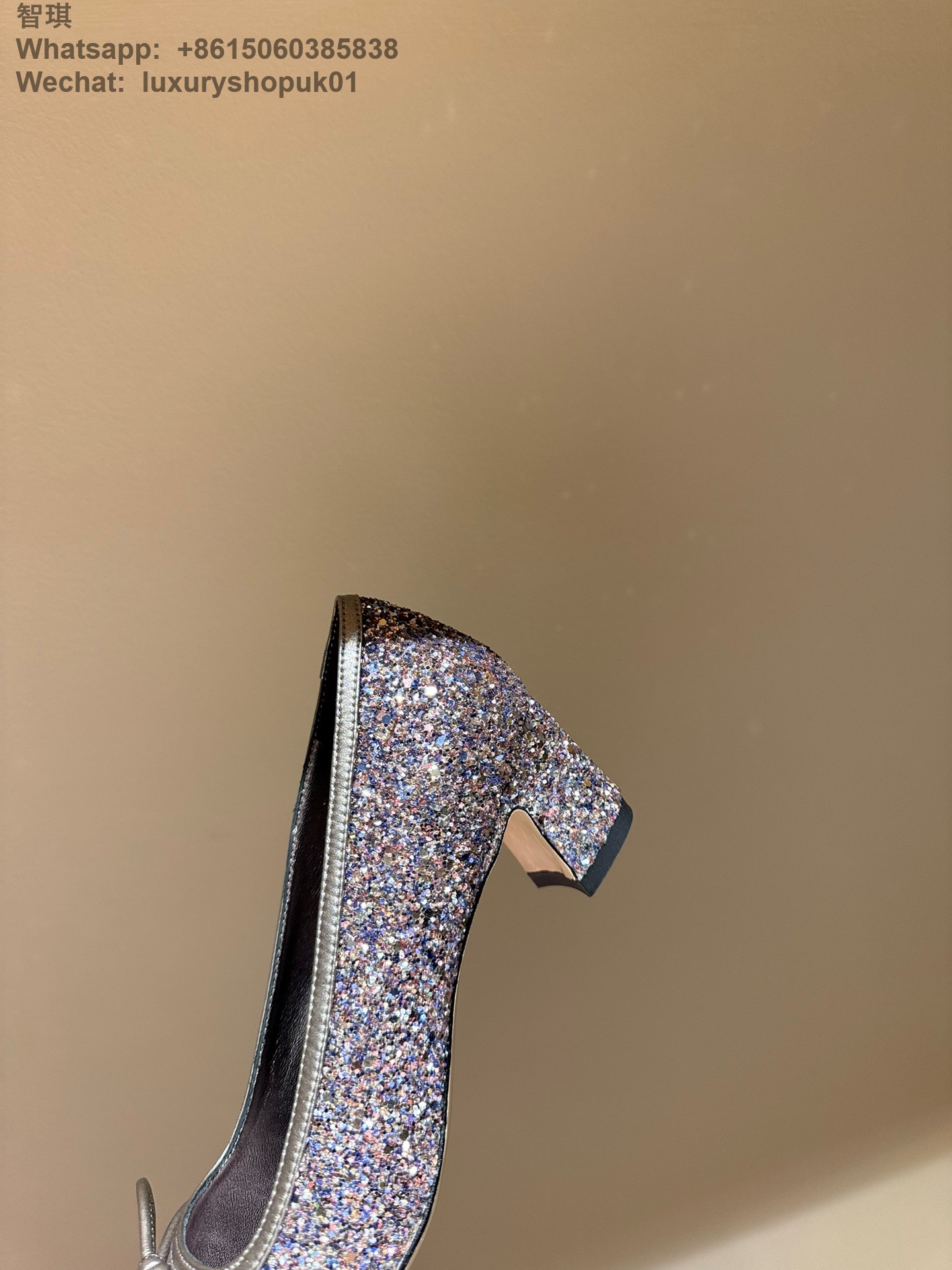 Jimmy Choo Elme Leather Bow Ballerina Pumps Women Shoes glitter