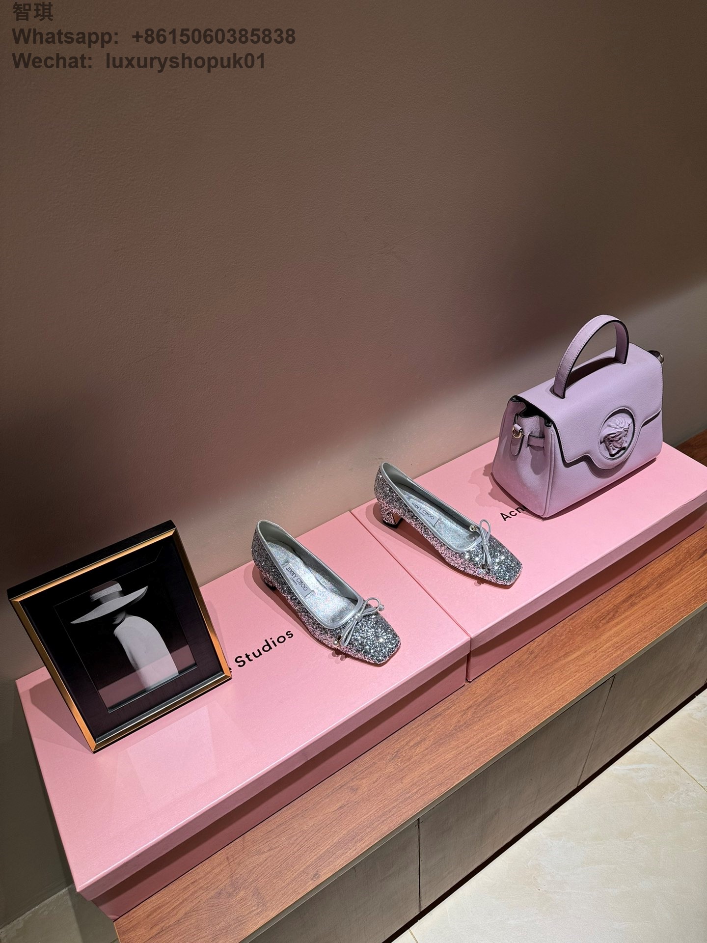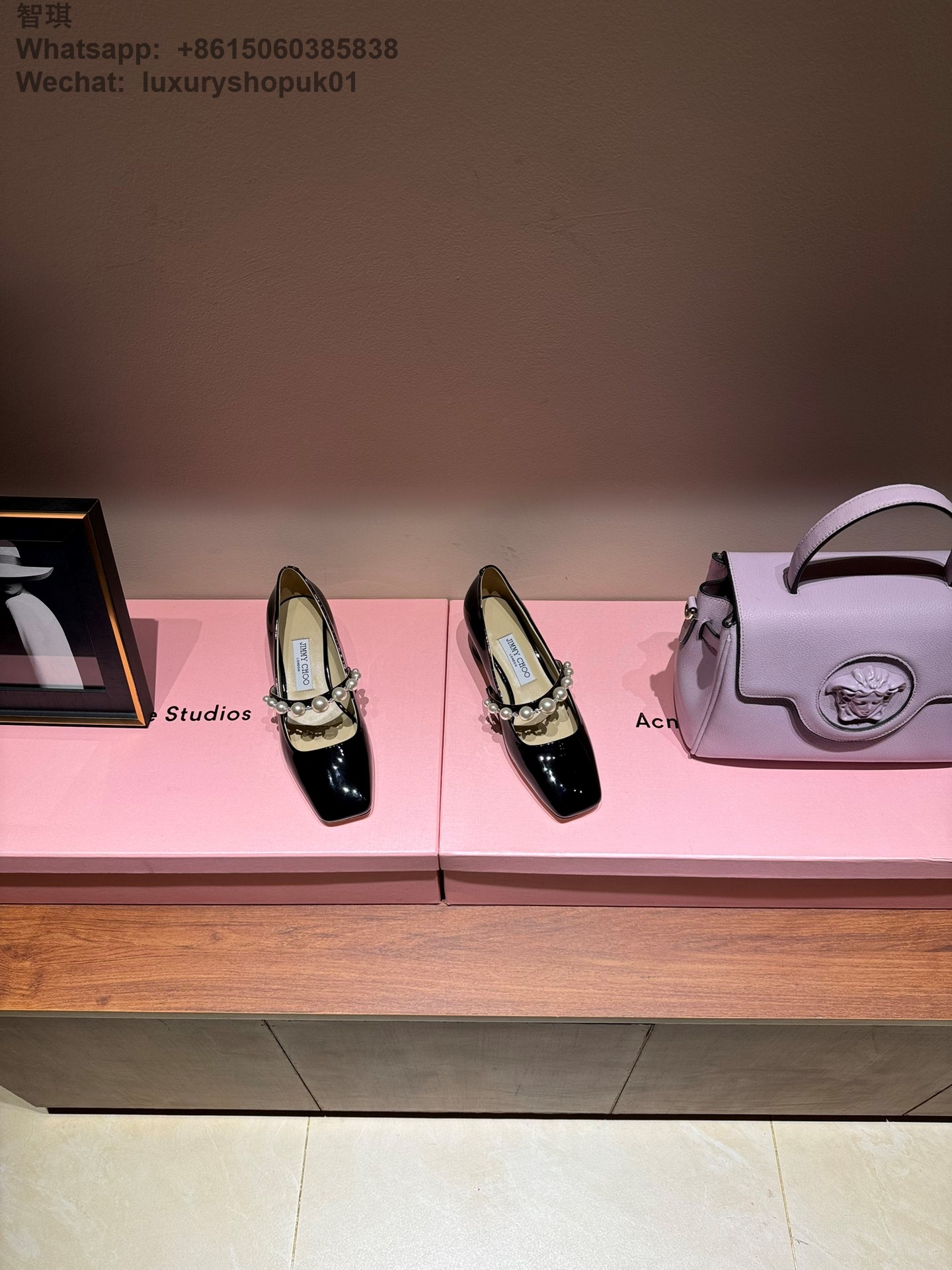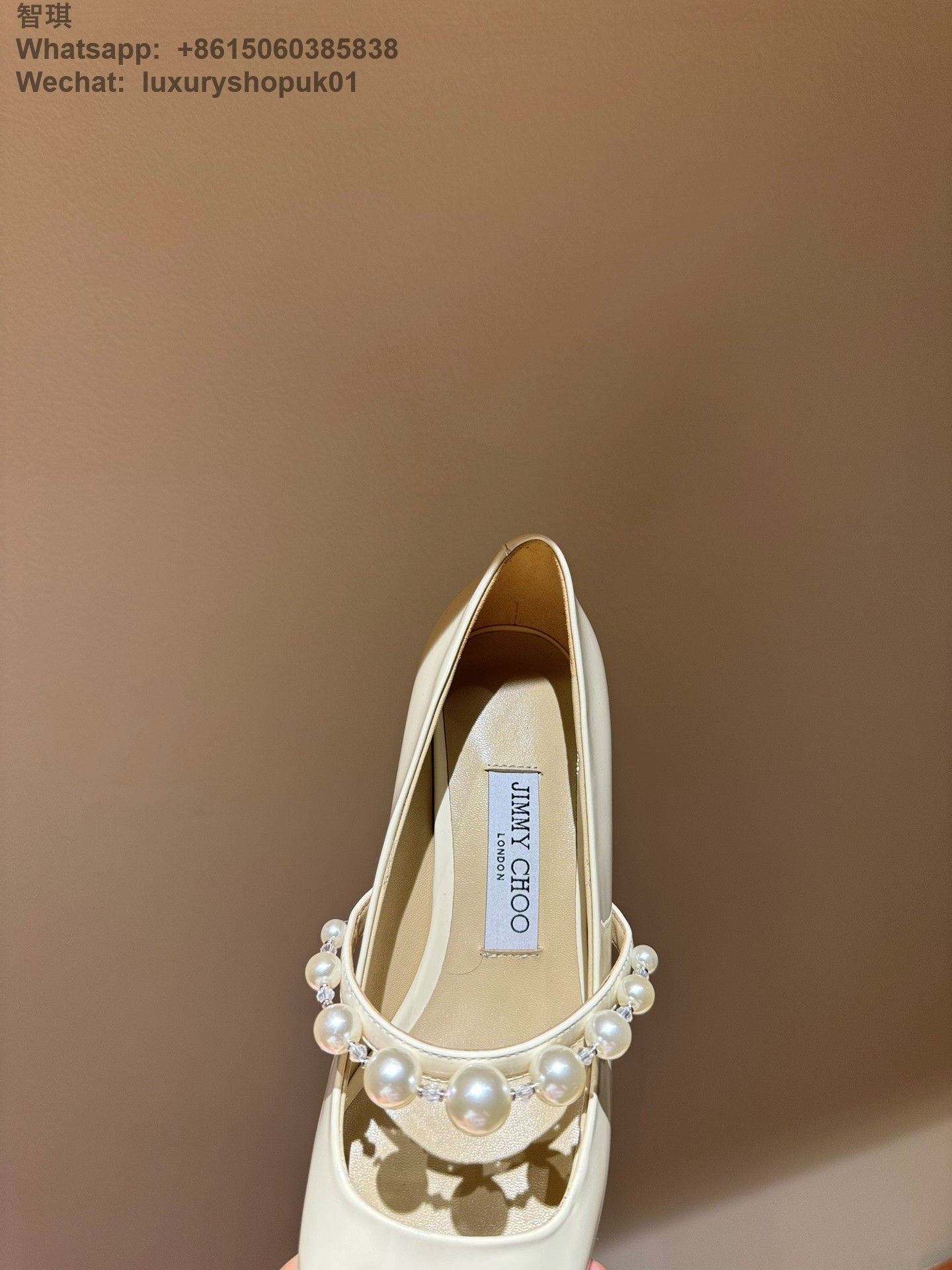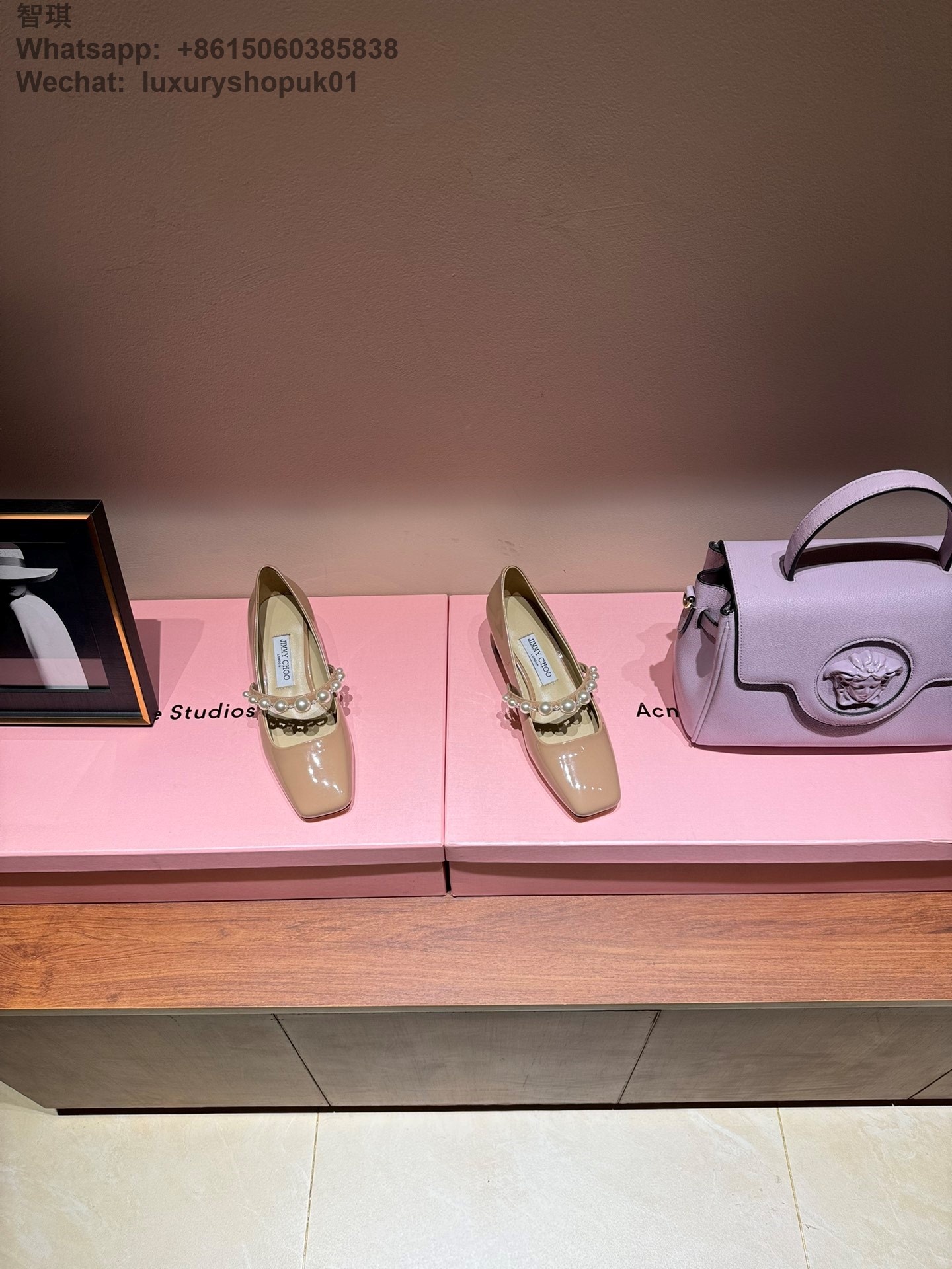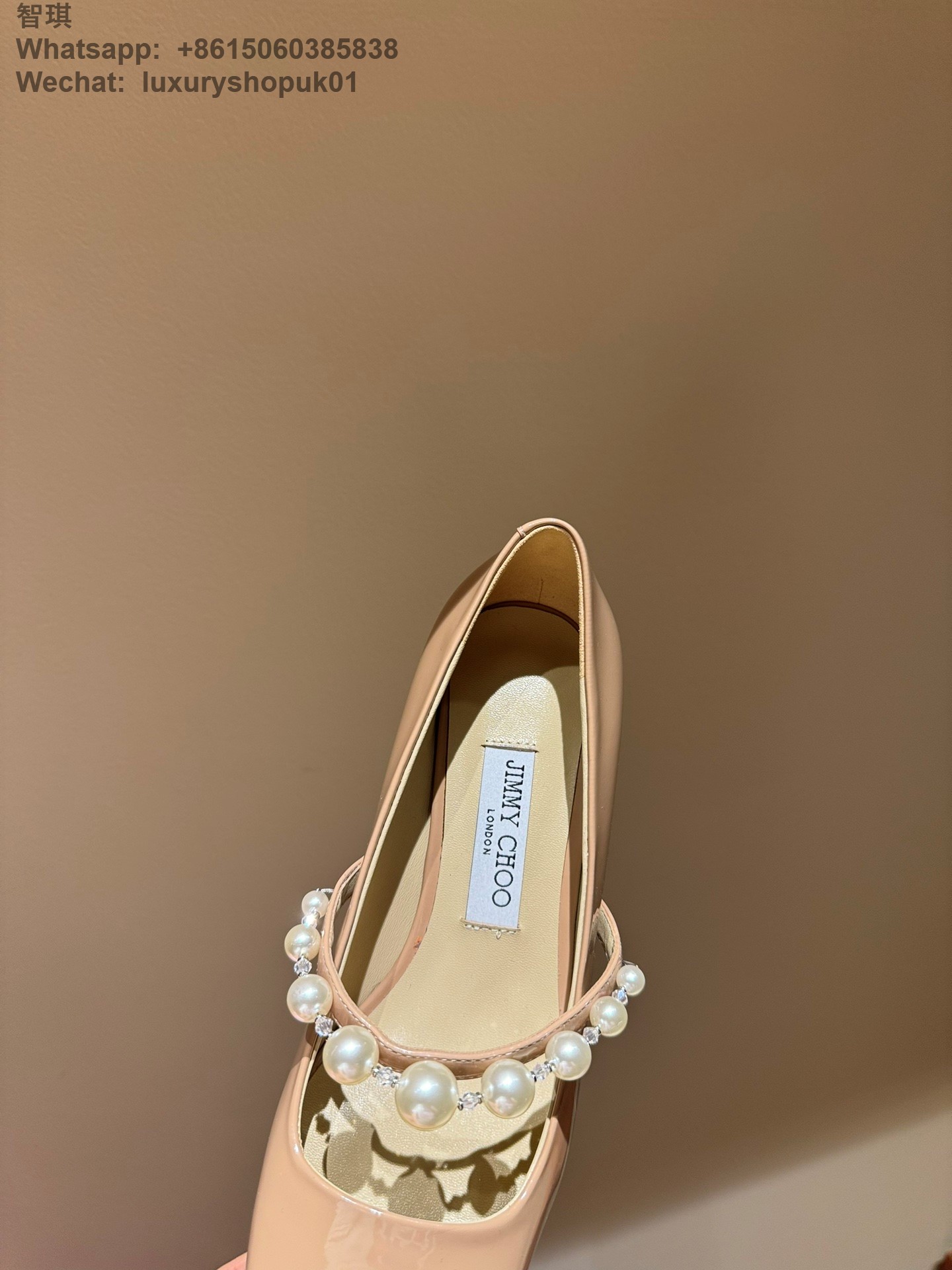 Jimmy Choo Elme Leather Bow Ballerina Pumps Women Shoes glitter