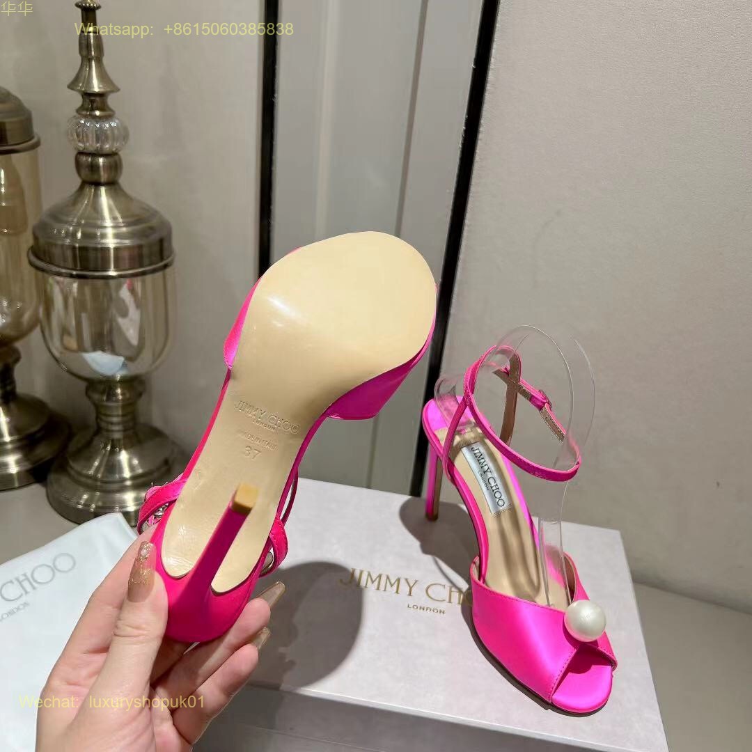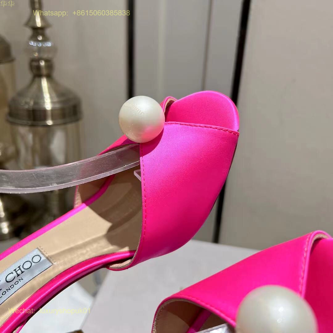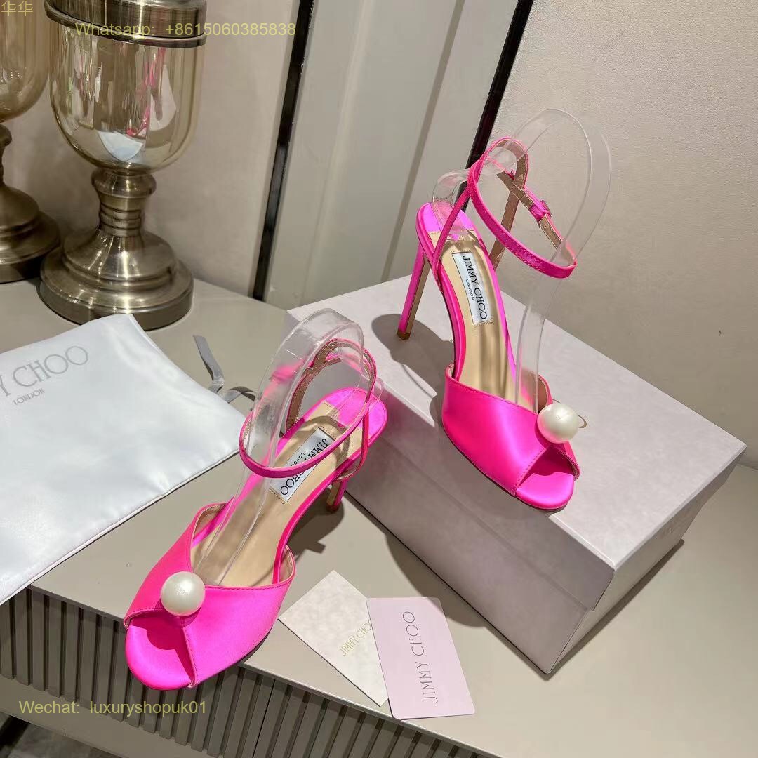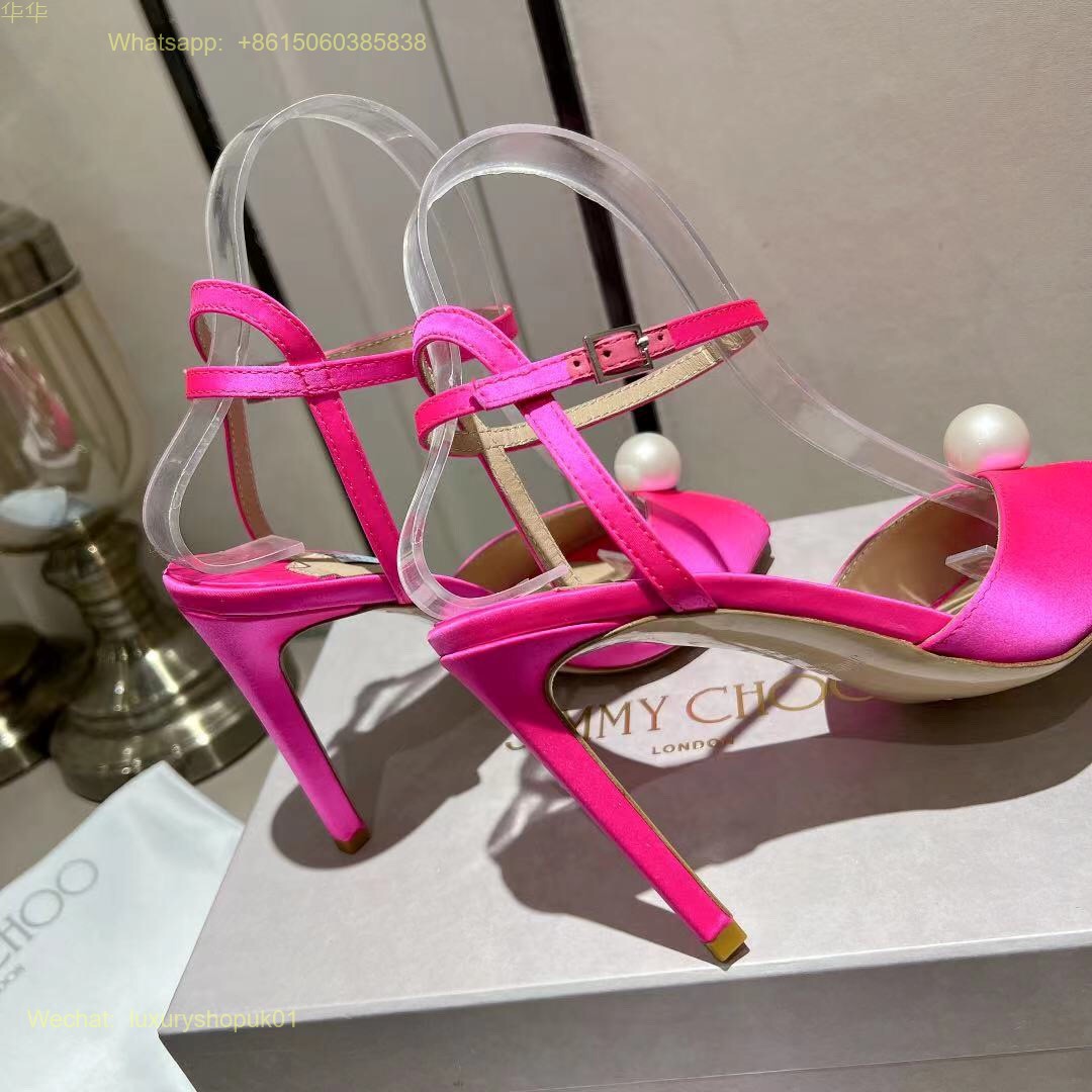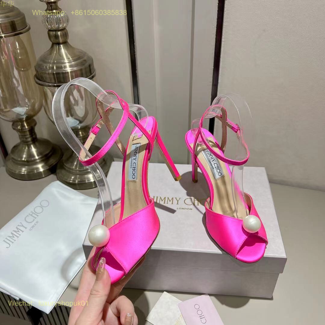 Jimmy Choo Sacora Pearl-Embellished Satin Sandals Women Shoes