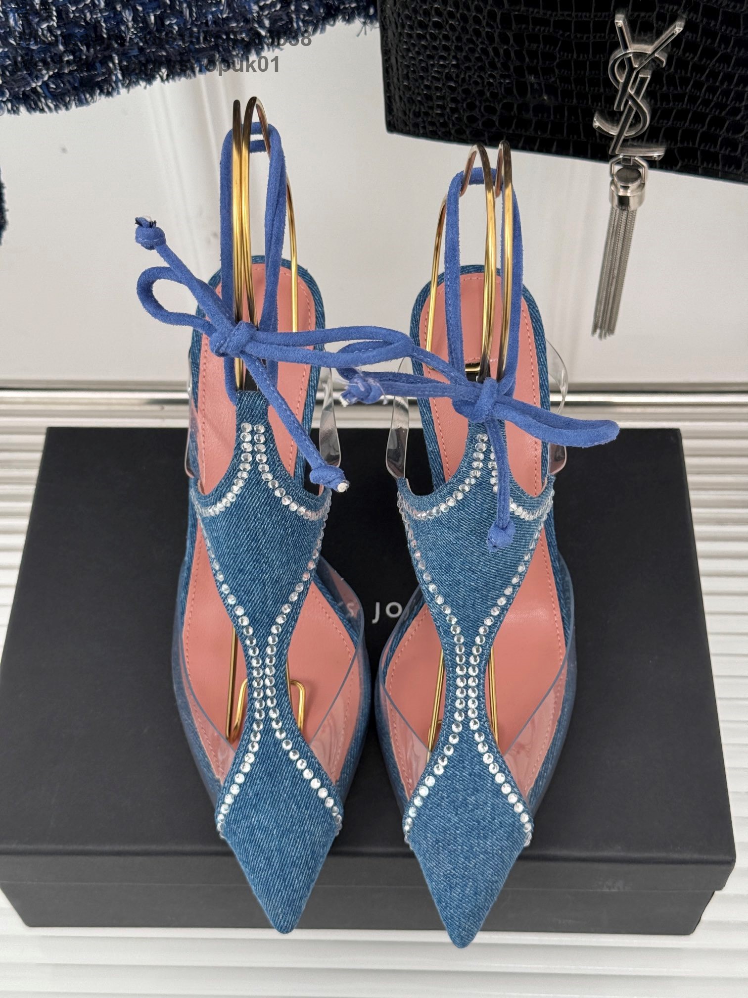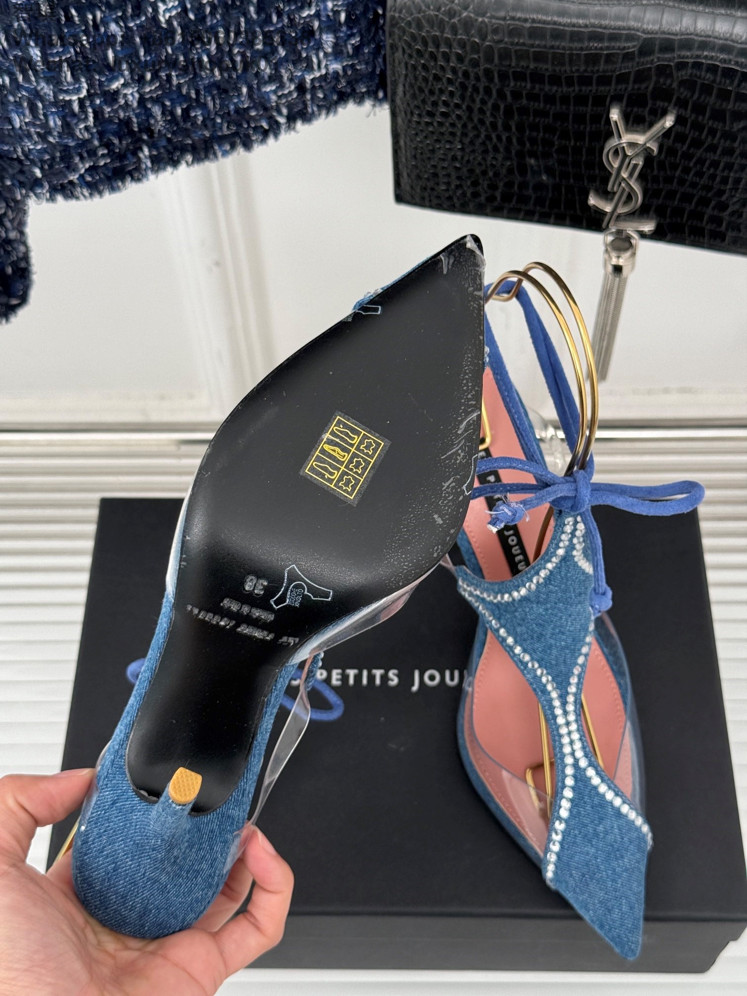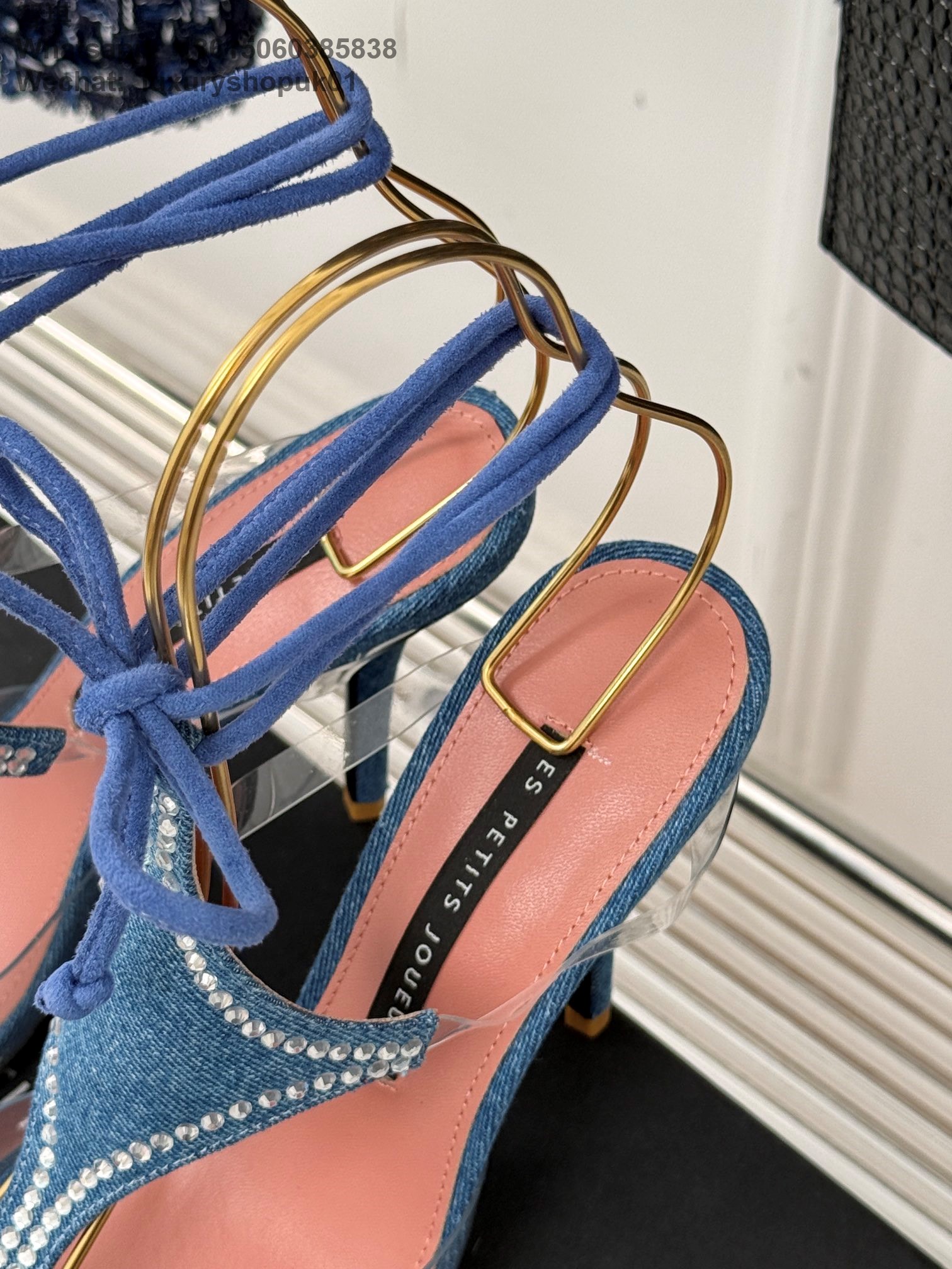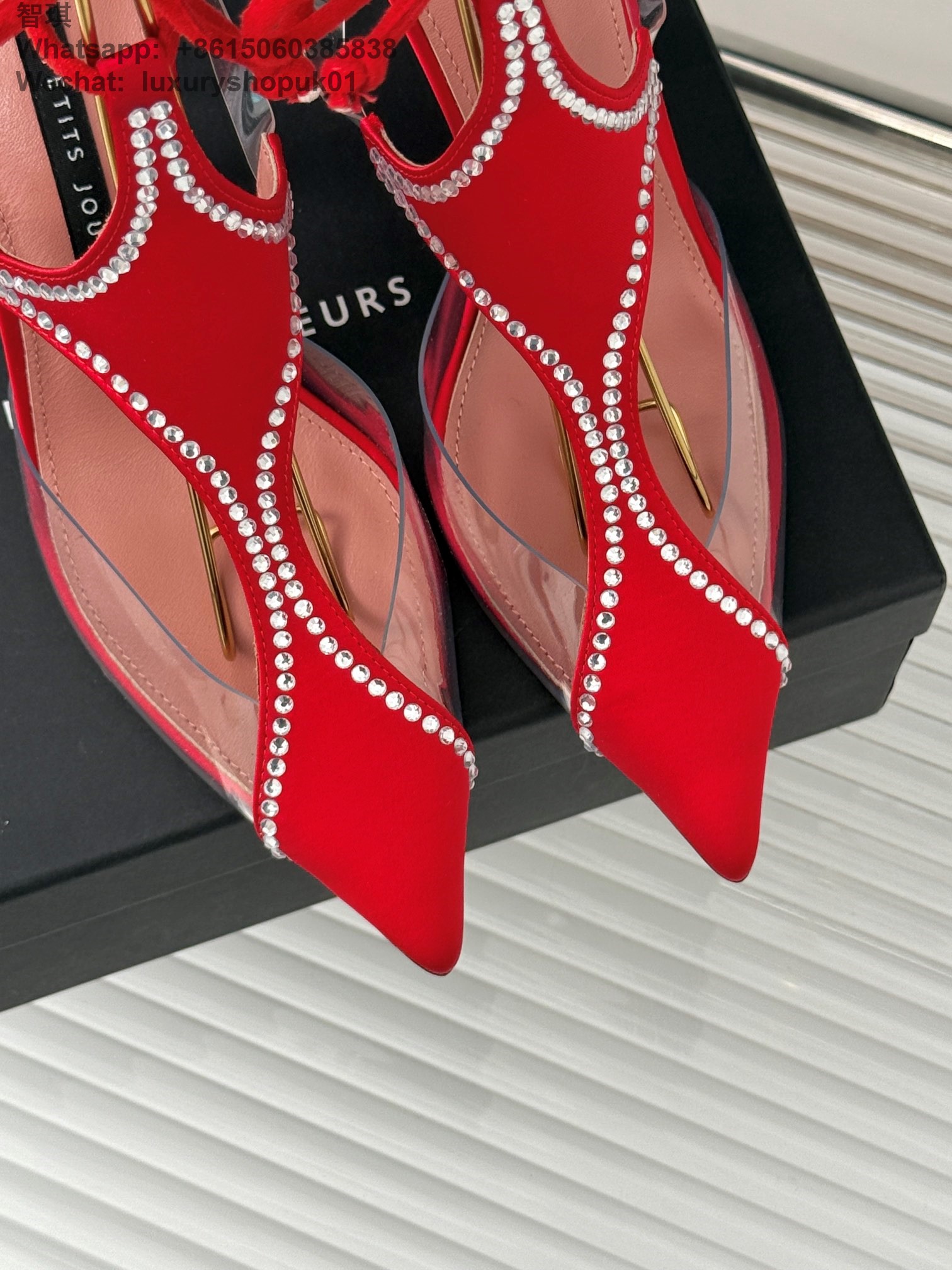 LES PETITS JOUEURS Virgo Paneled satin PVC Pointed toe Wraparound ankle strap stiletto heels Sandal
