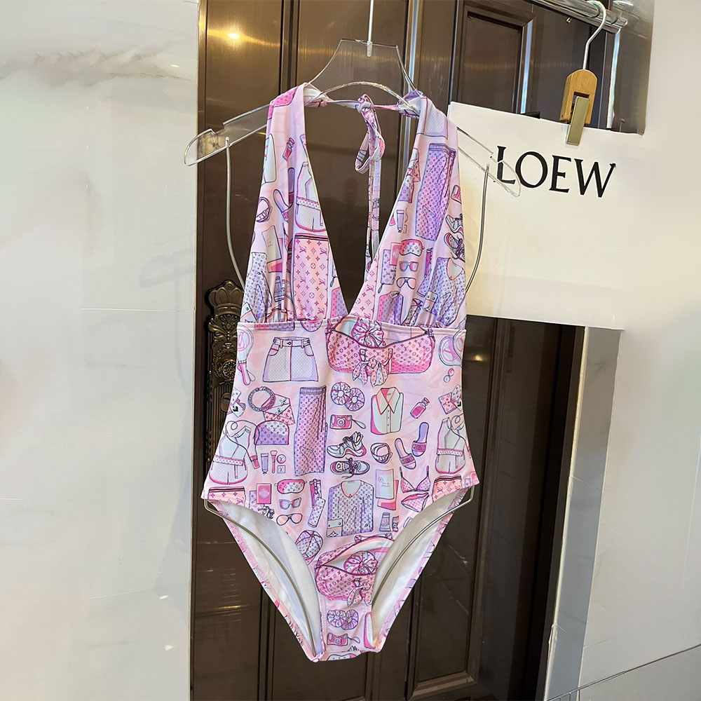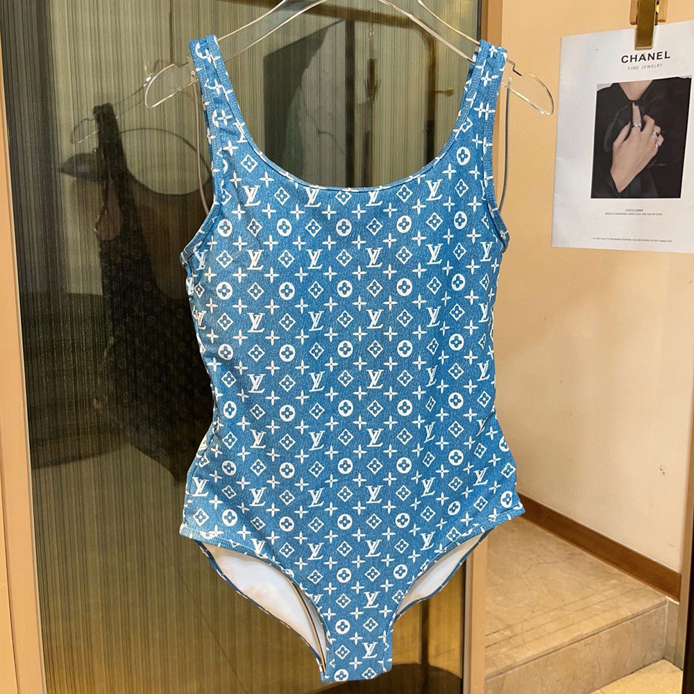 Louis Vuitton LV Classic Plaid Printed Two-piece Swimsuit Swimwear(Replica)
