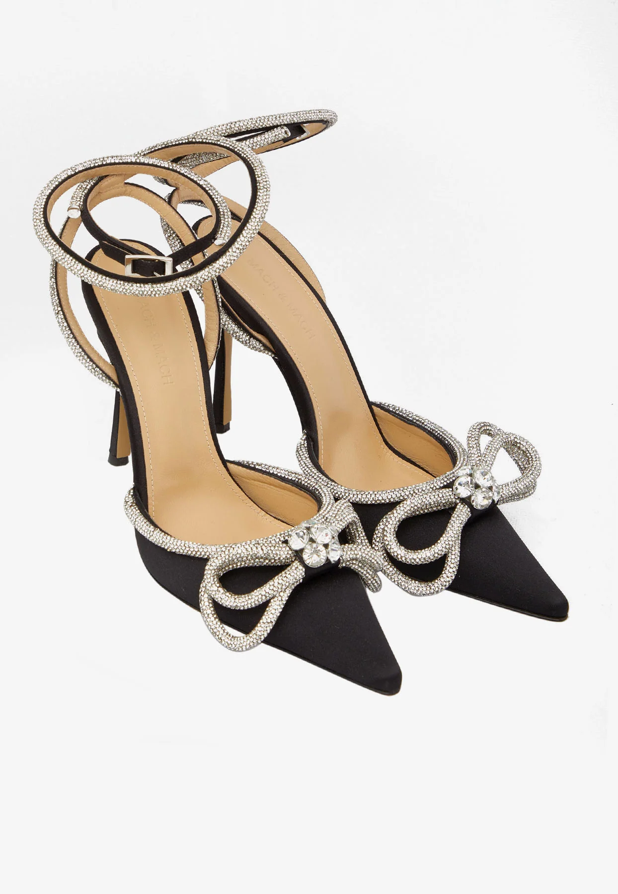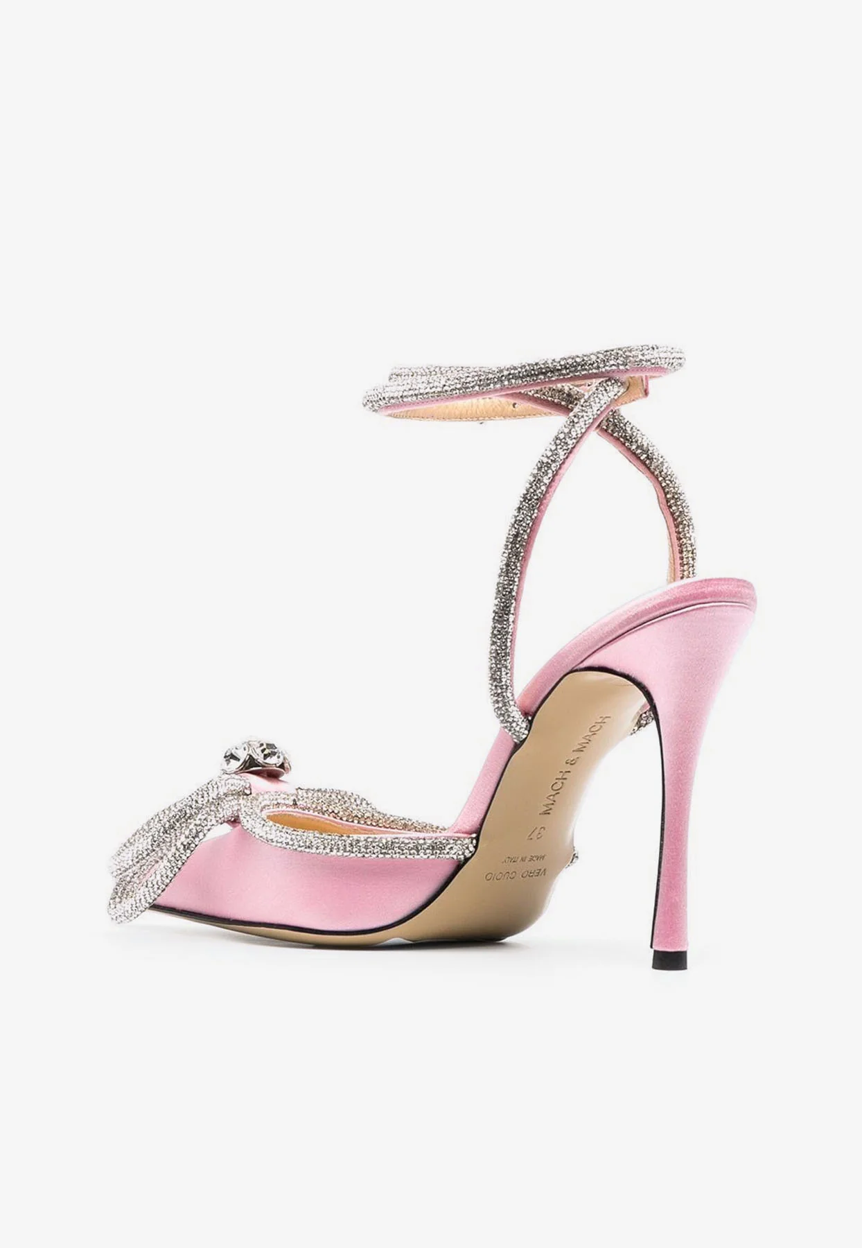 Mach and Mach 110 Crystal Embellished Double Bow Satin Pumps