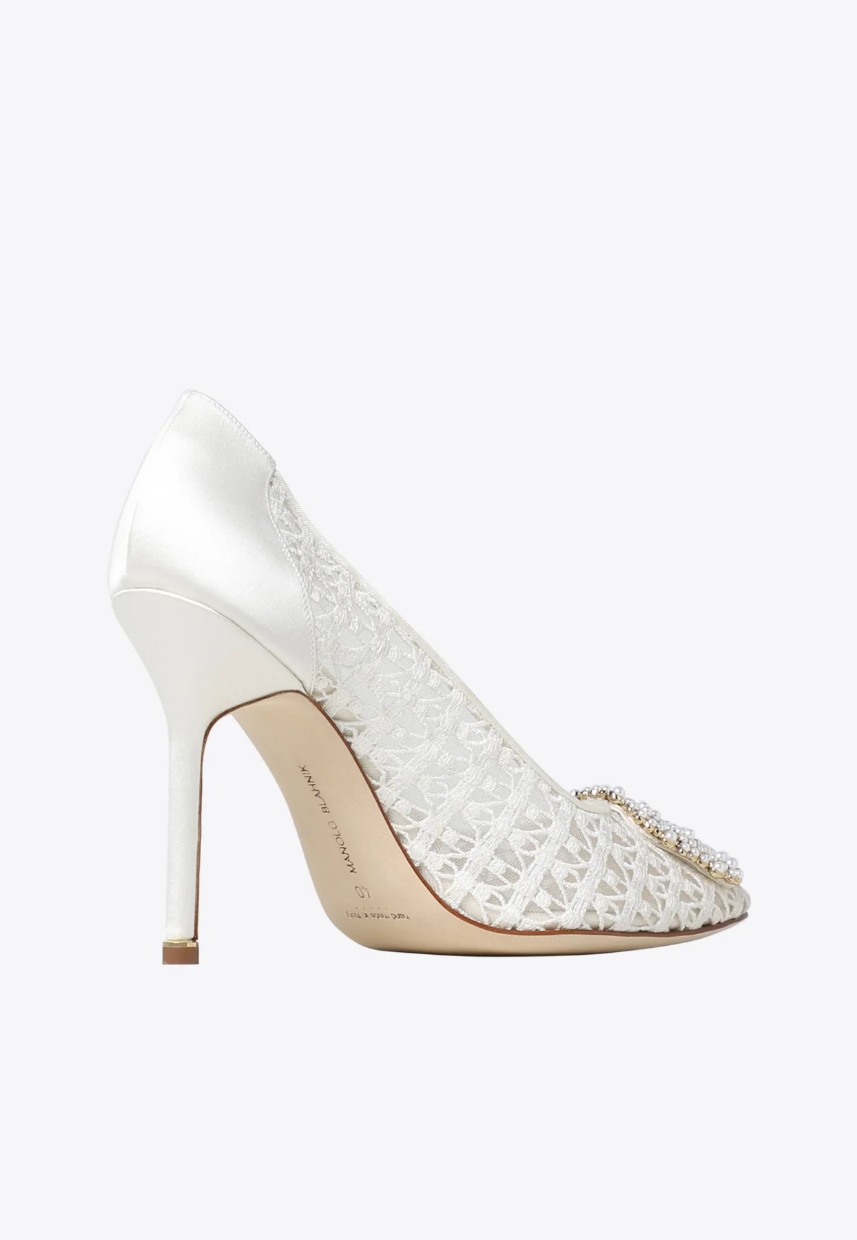 Manolo Blahnik Hangisi 105 Pearl Buckle Lace Pumps