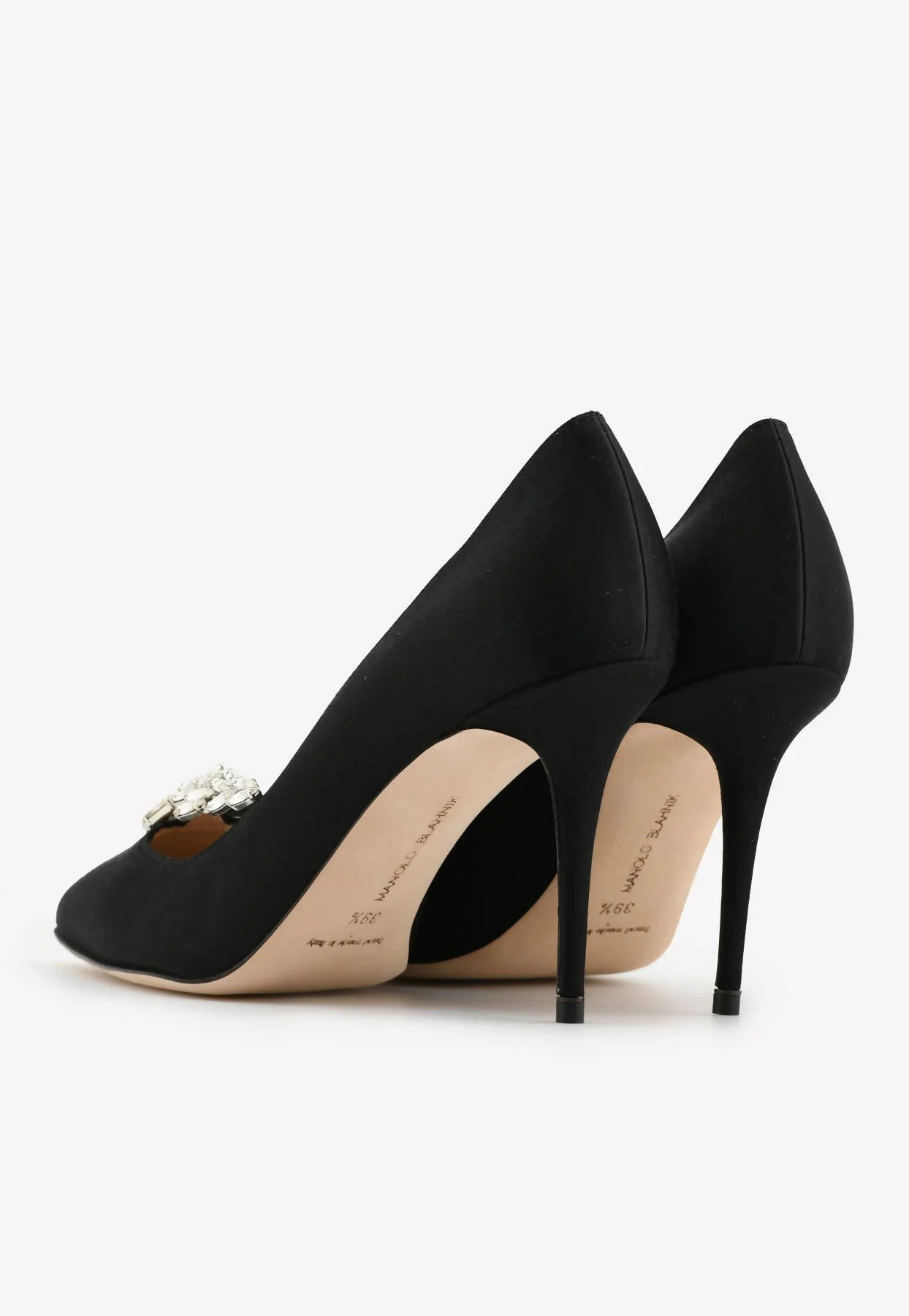 Manolo Blahnik Hangisi 105 FMC Crystal Buckle Satin Pumps