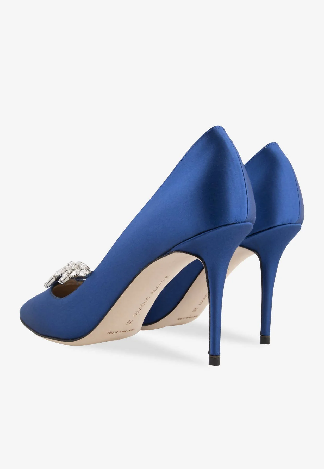 Manolo Blahnik Hangisi 70 Satin Pumps with FMC Crystal Buckle