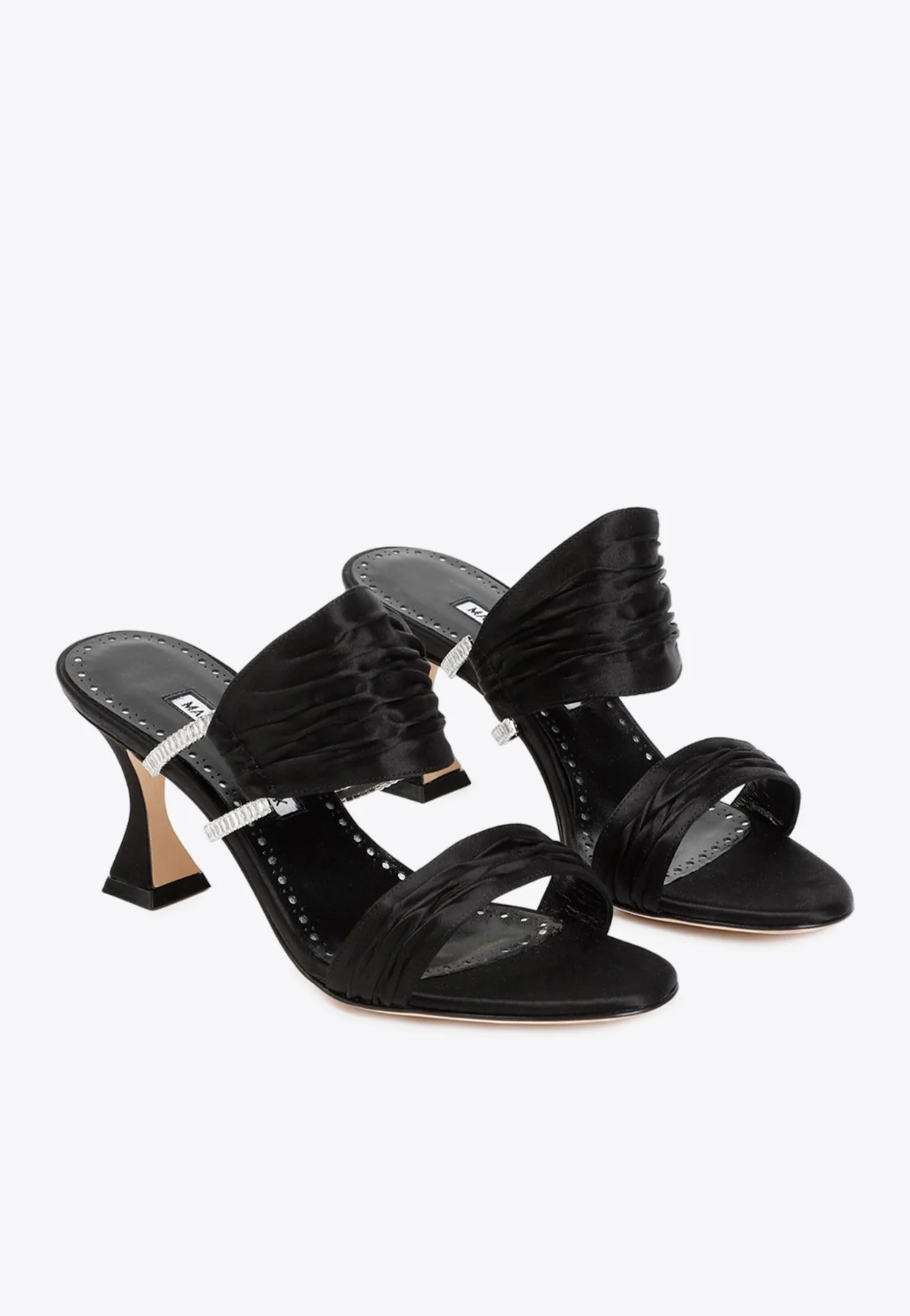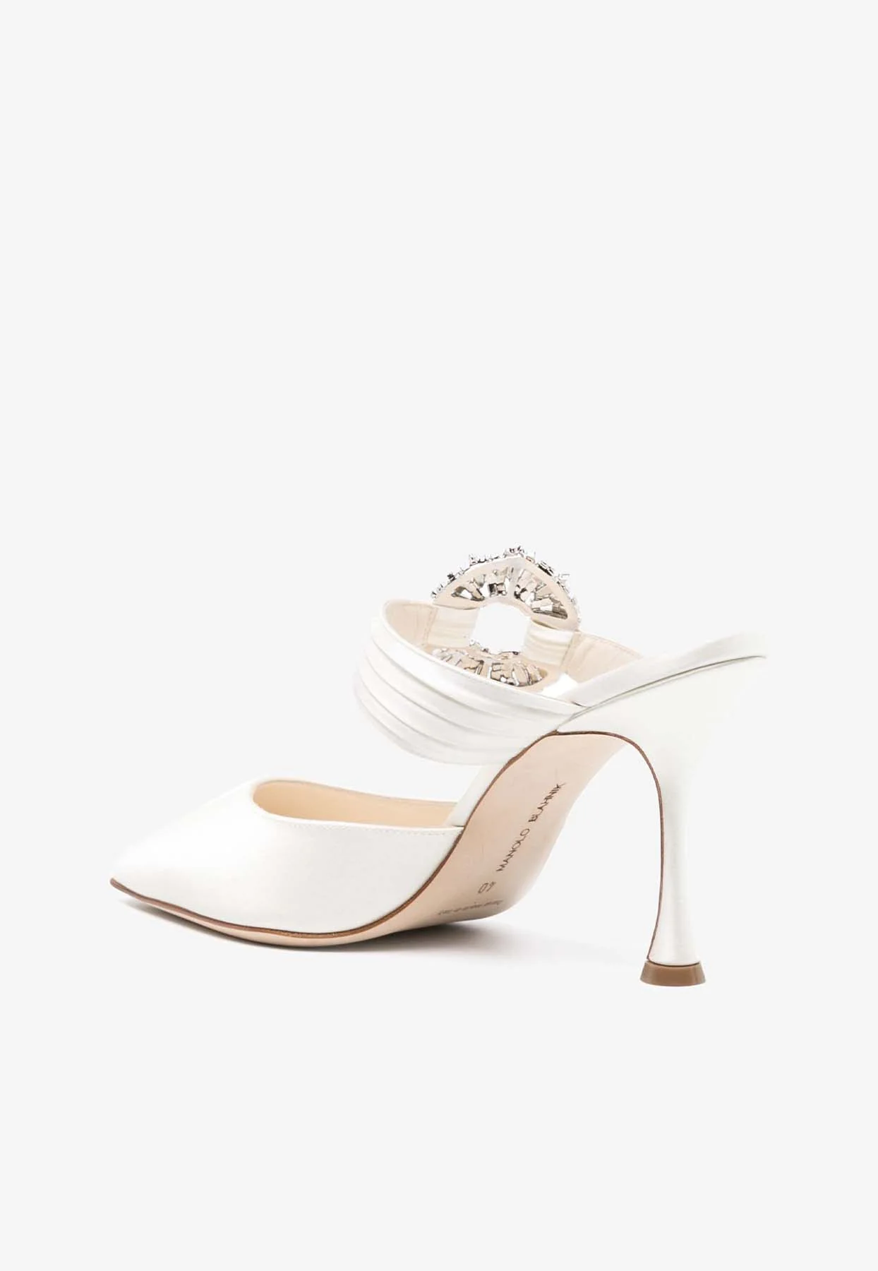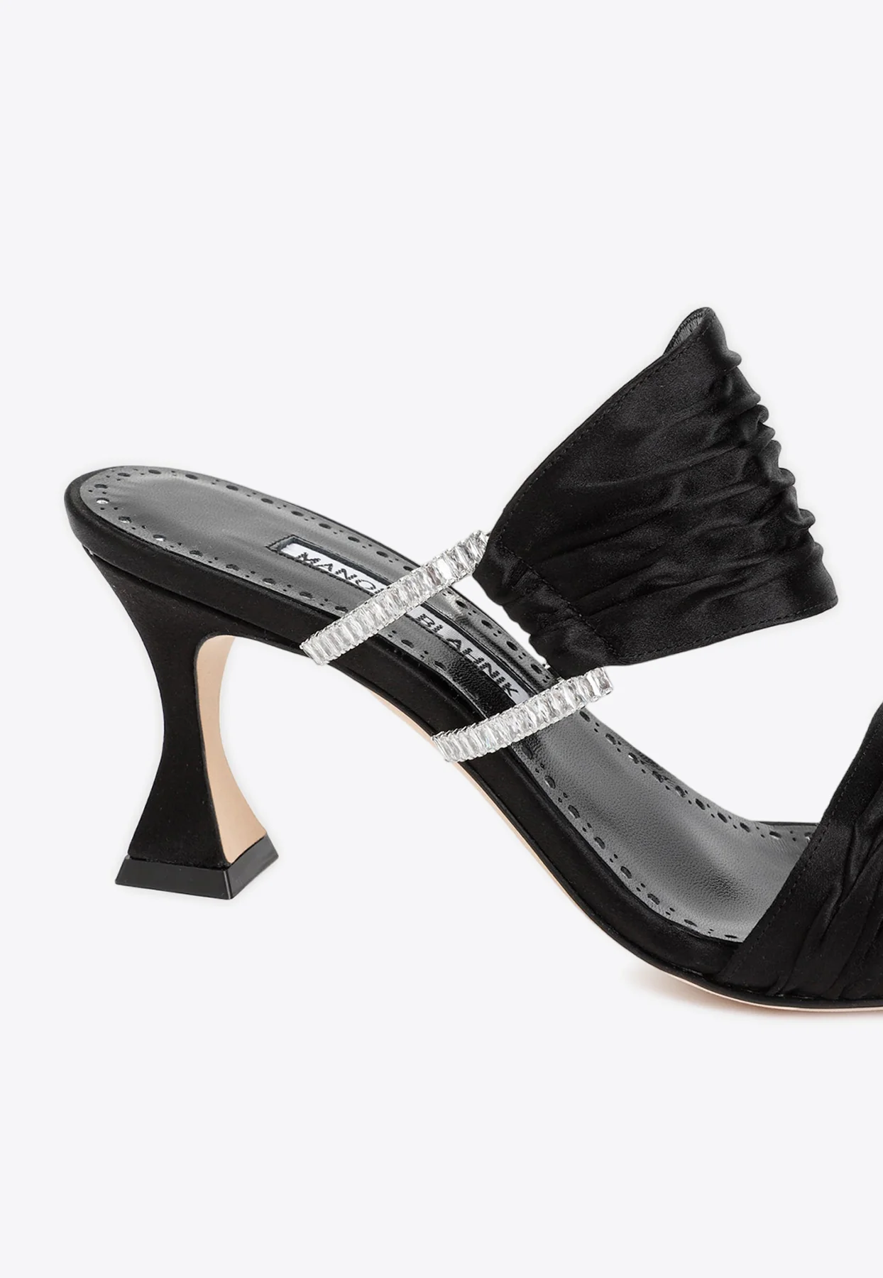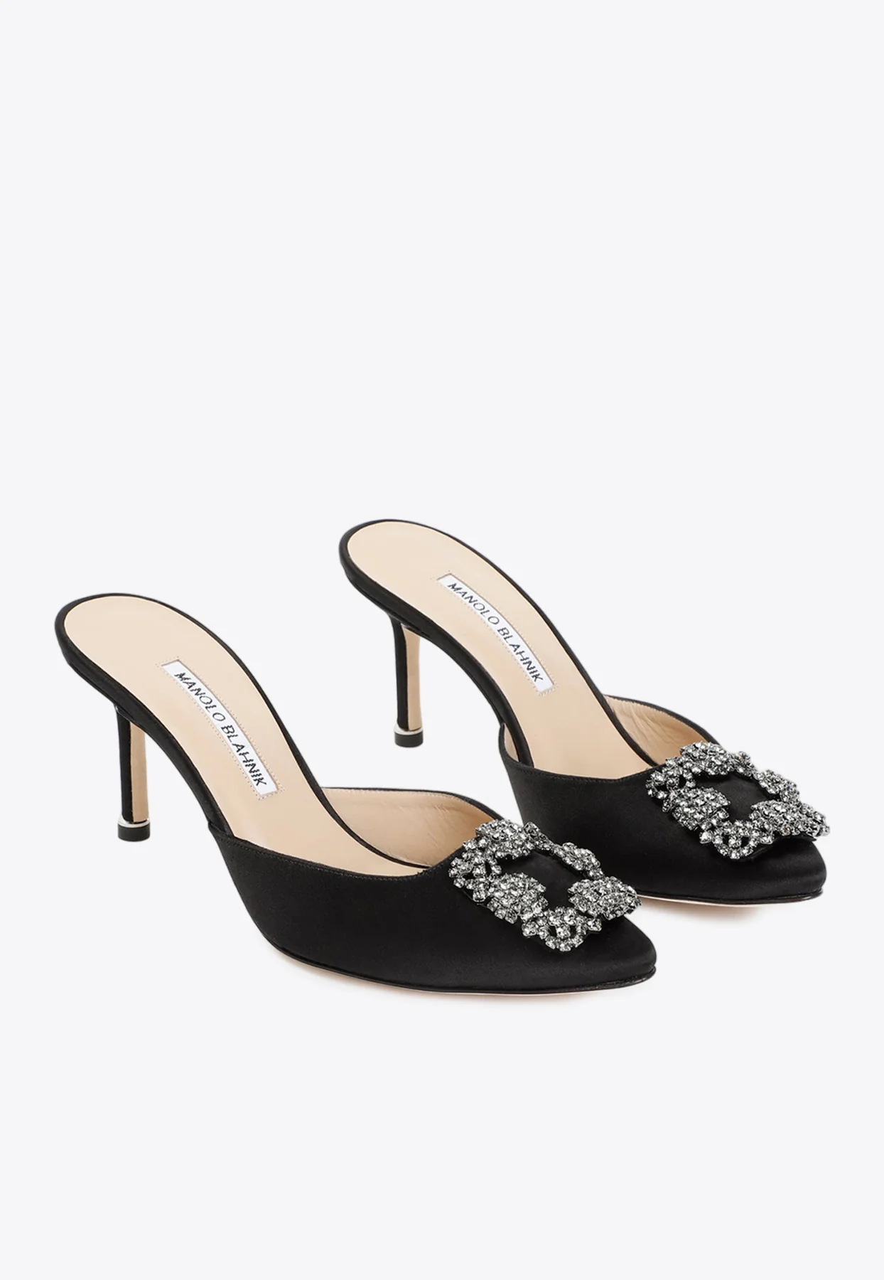 Manolo Blahnik Hangisimu 70 Crystal Buckle Satin Mules