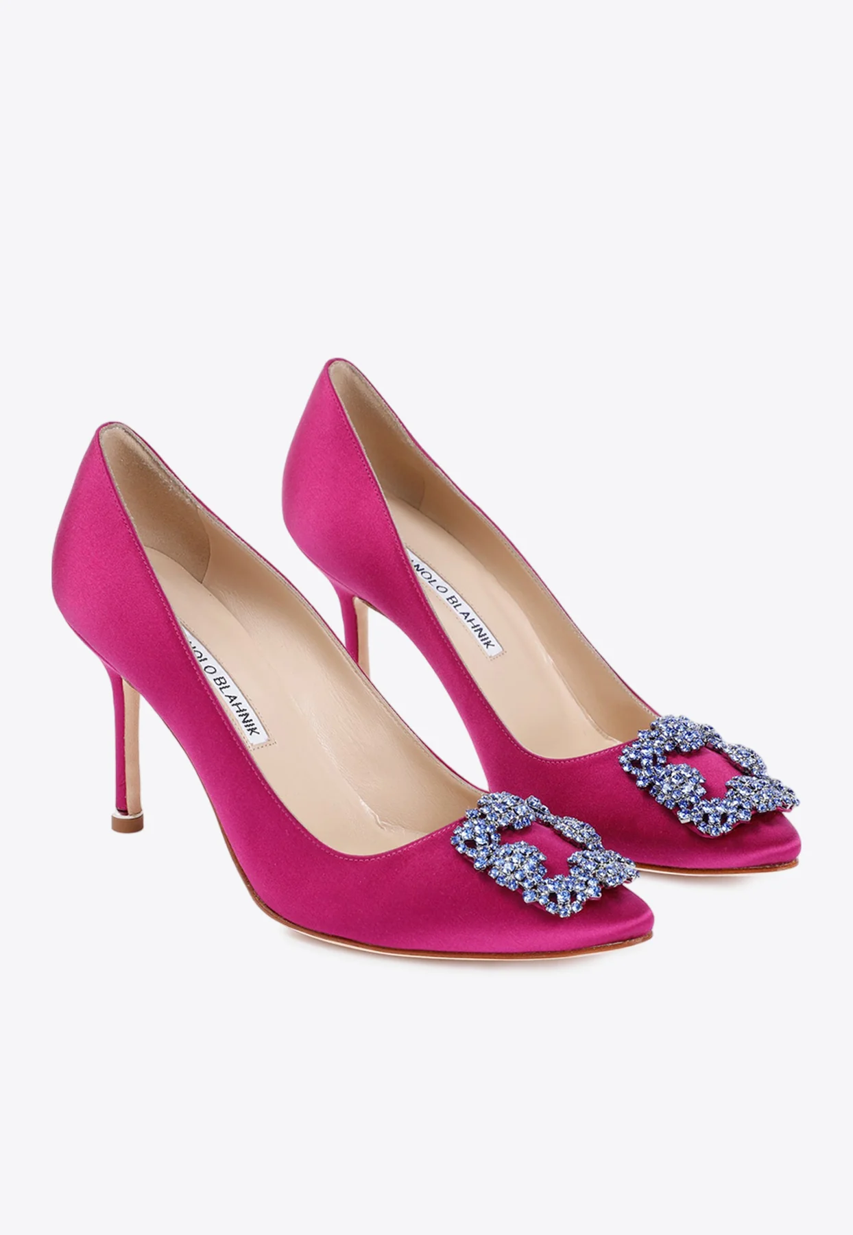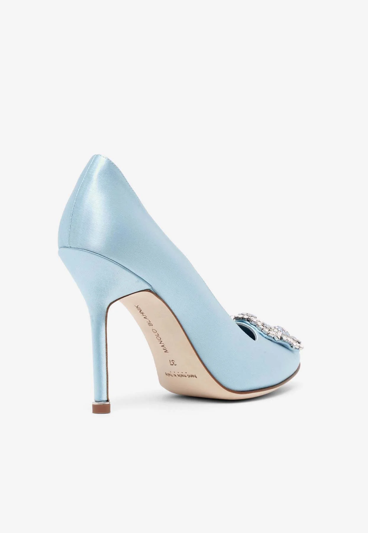 Manolo Blahnik Hangisi 90 Crystal Buckle Satin Pumps