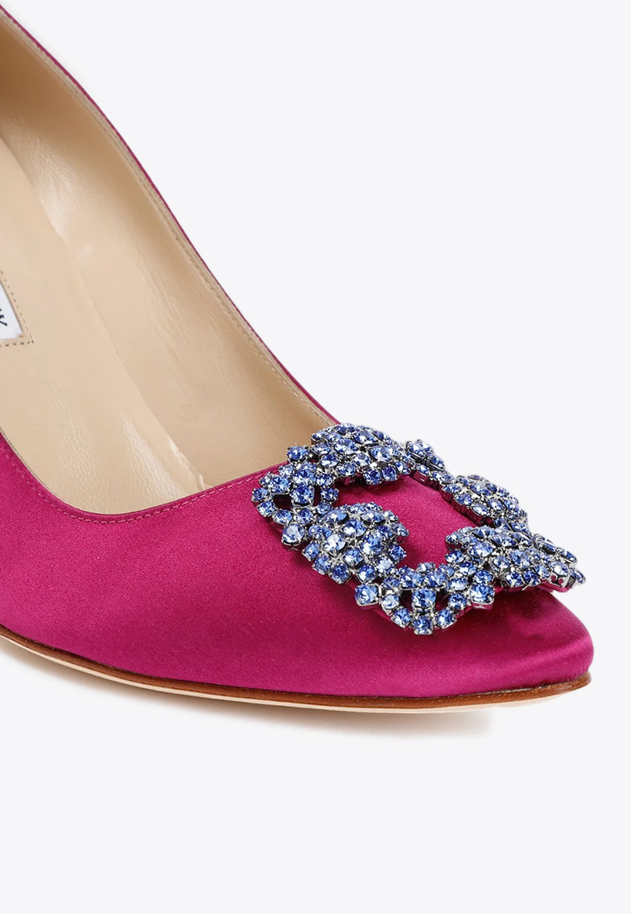 Manolo Blahnik Hangisi 105 Satin Pumps with FMC Crystal Buckle