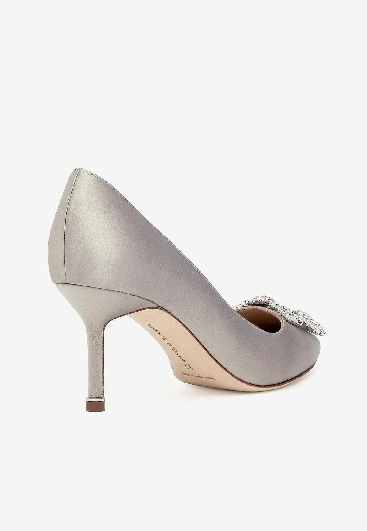 Manolo Blahnik Hangisi 70 Crystal Buckle Satin Pumps