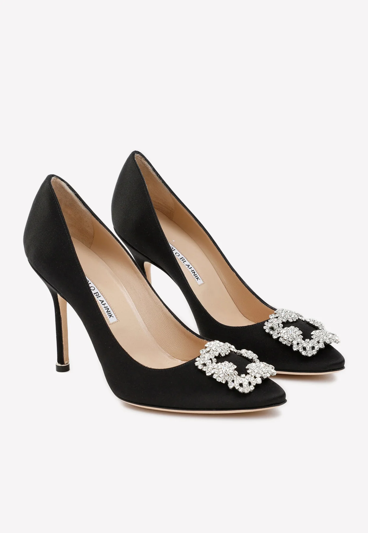 Manolo Blahnik Hangisi 90 Crystal Buckle Satin Pumps