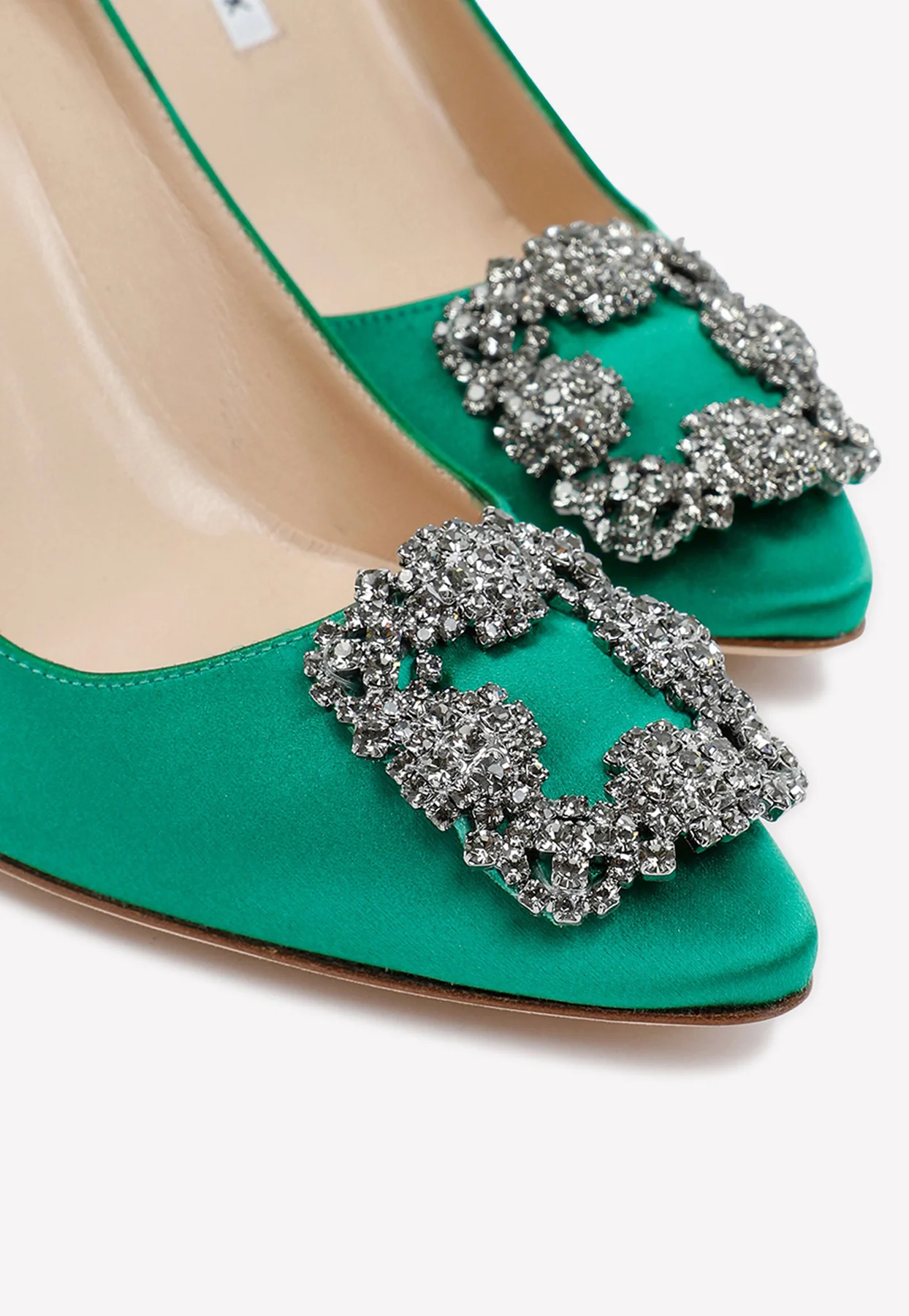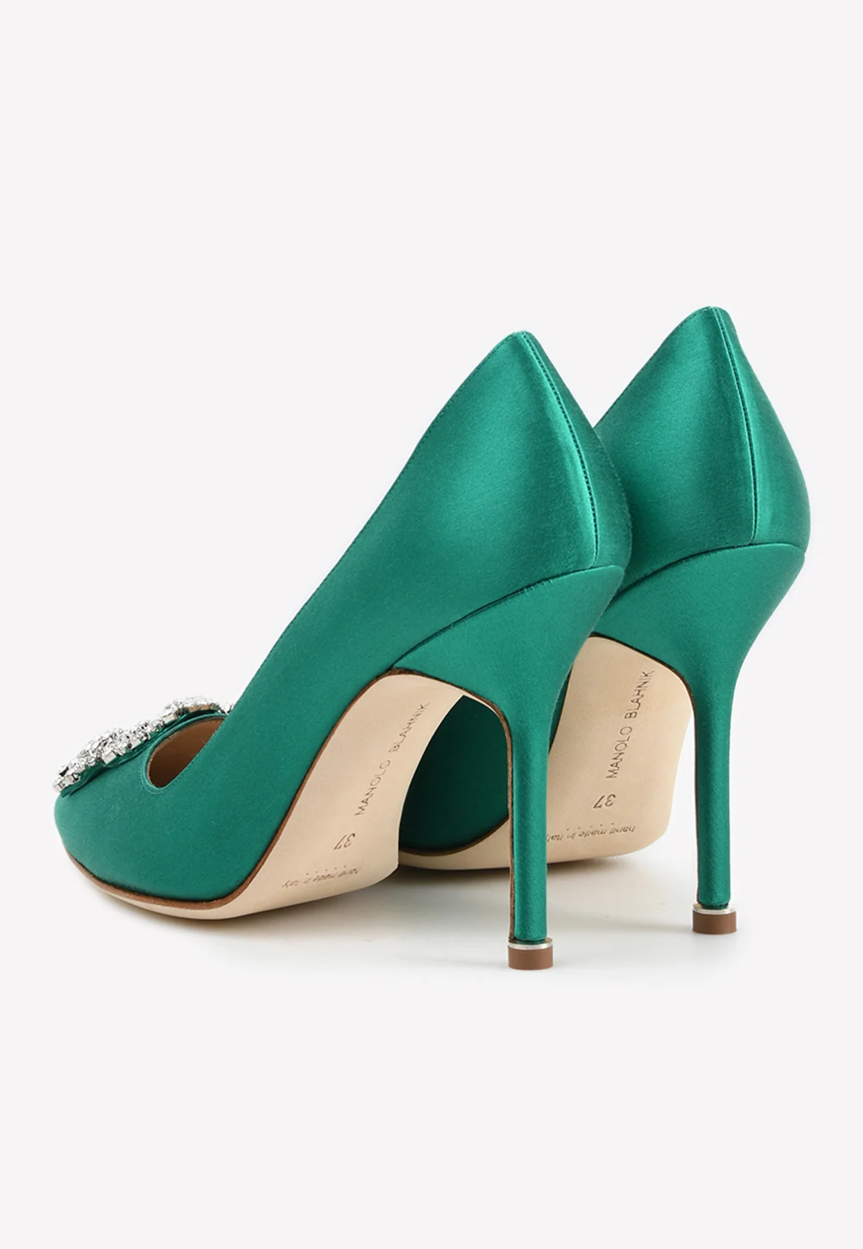 Manolo Blahnik Hangisi 50 Crystal Buckle Satin Pumps