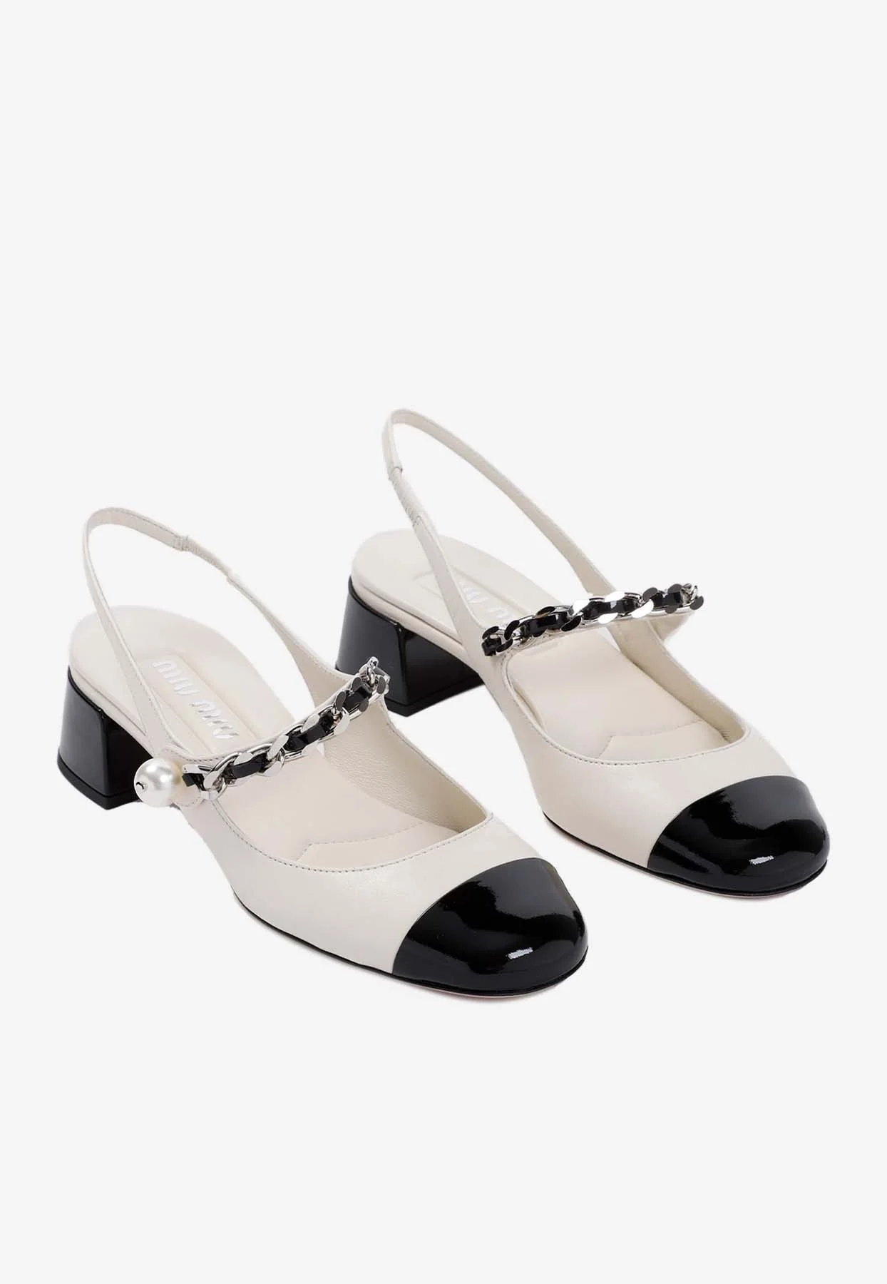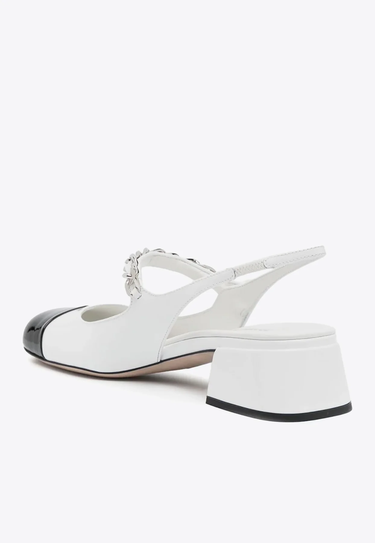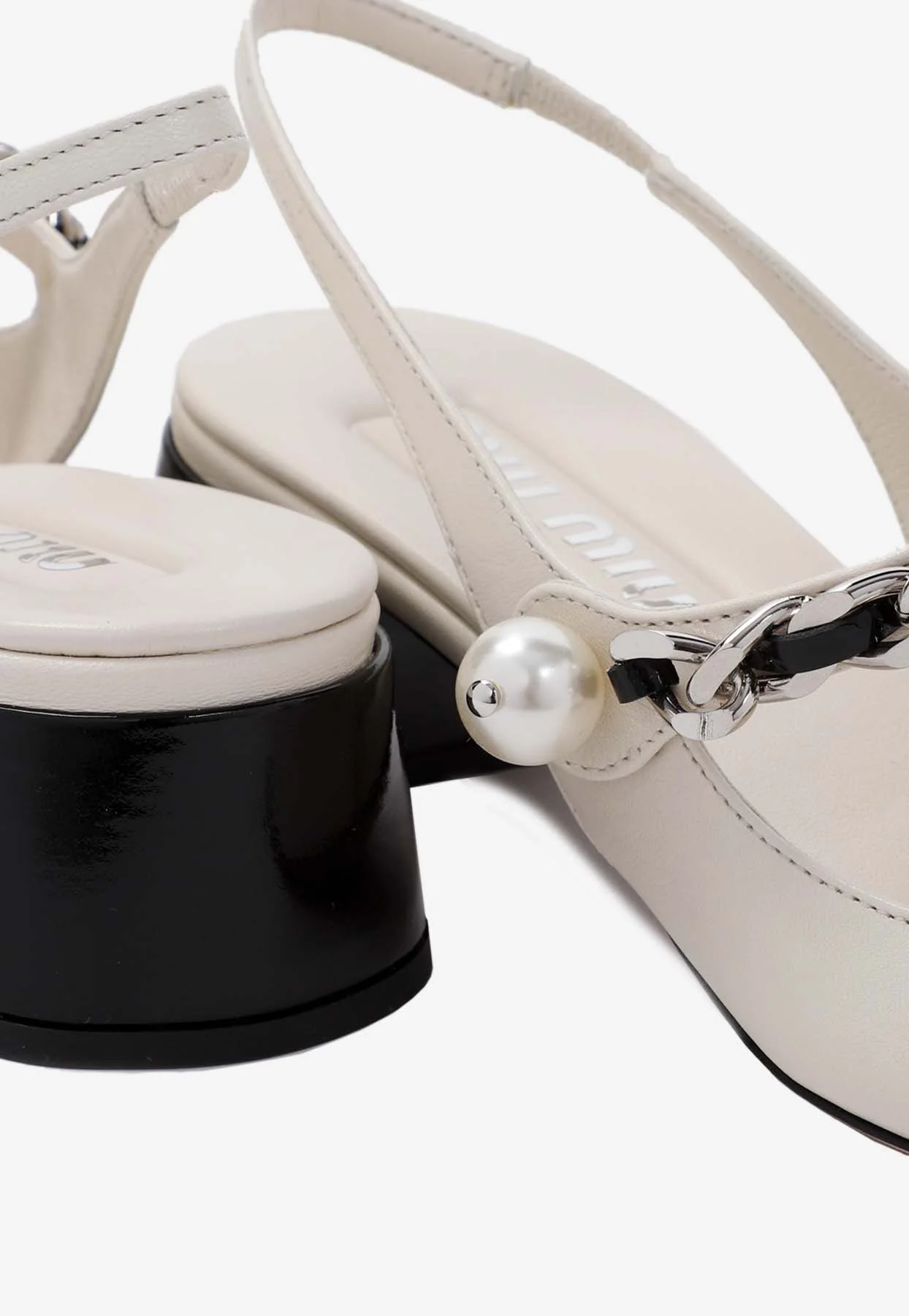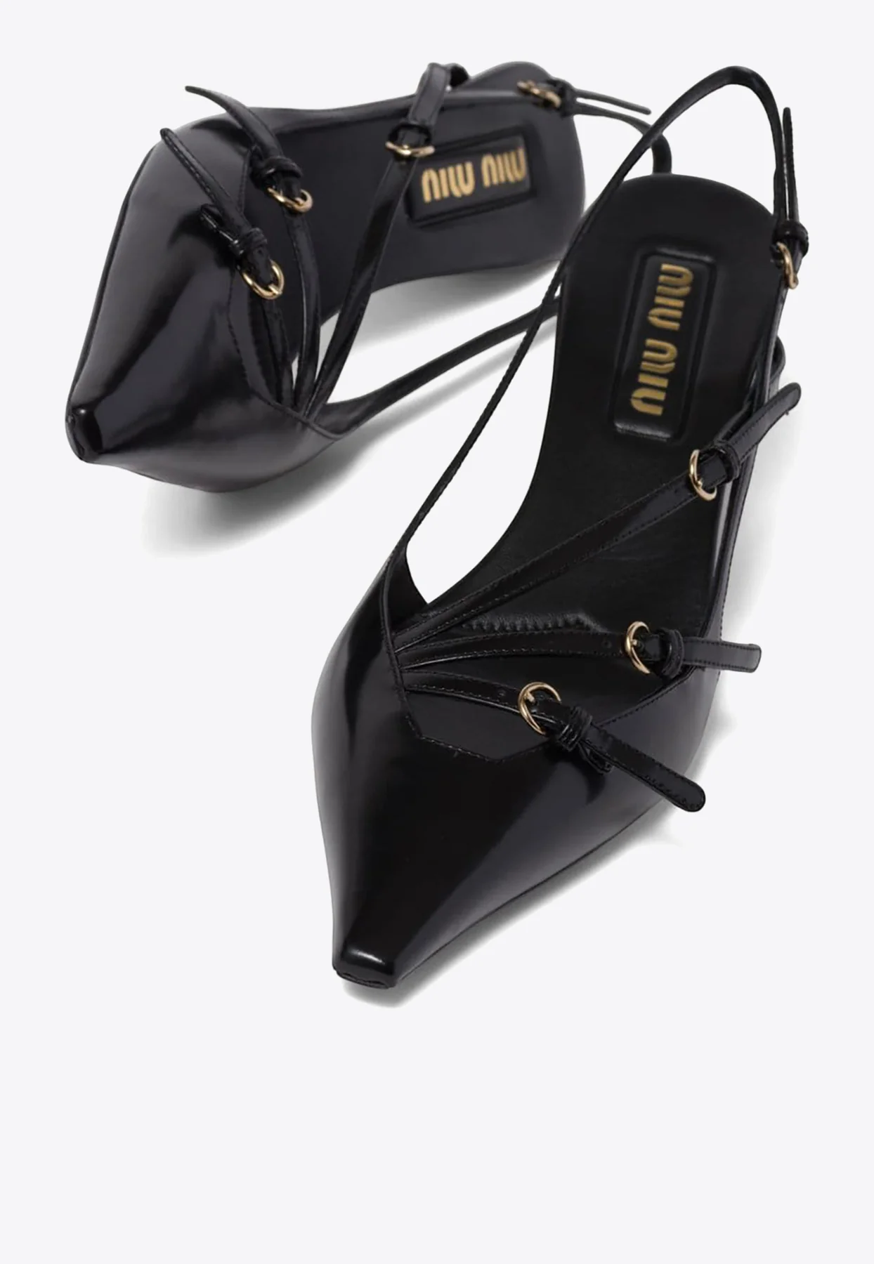 Miu Miu 55 Buckle-Embellished Leather Slingback Pumps
