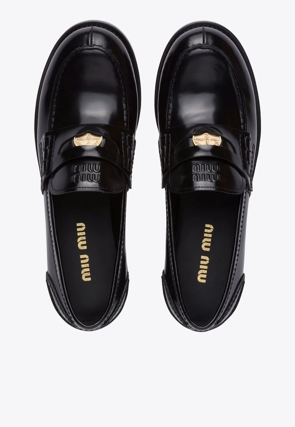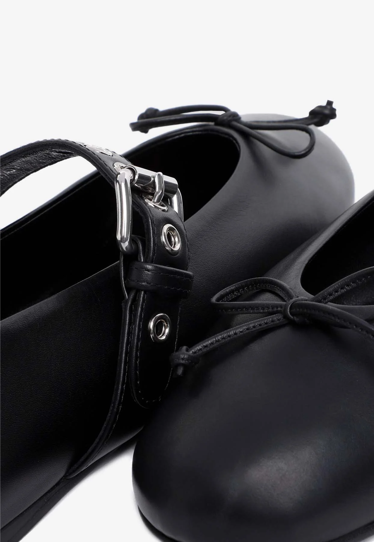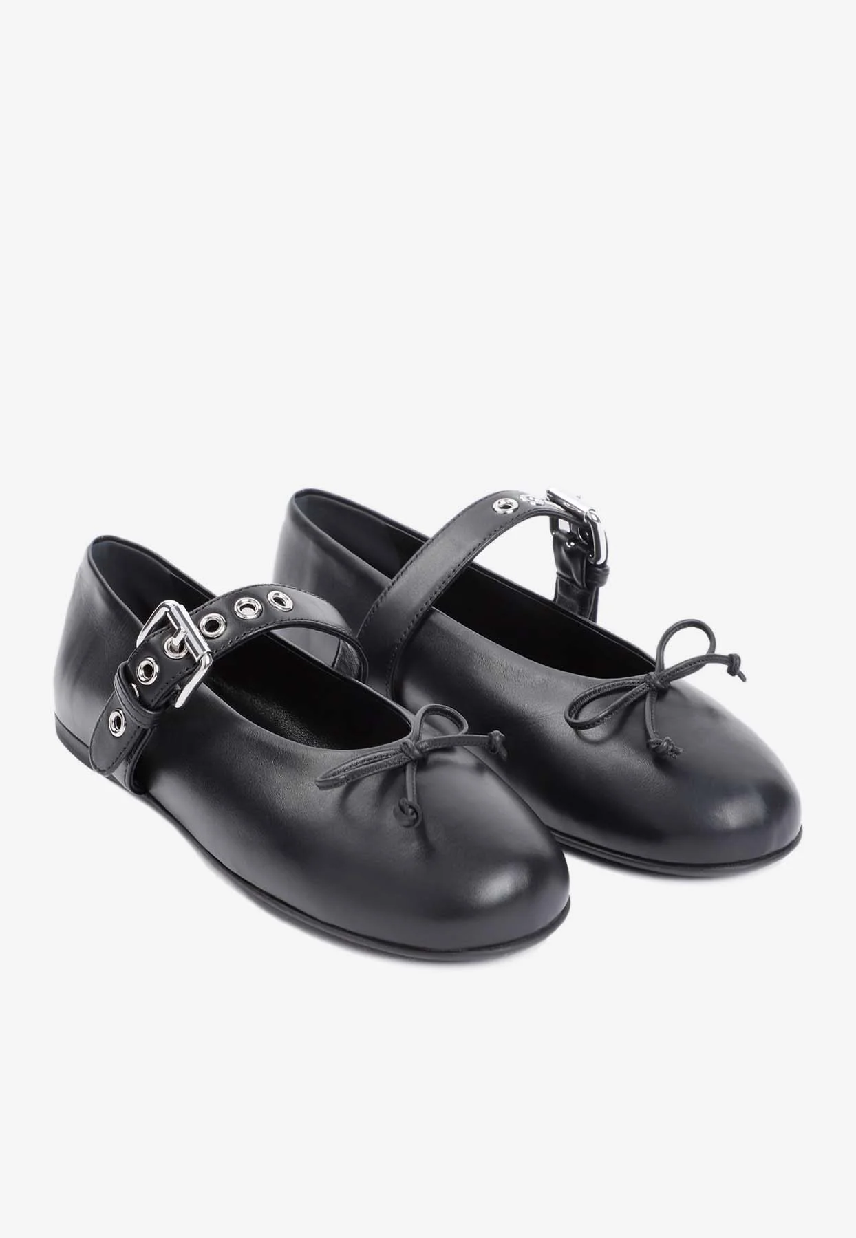 Miu Miu Leather-Bow Calf Leather Ballerina Flats