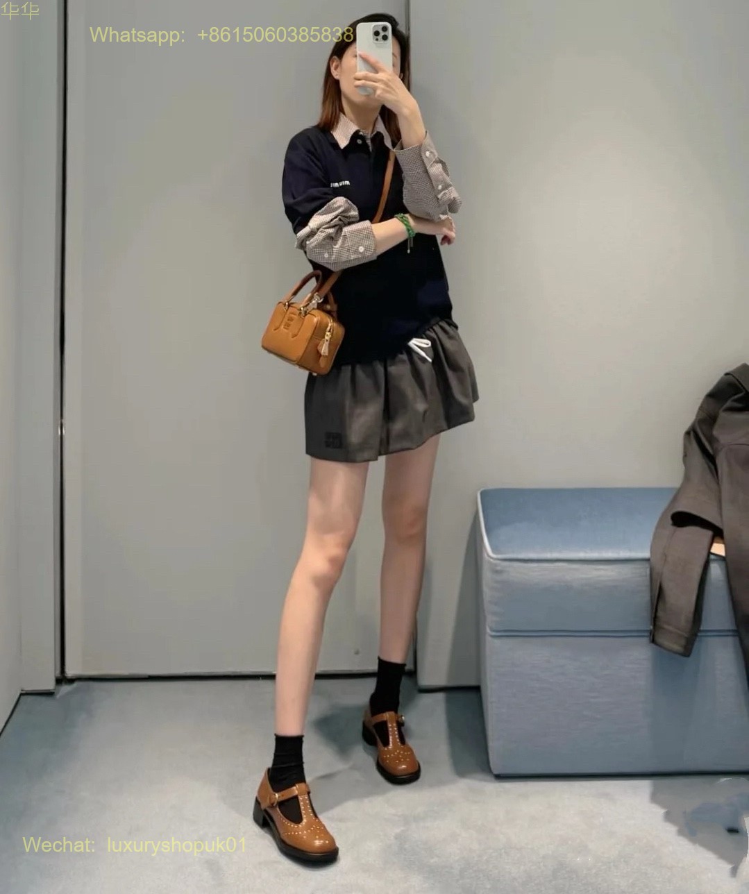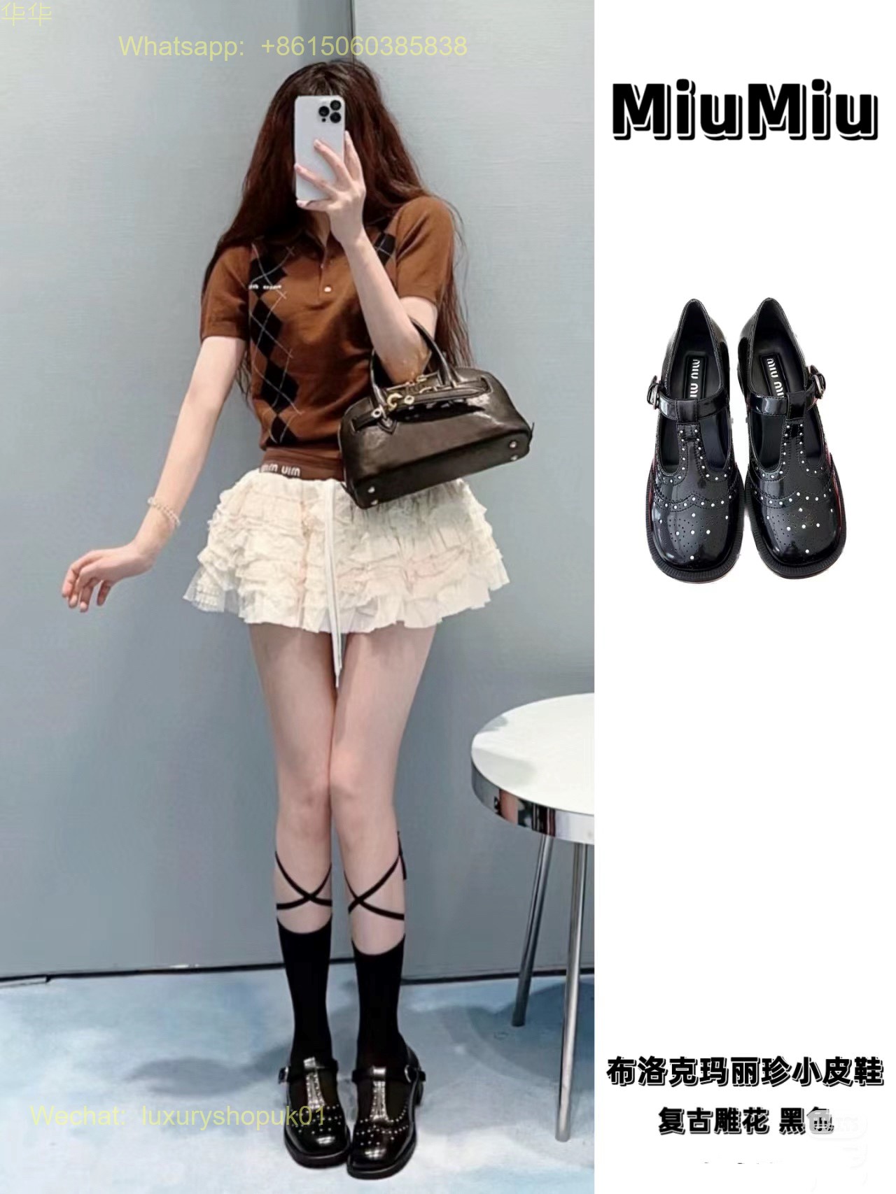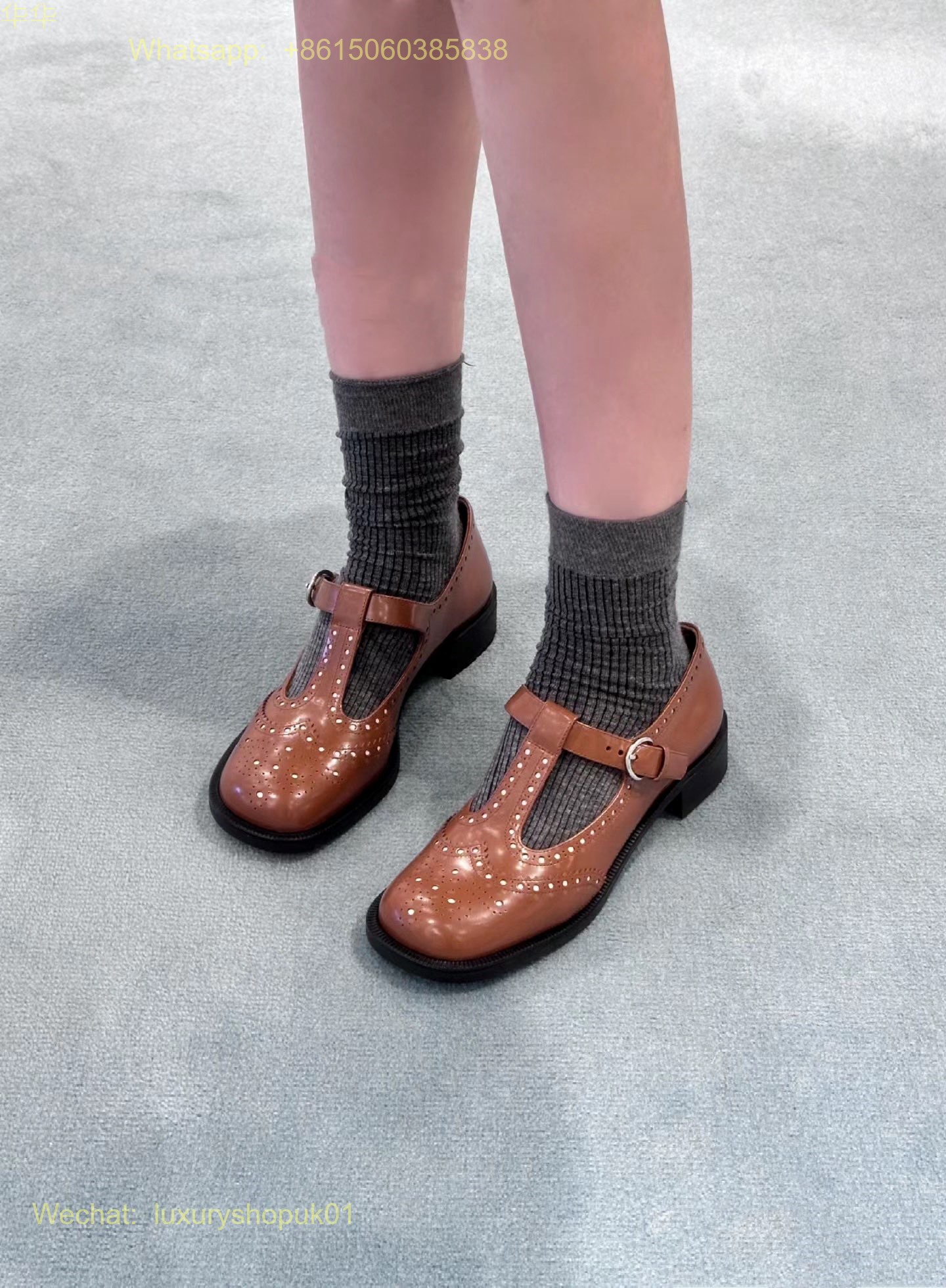 Miu Miu Leather Mary Jane Flat Women Shoes