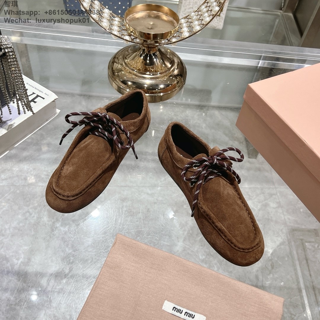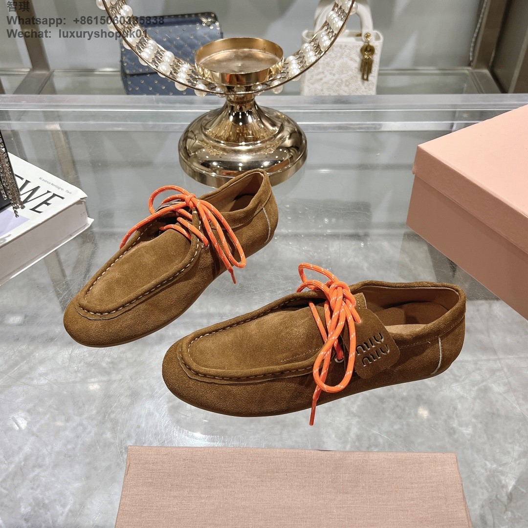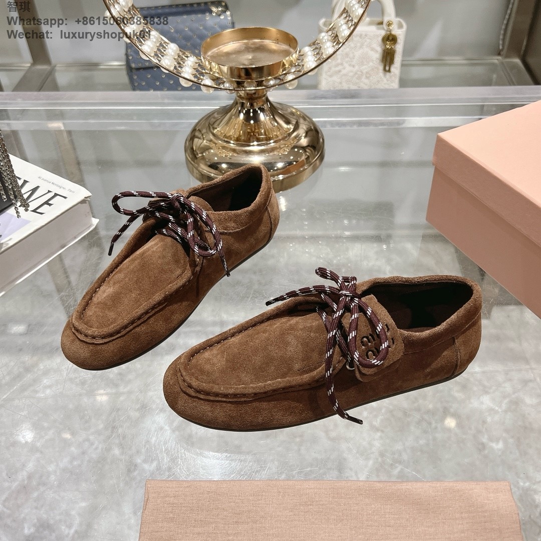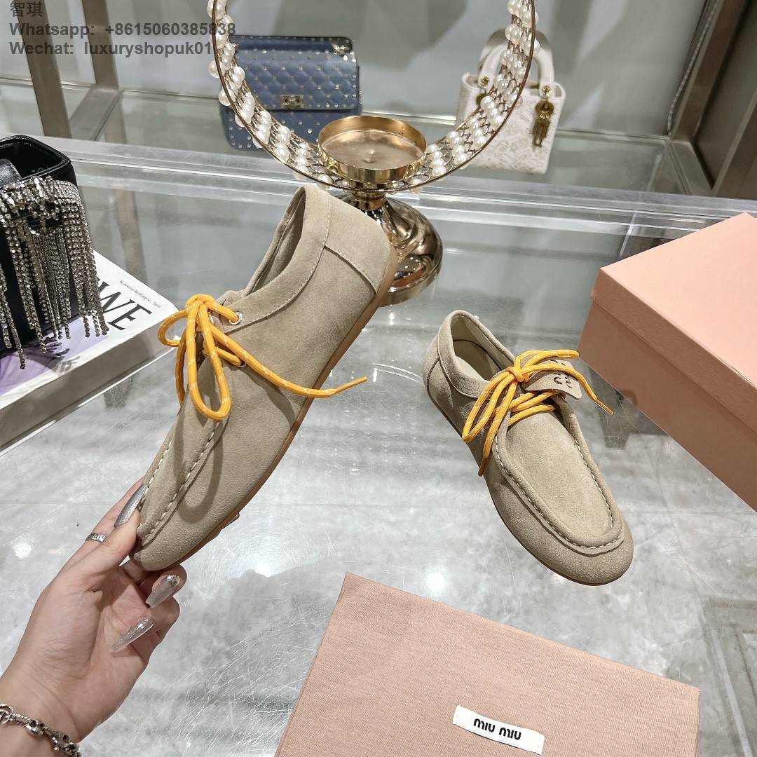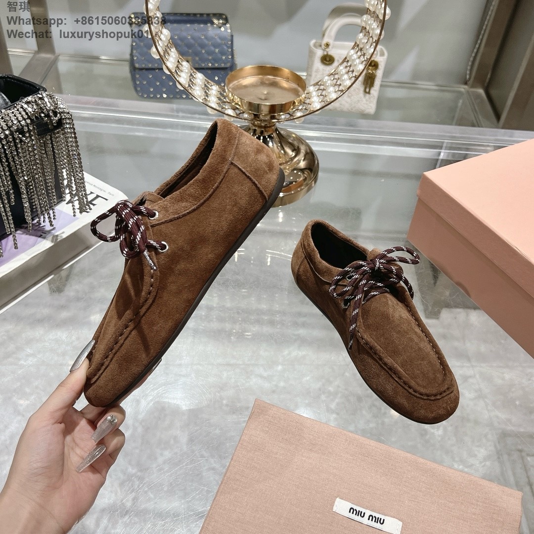 Miu Miu logo-embossed suede loafers tie-detailing round toe Women flat shoes