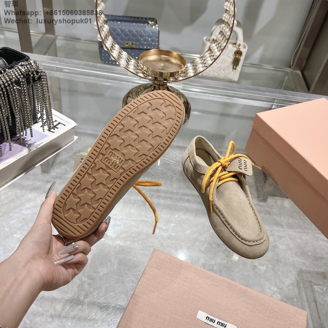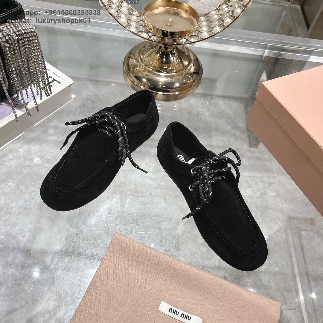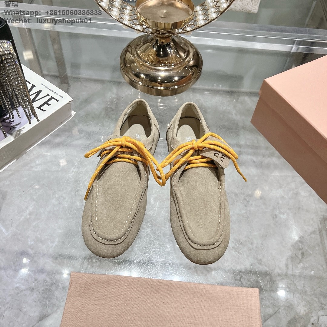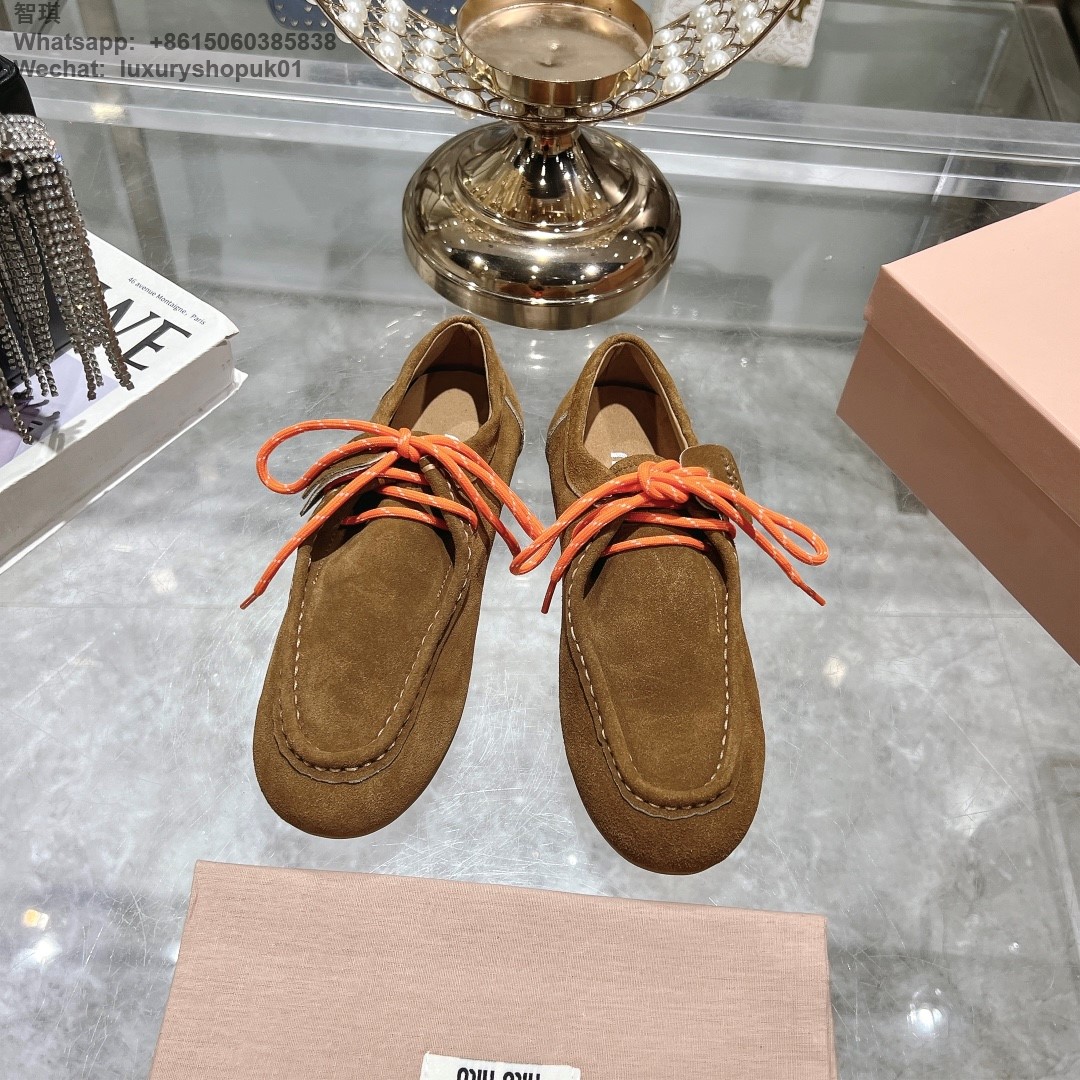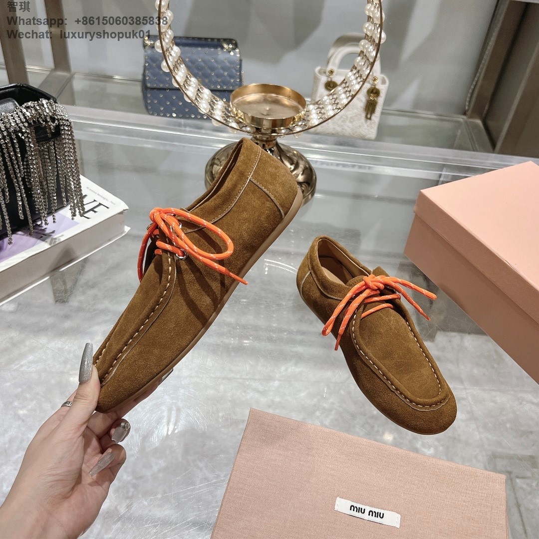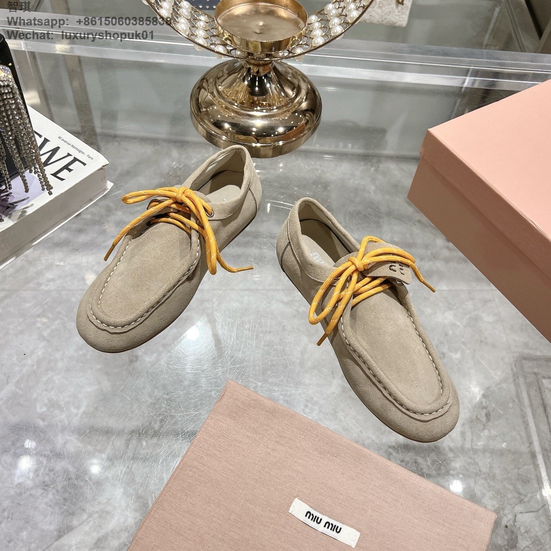 Miu Miu logo-embossed suede loafers tie-detailing round toe Women flat shoes