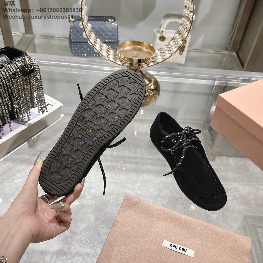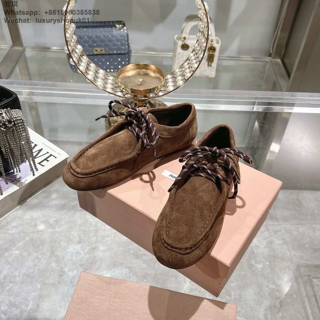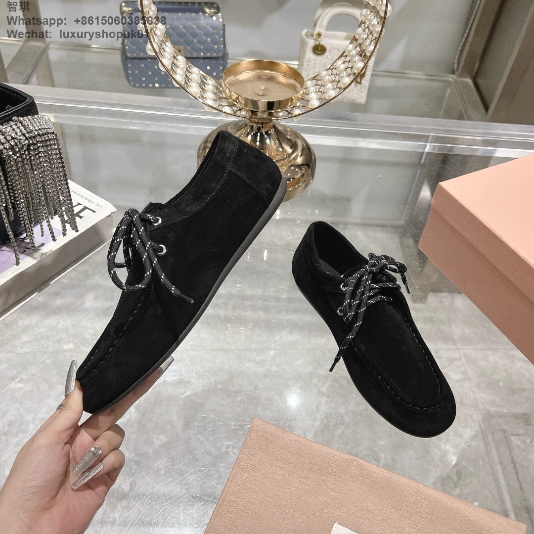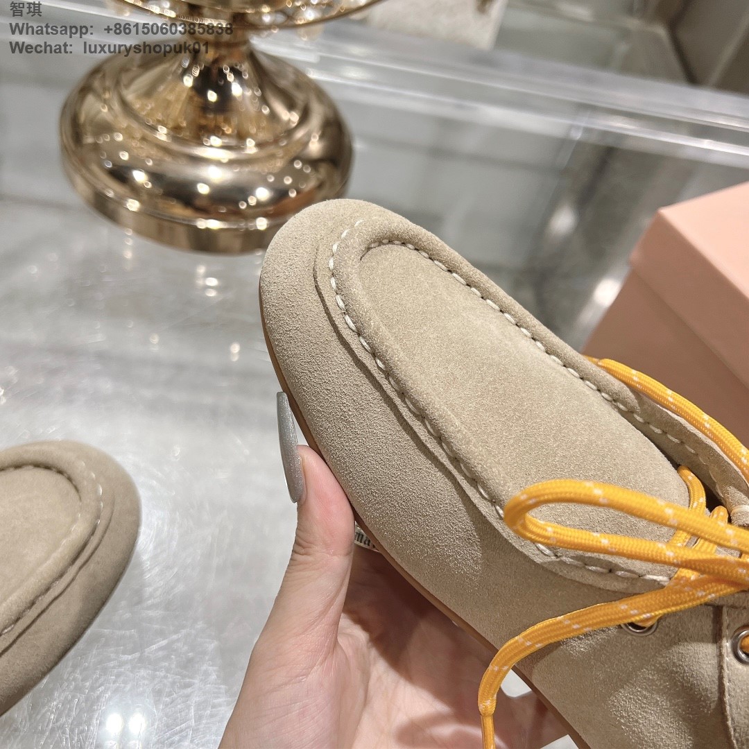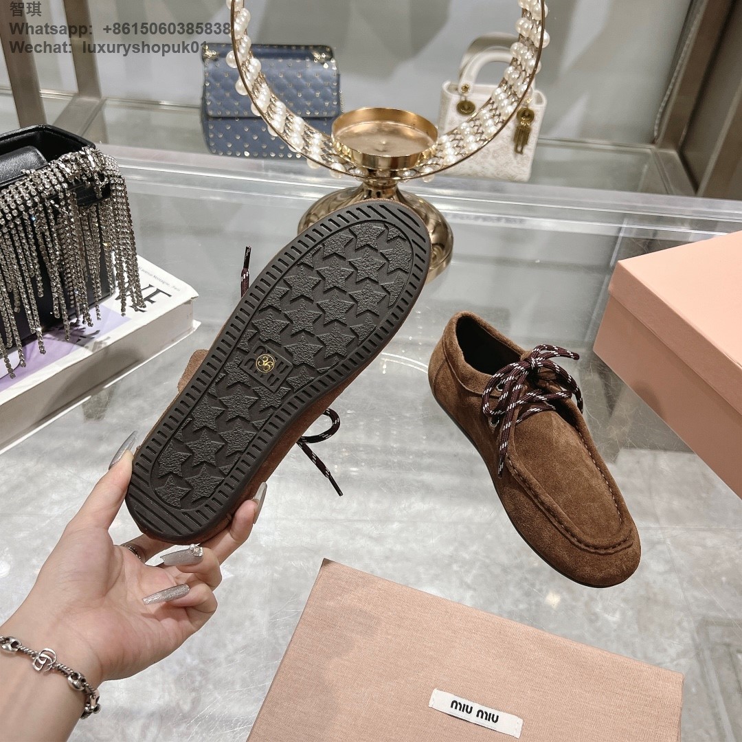 Miu Miu logo-embossed suede loafers tie-detailing round toe Women flat shoes