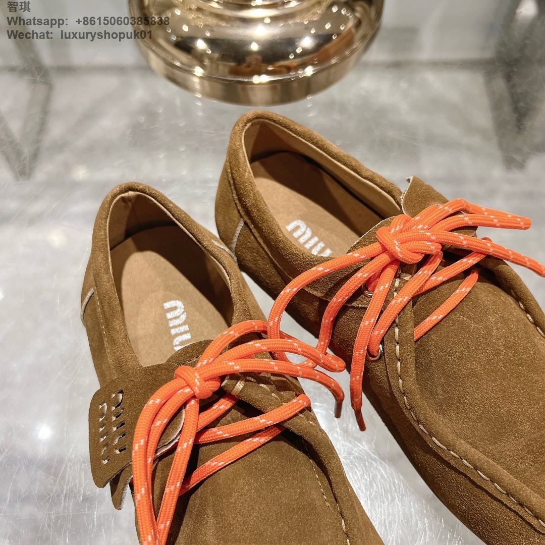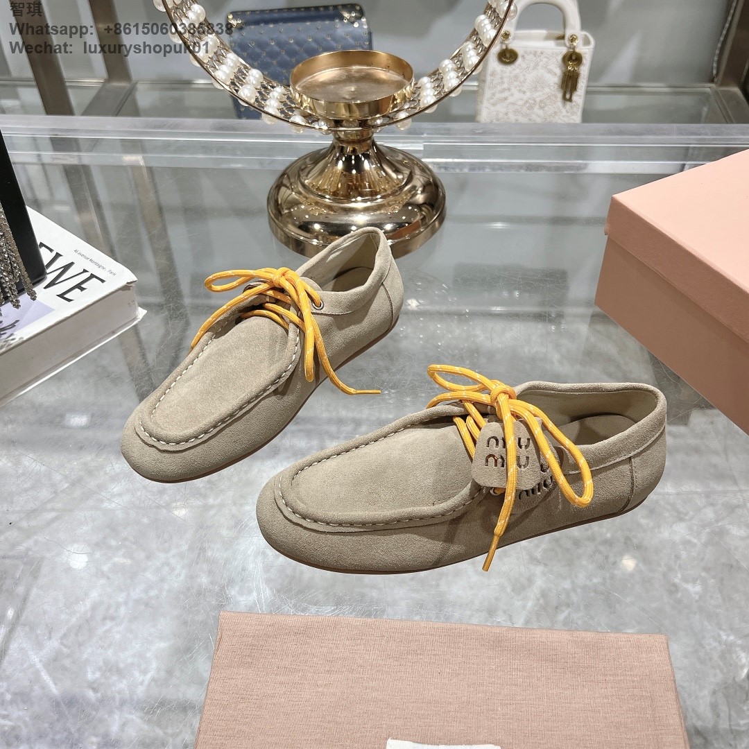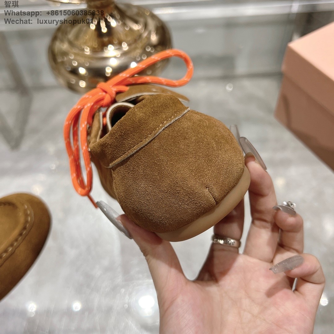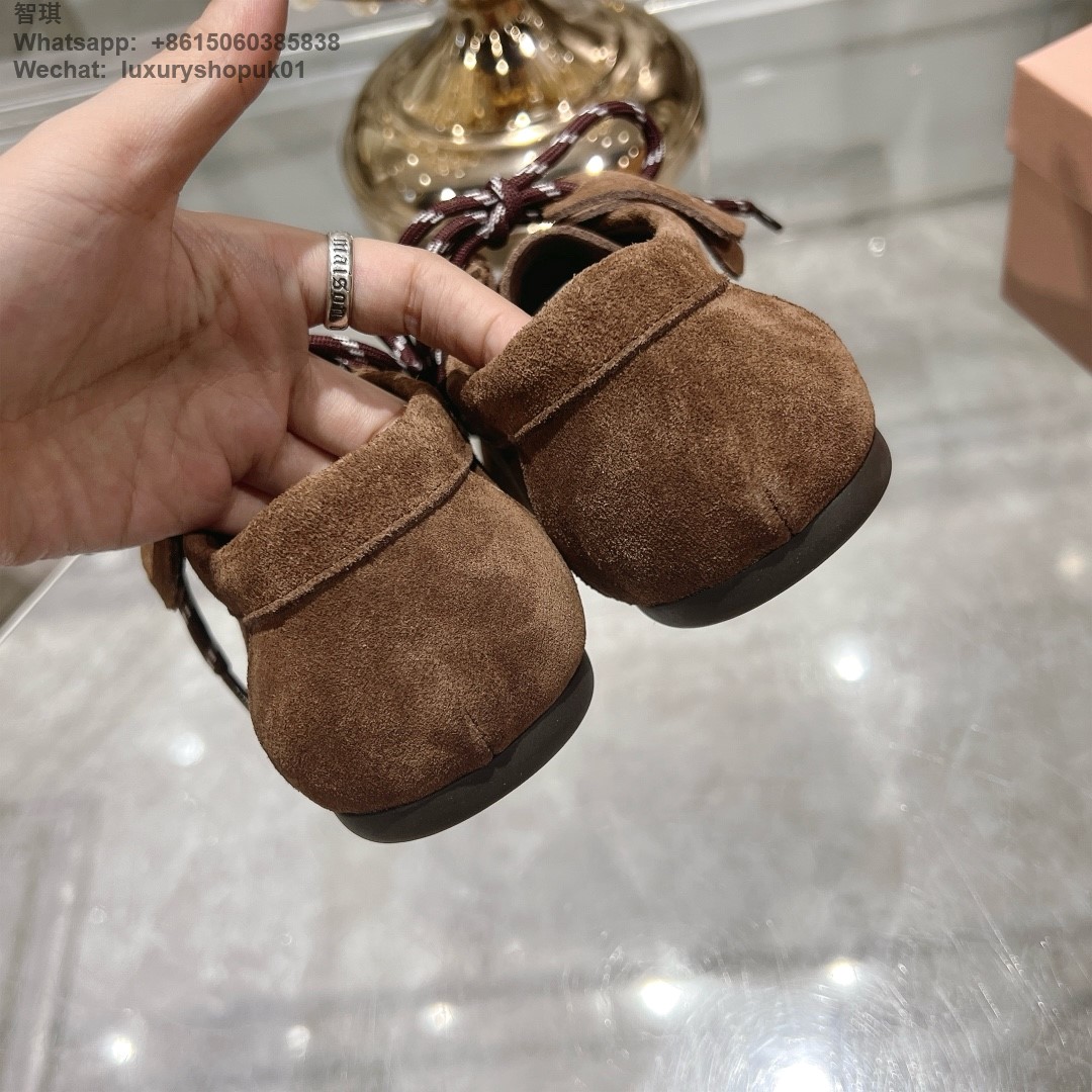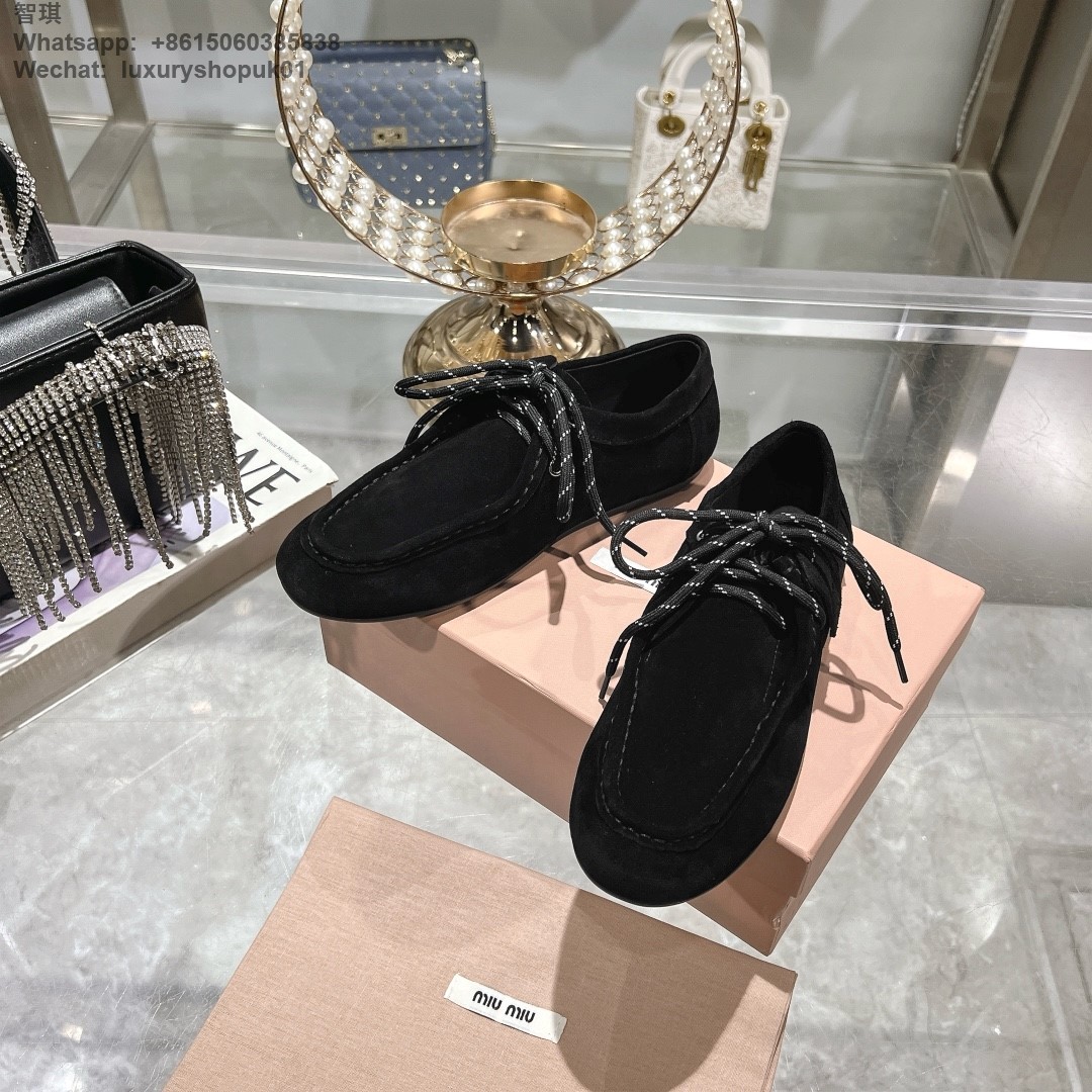 Miu Miu logo-embossed suede loafers tie-detailing round toe Women flat shoes