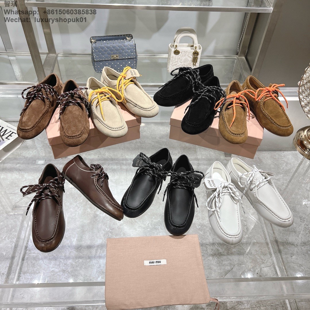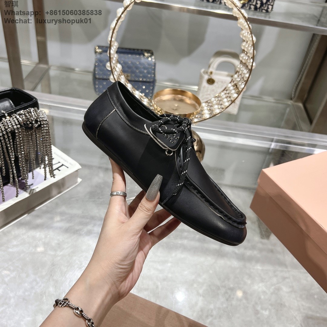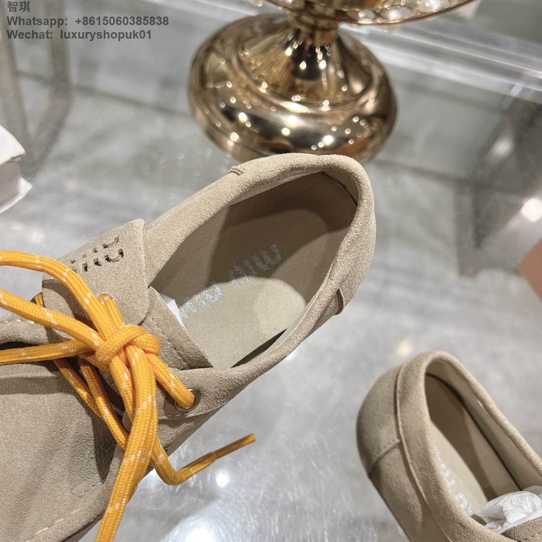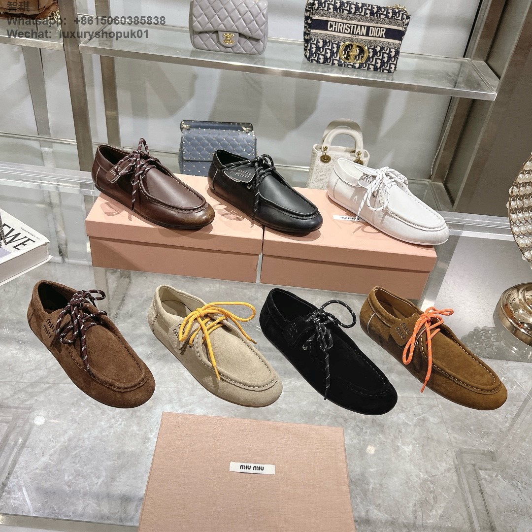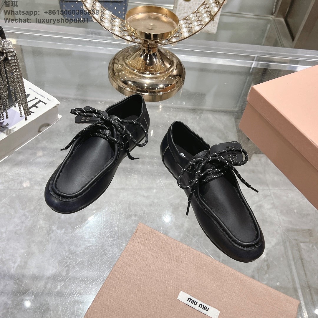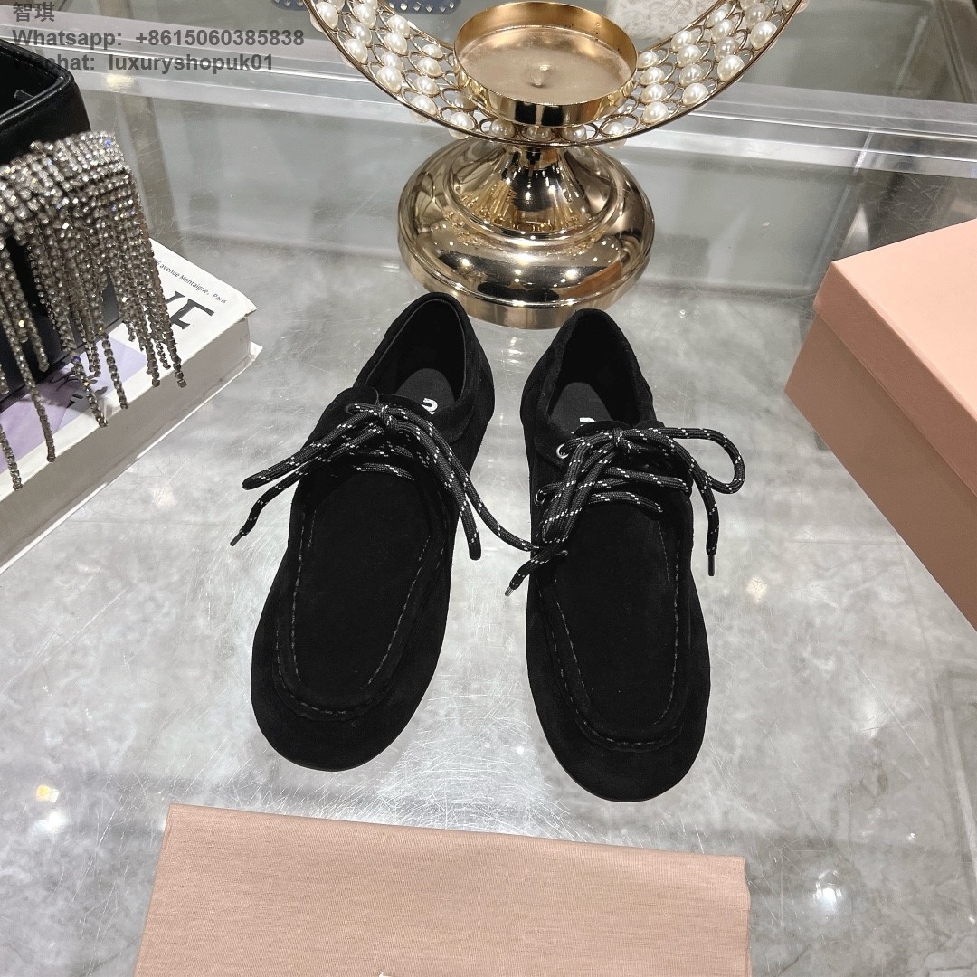 Miu Miu logo-embossed suede loafers tie-detailing round toe Women flat shoes
