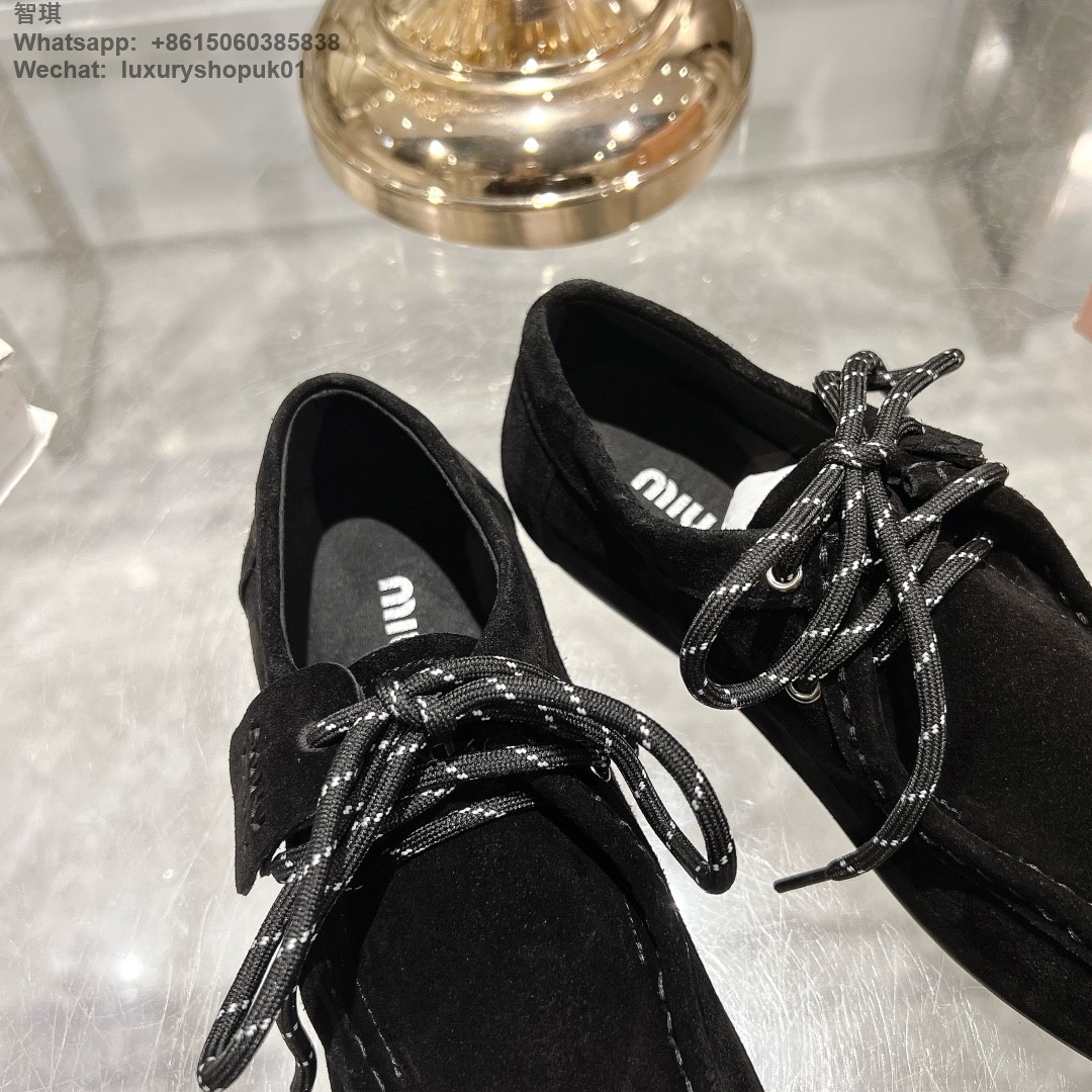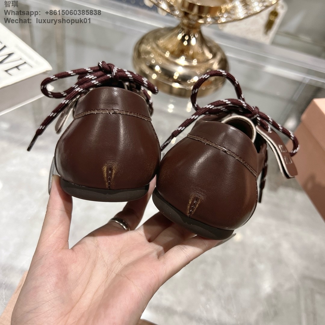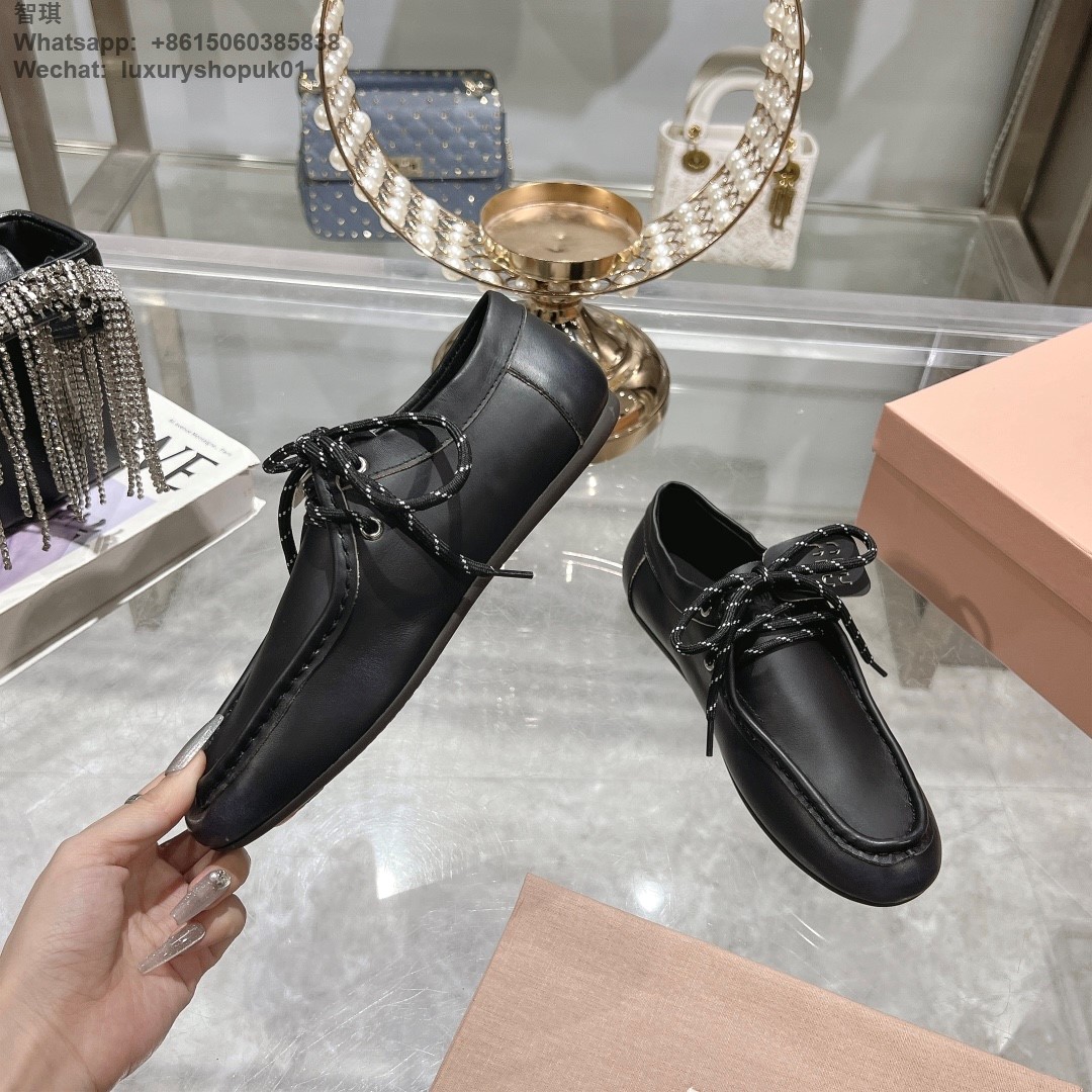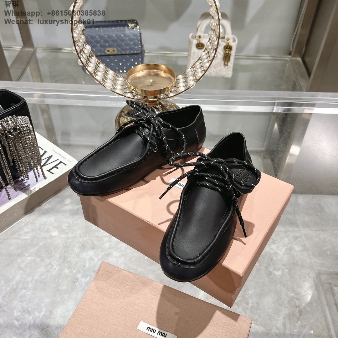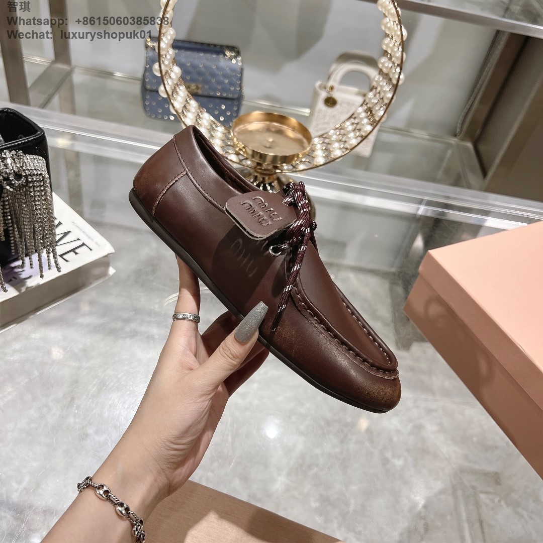 Miu Miu logo-embossed suede loafers tie-detailing round toe Women flat shoes