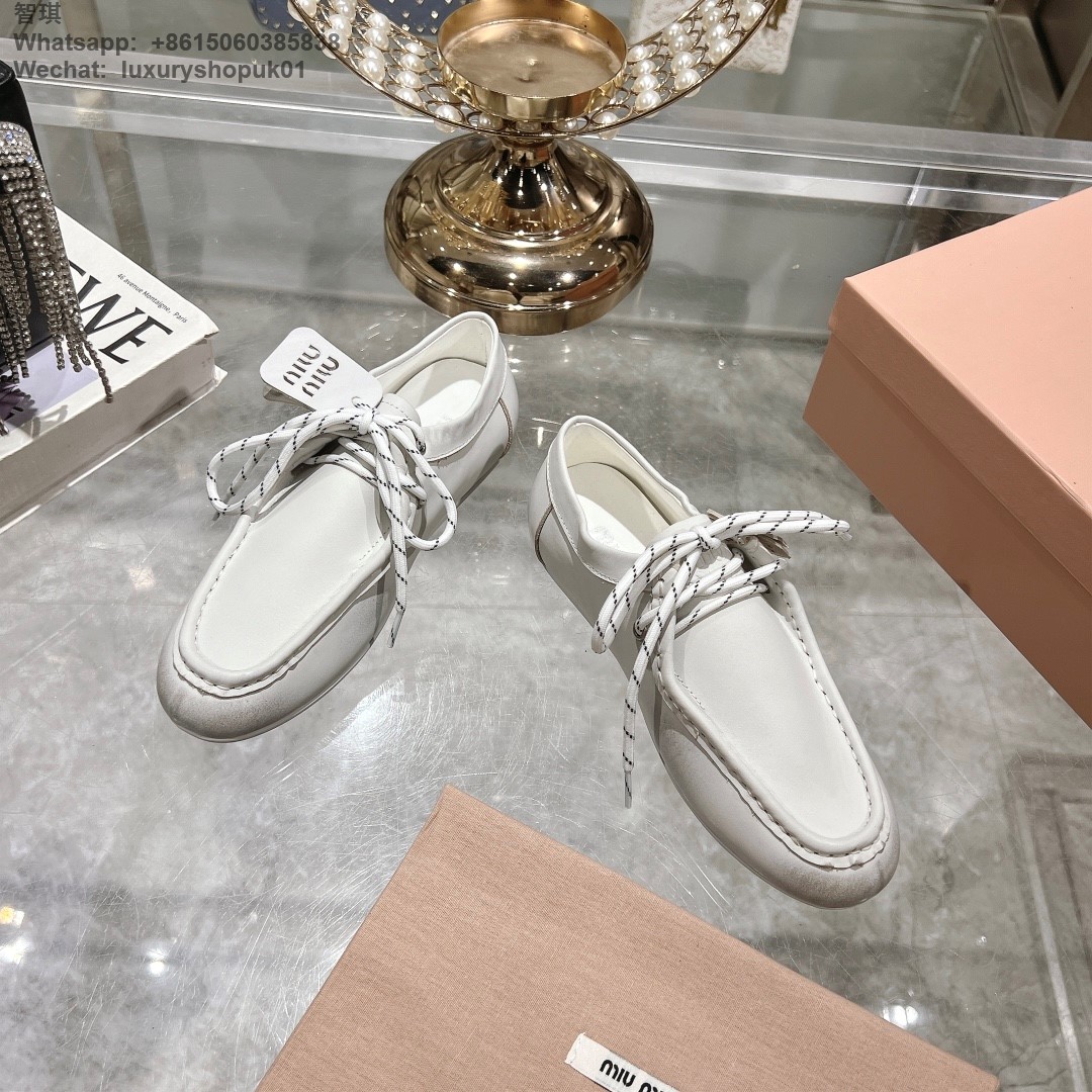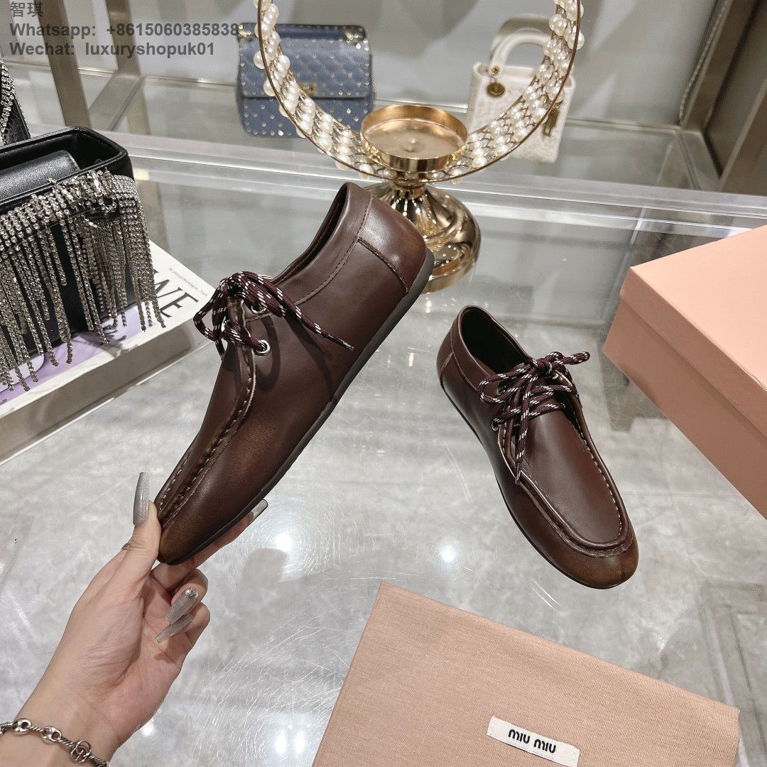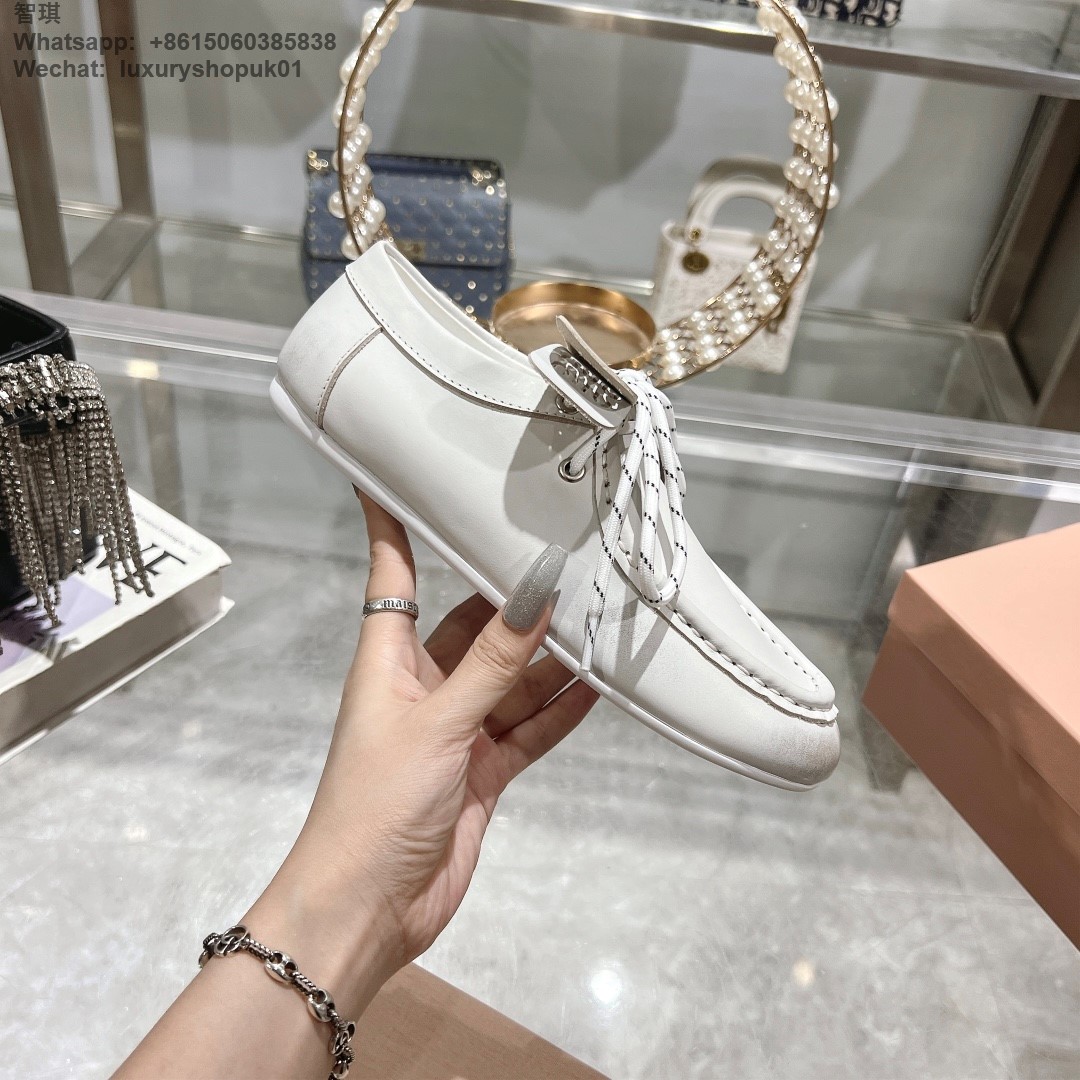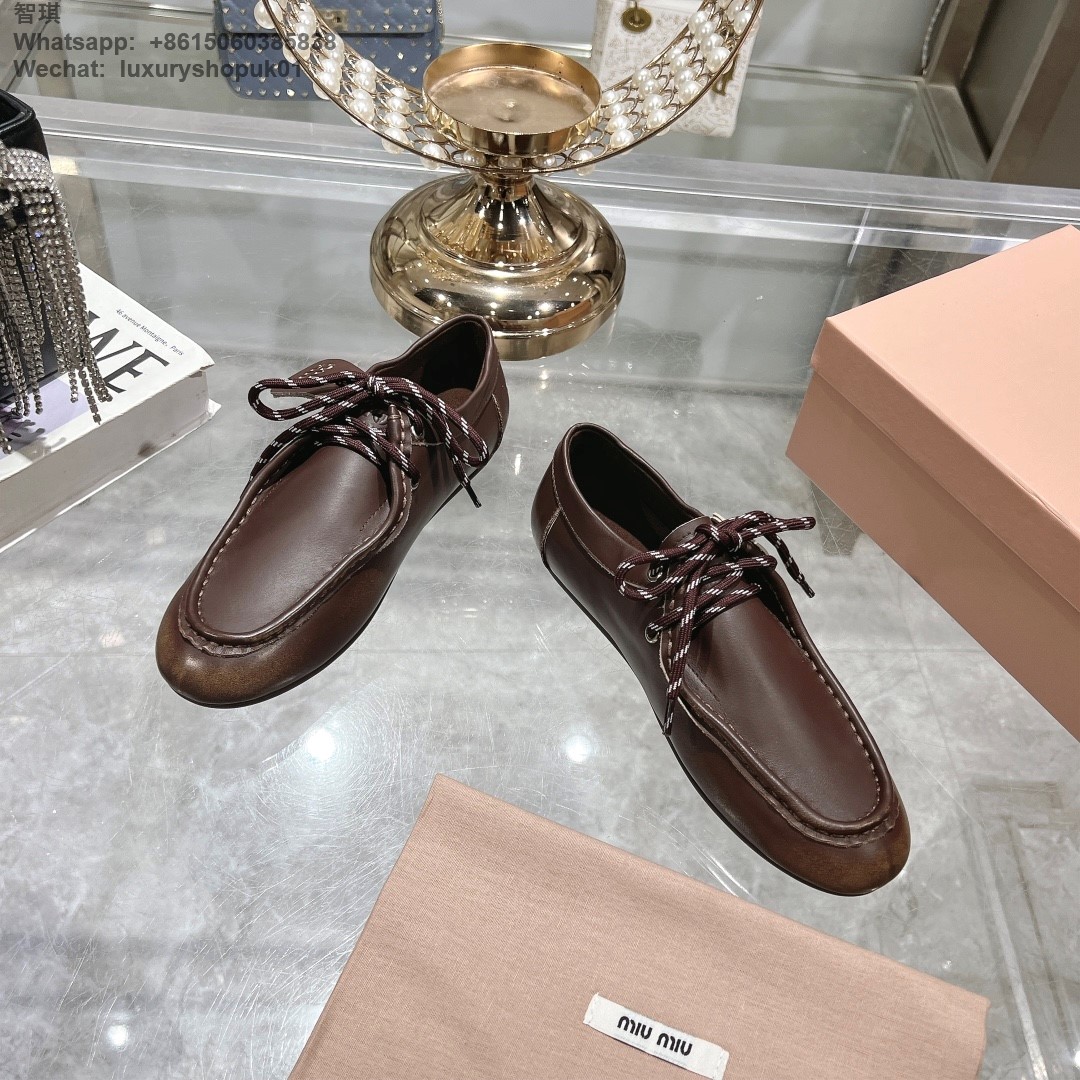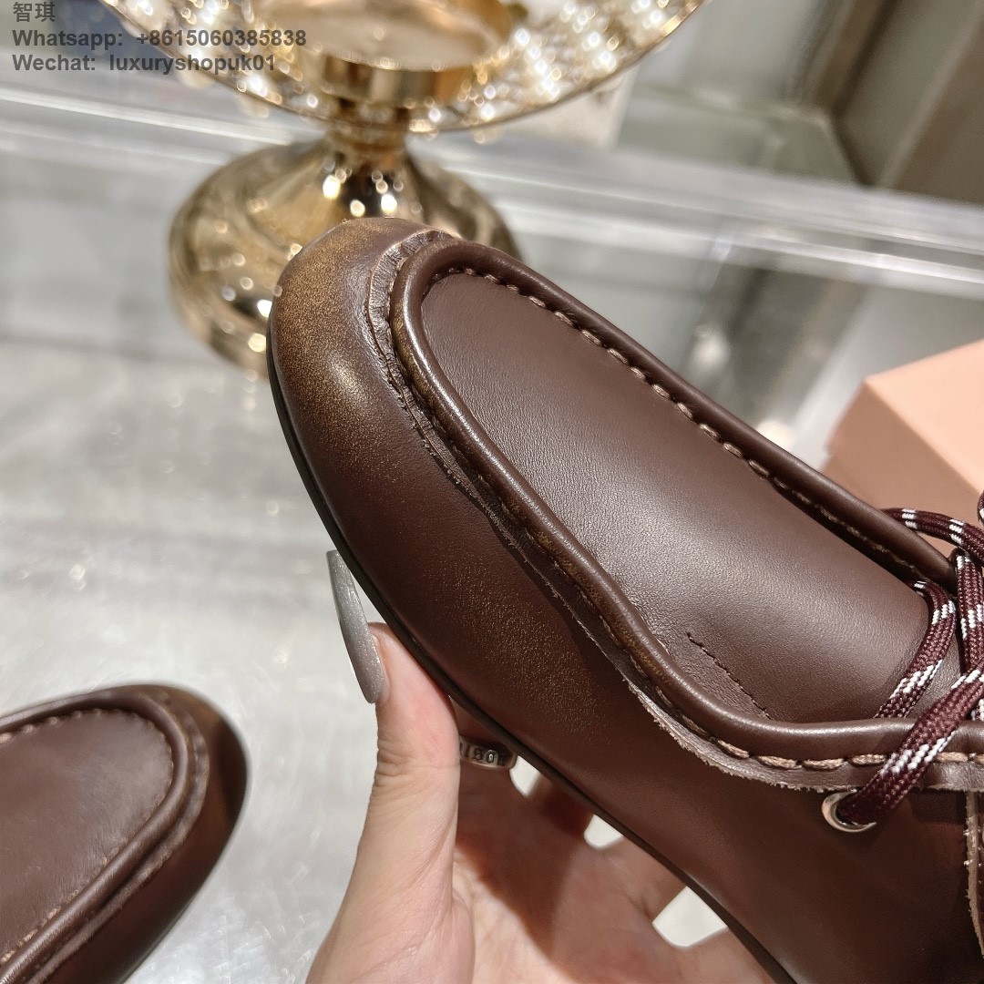Miu Miu logo-embossed suede loafers tie-detailing round toe Women flat shoes