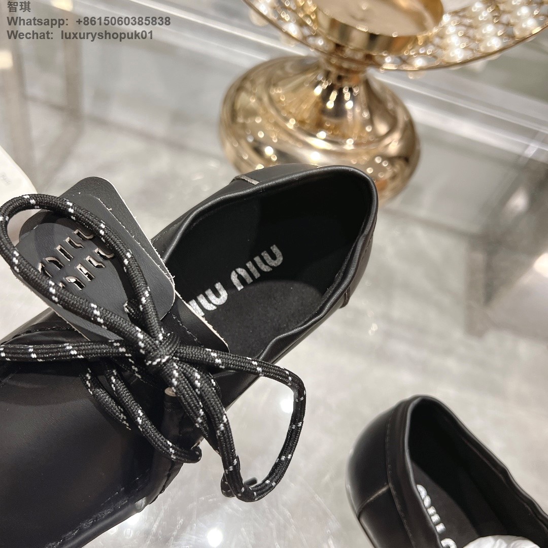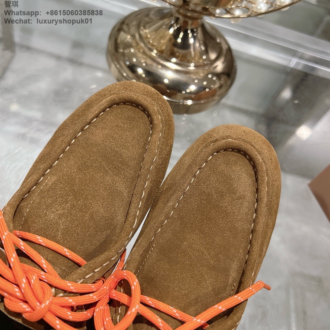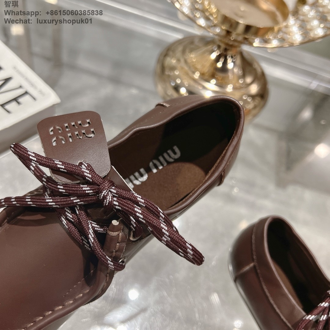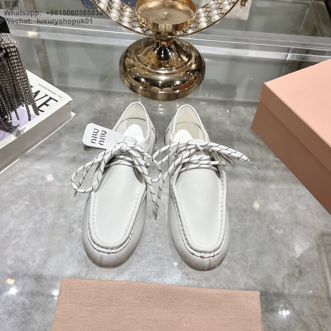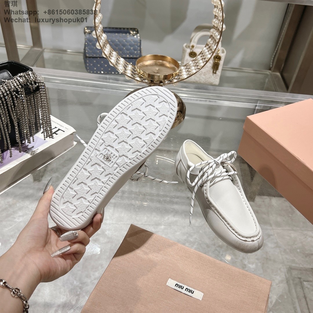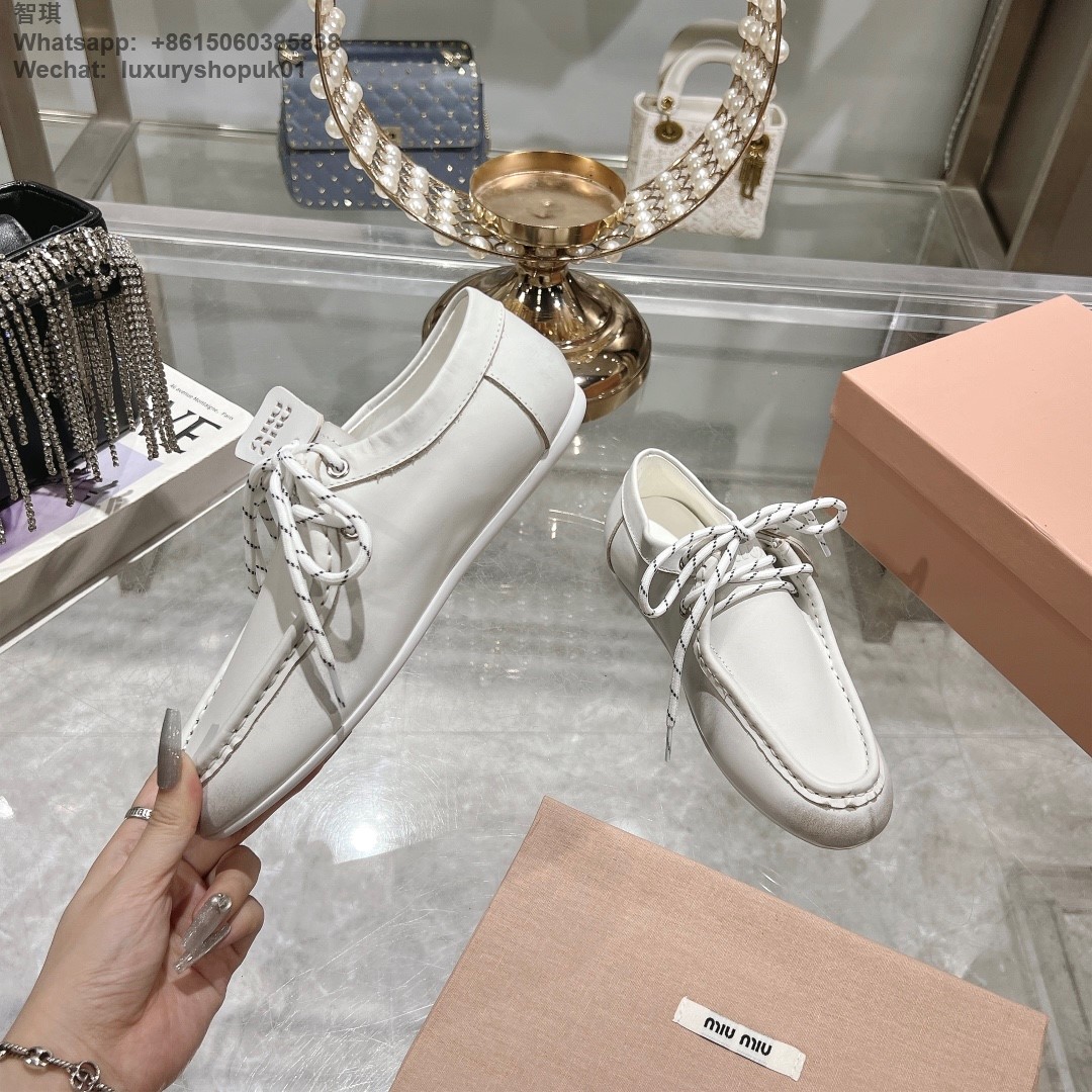 Miu Miu logo-embossed suede loafers tie-detailing round toe Women flat shoes