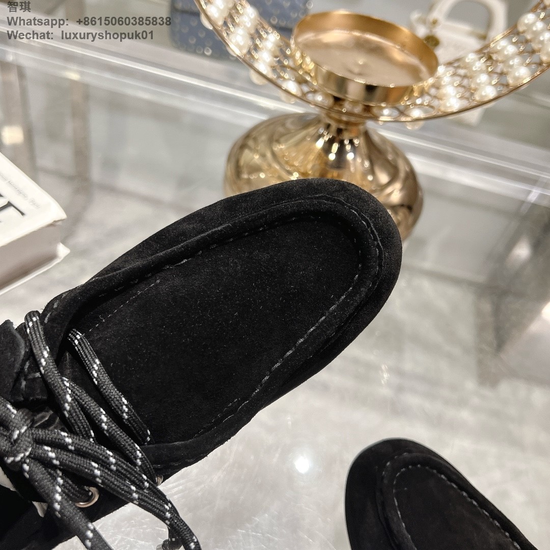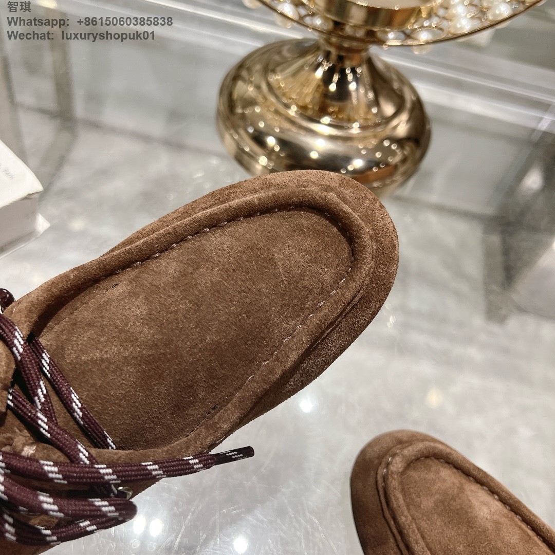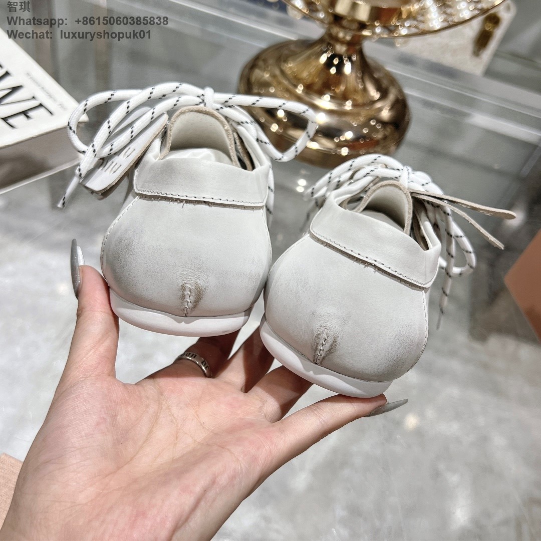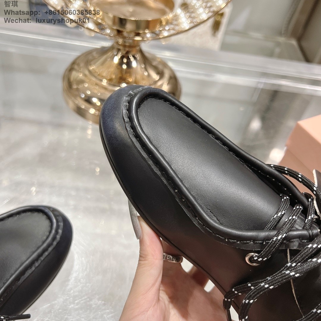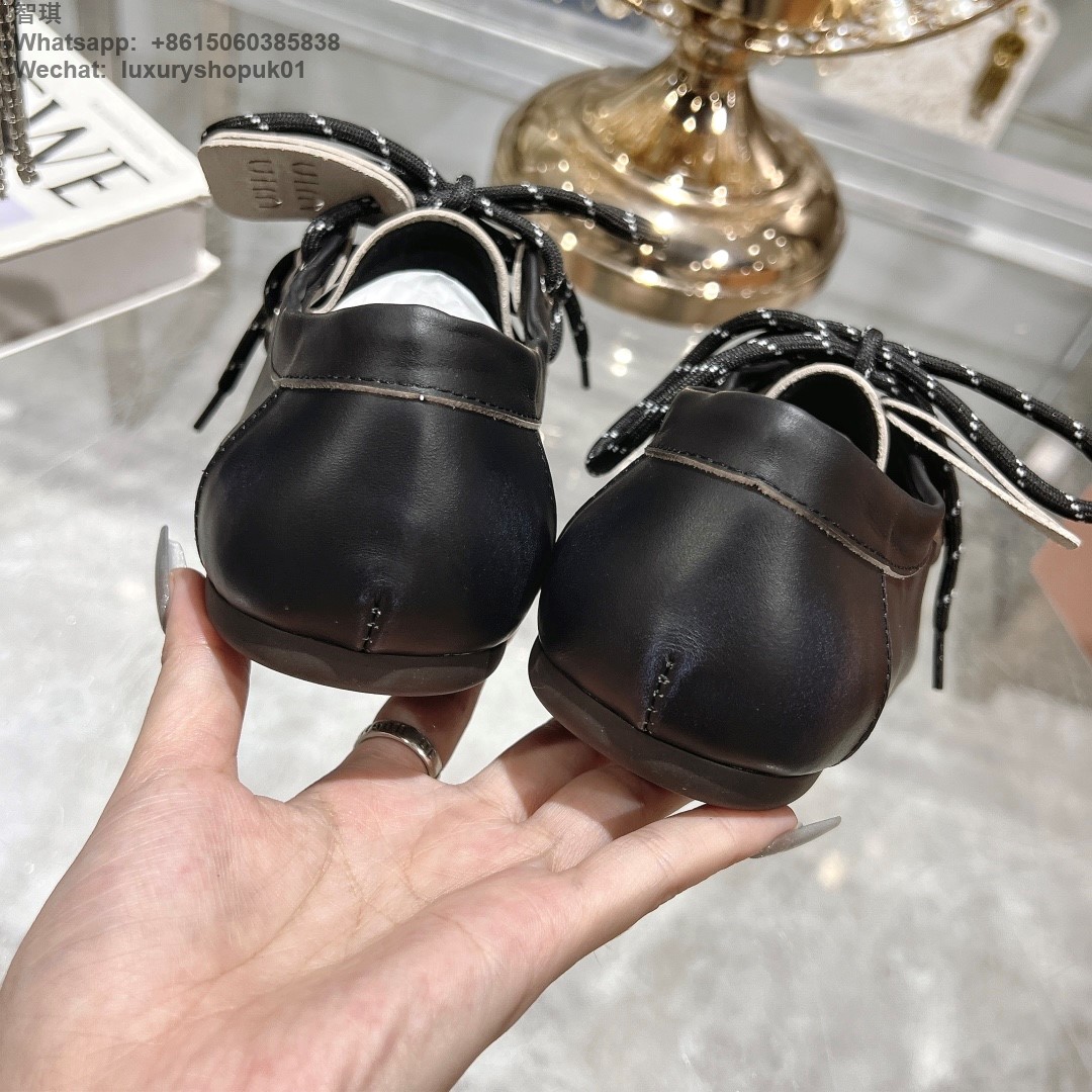 Miu Miu logo-embossed suede loafers tie-detailing round toe Women flat shoes