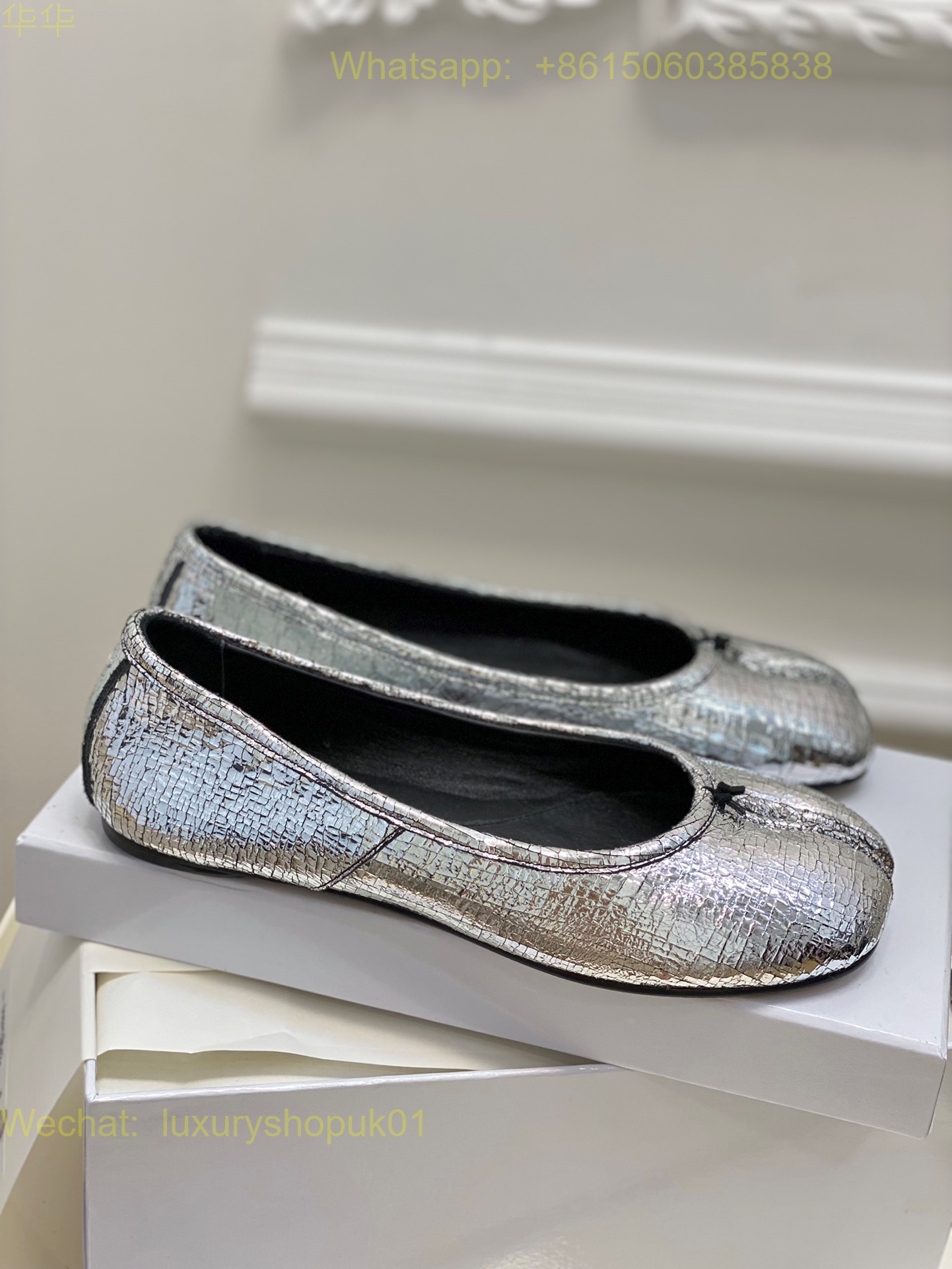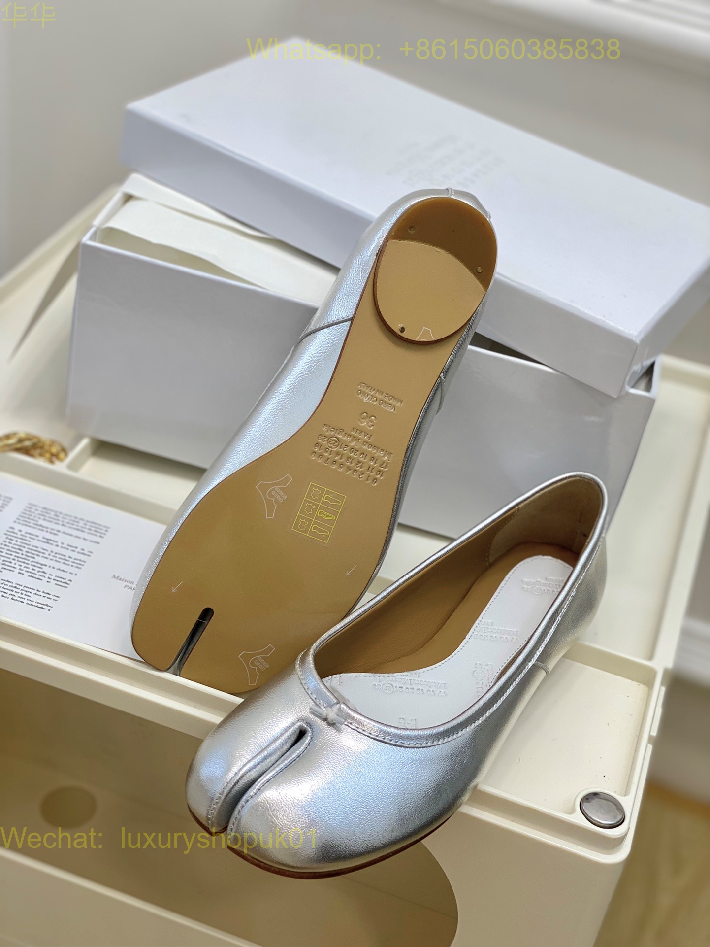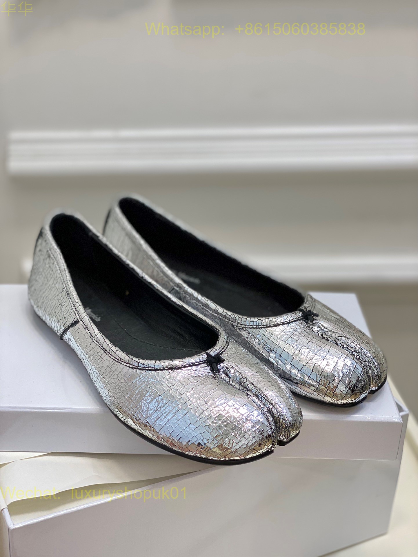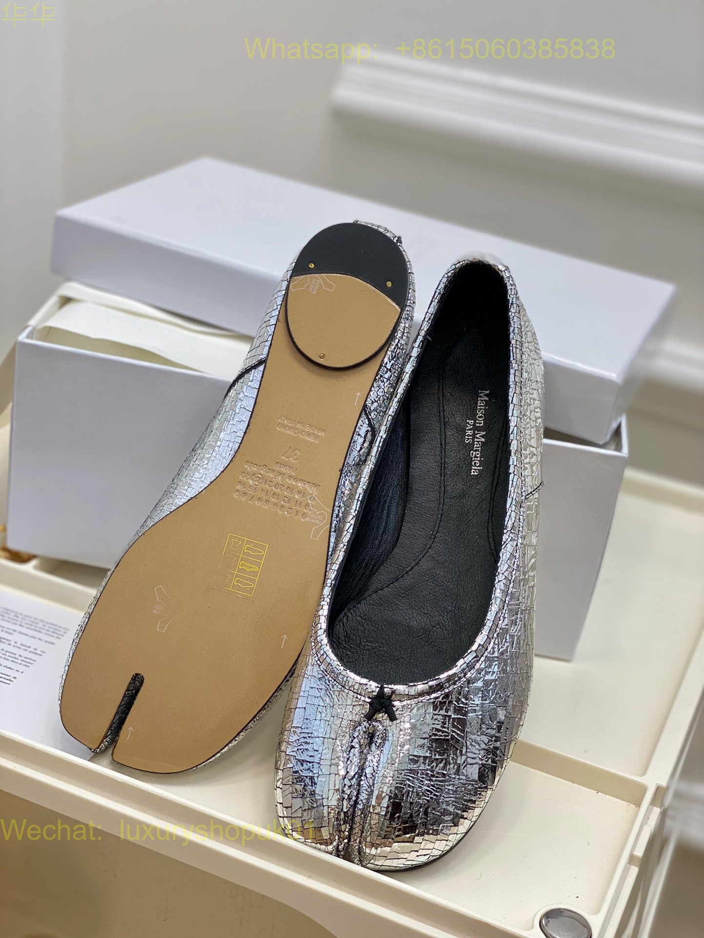 MM6 Maison Margiela tabi stitch-out silver leather ballerina shoes Women Flat Shoes