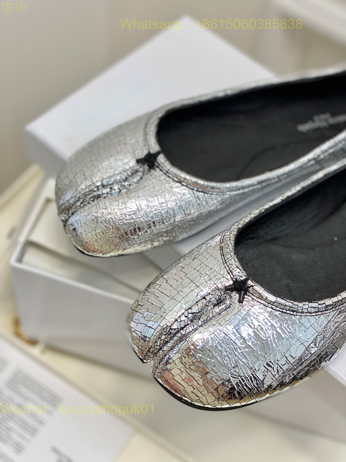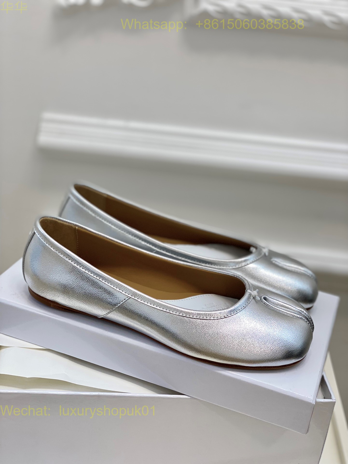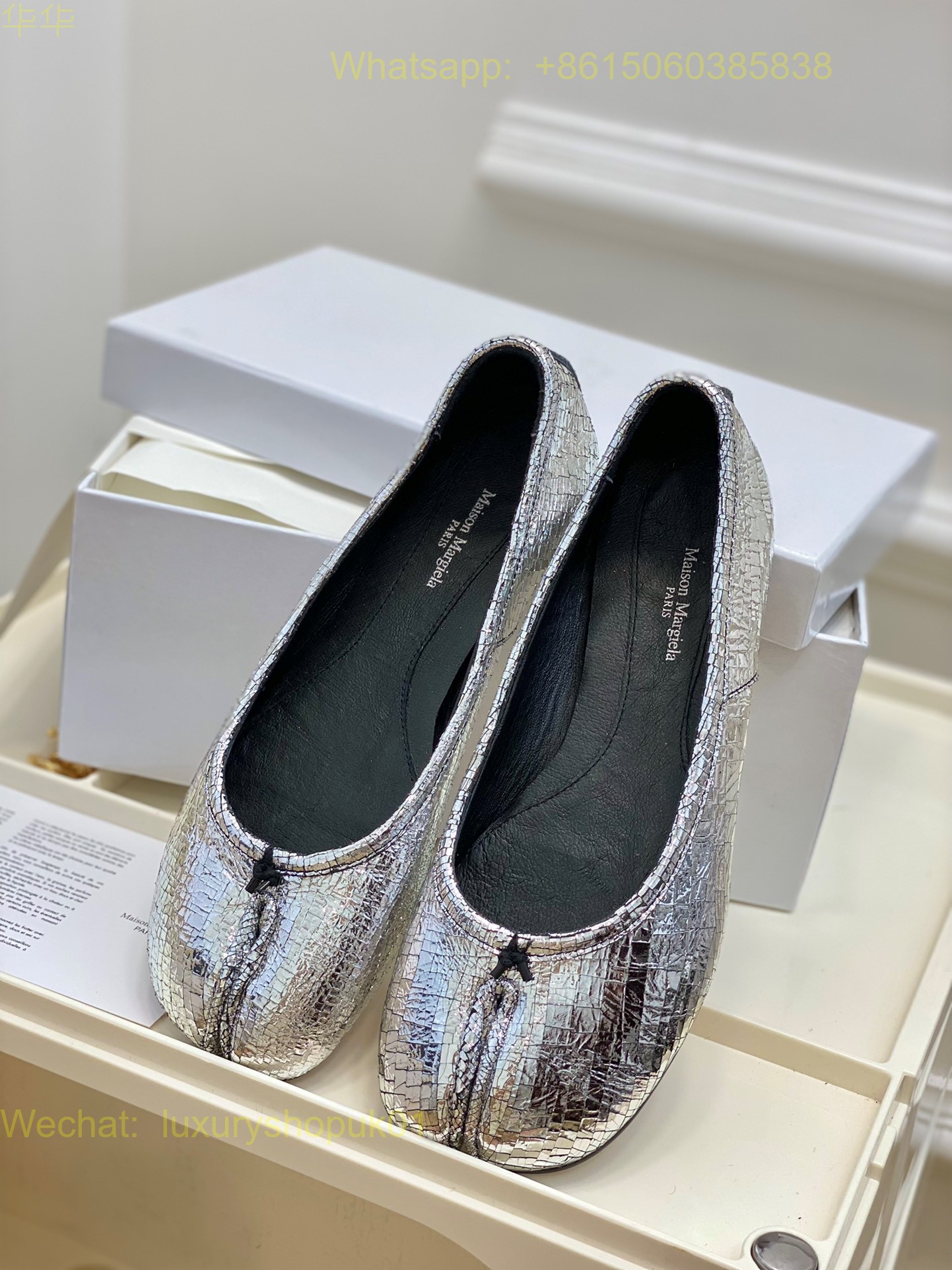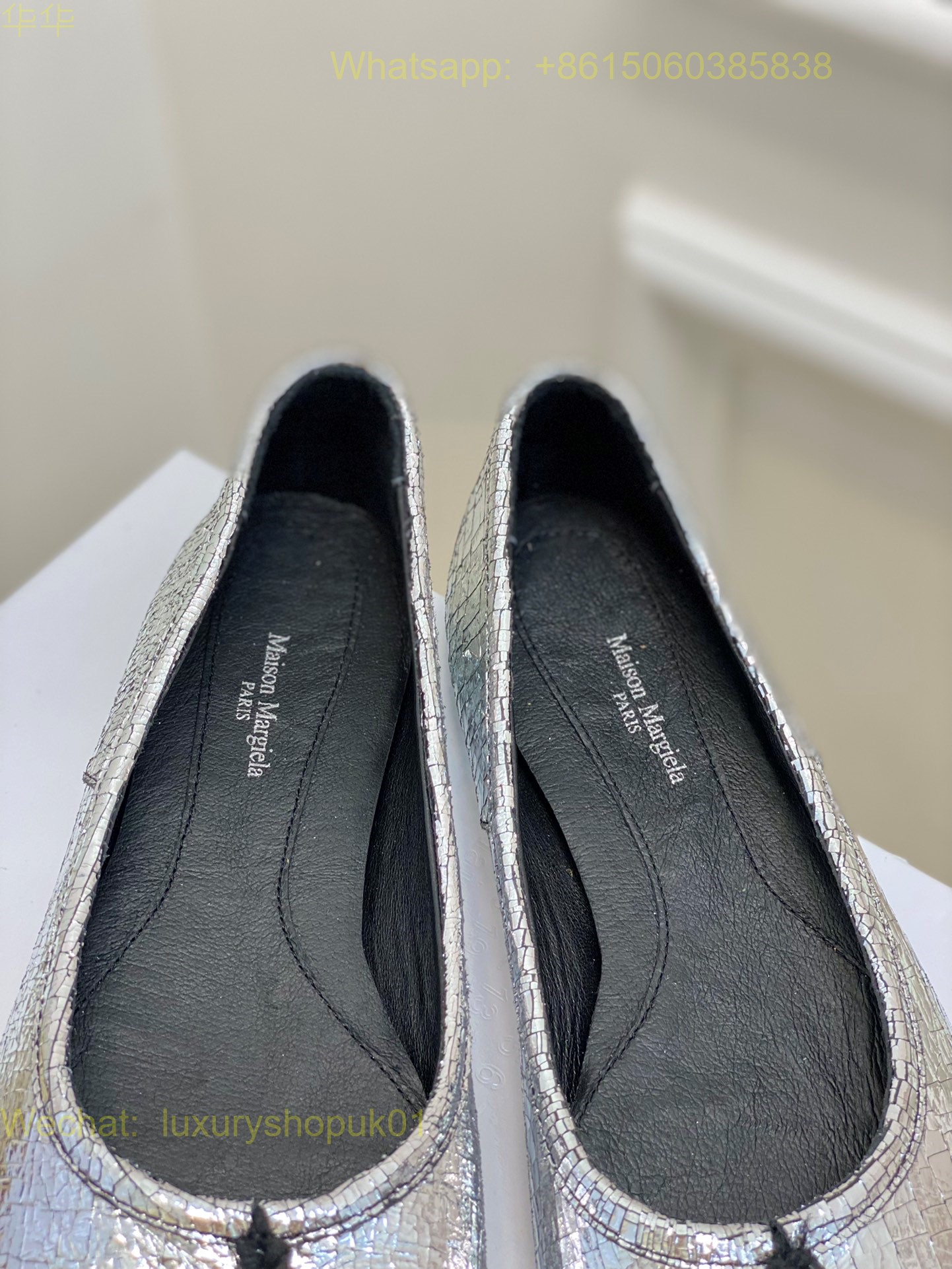 MM6 Maison Margiela tabi stitch-out silver leather ballerina shoes Women Flat Shoes