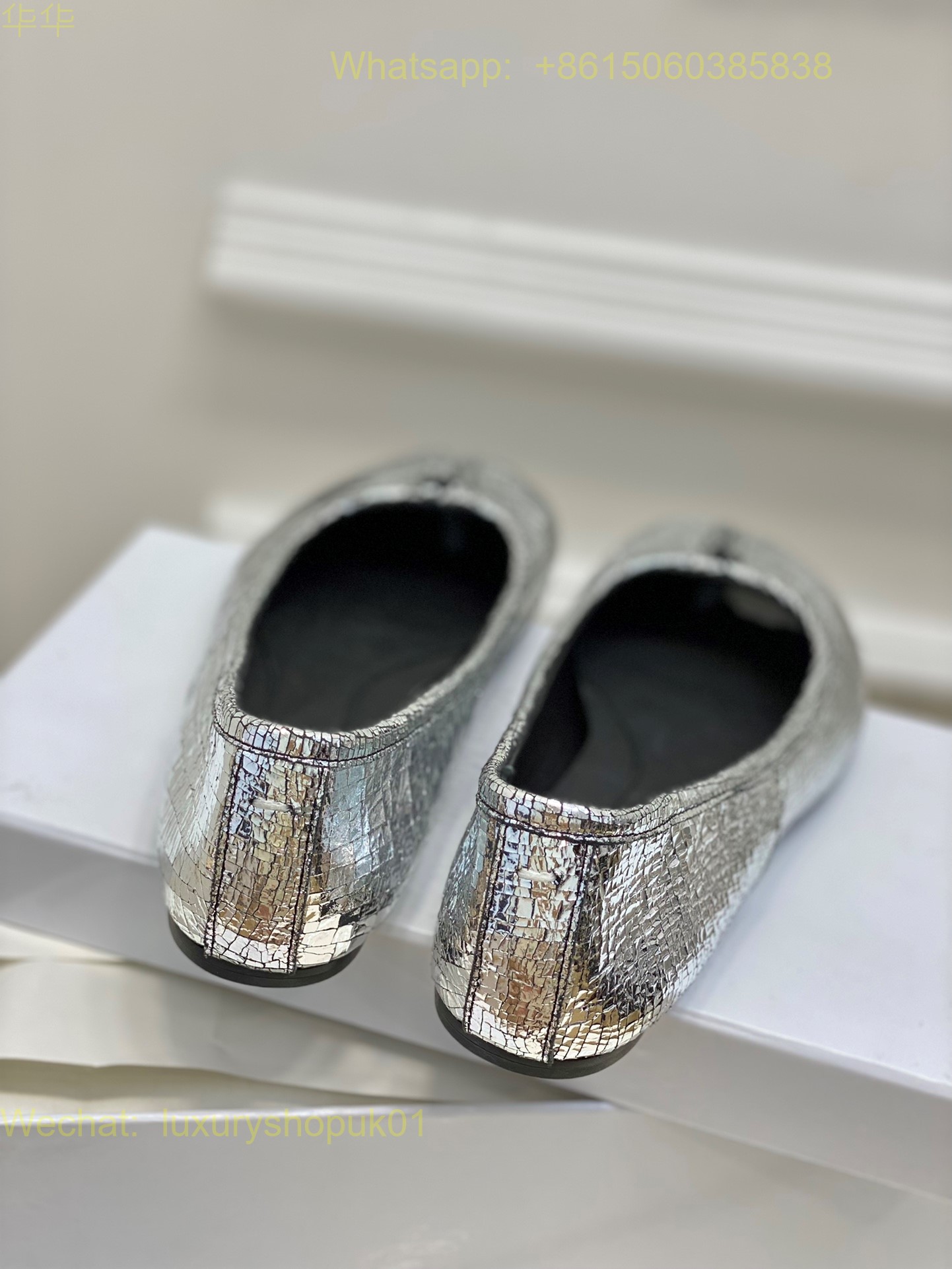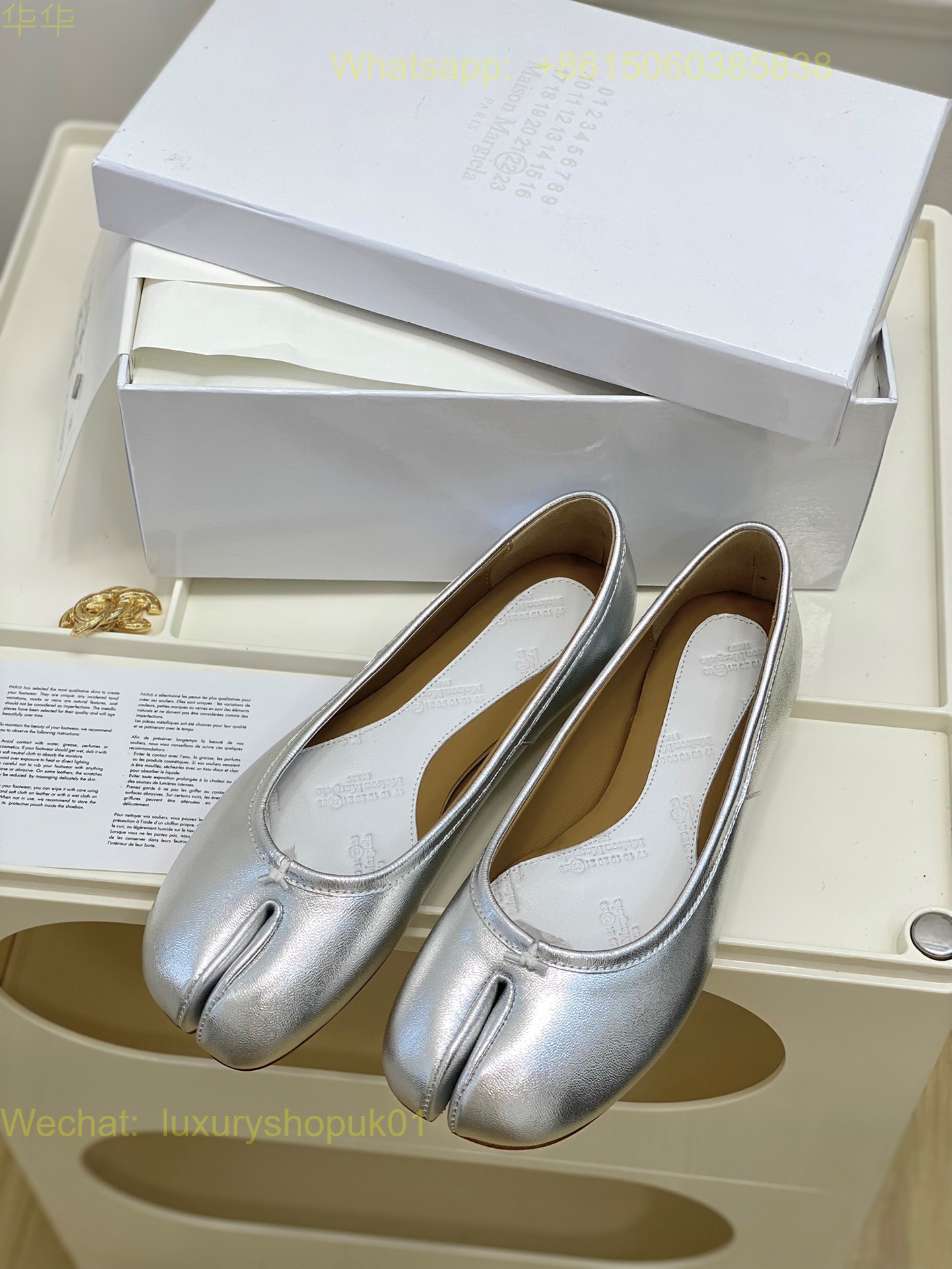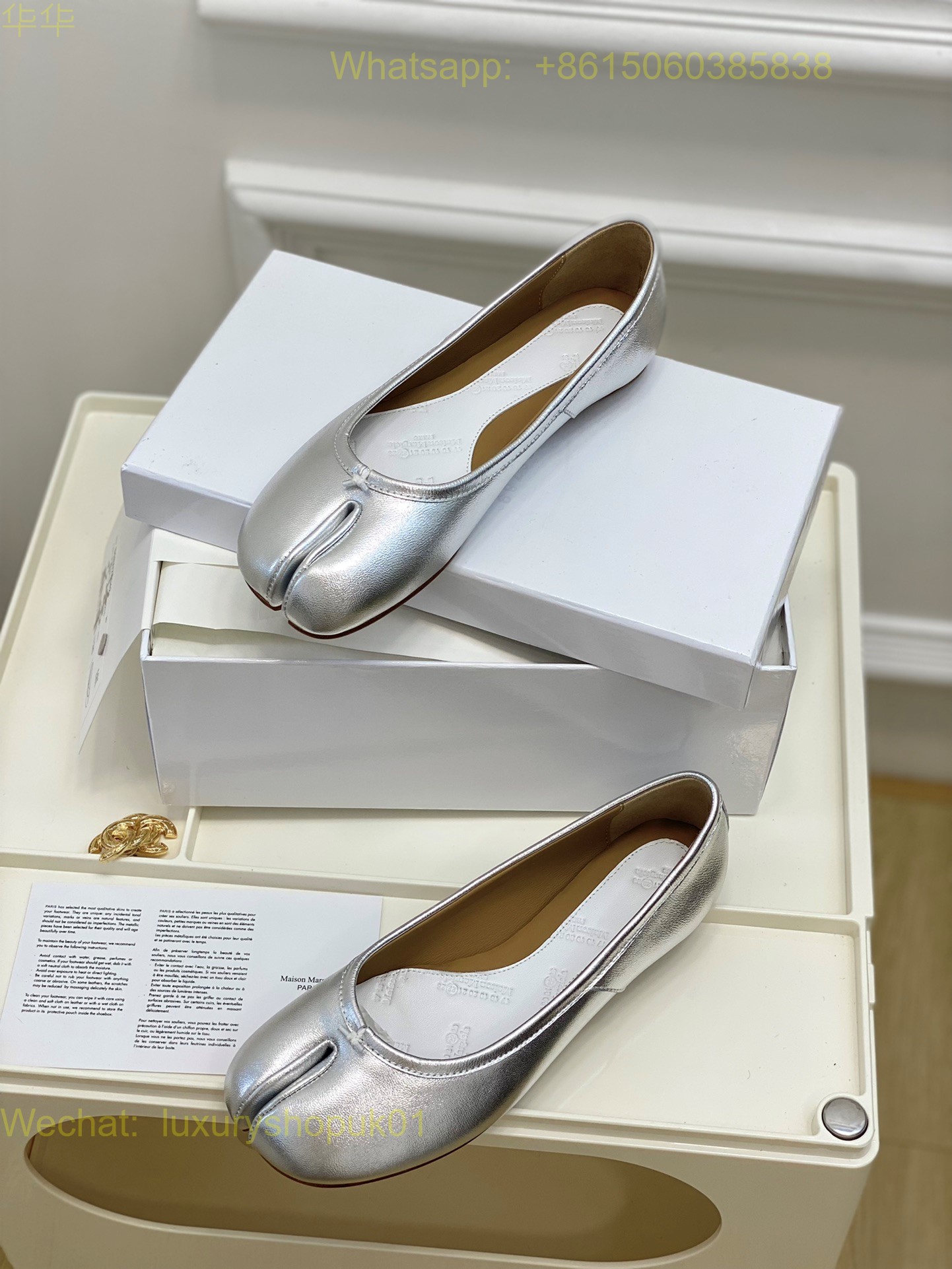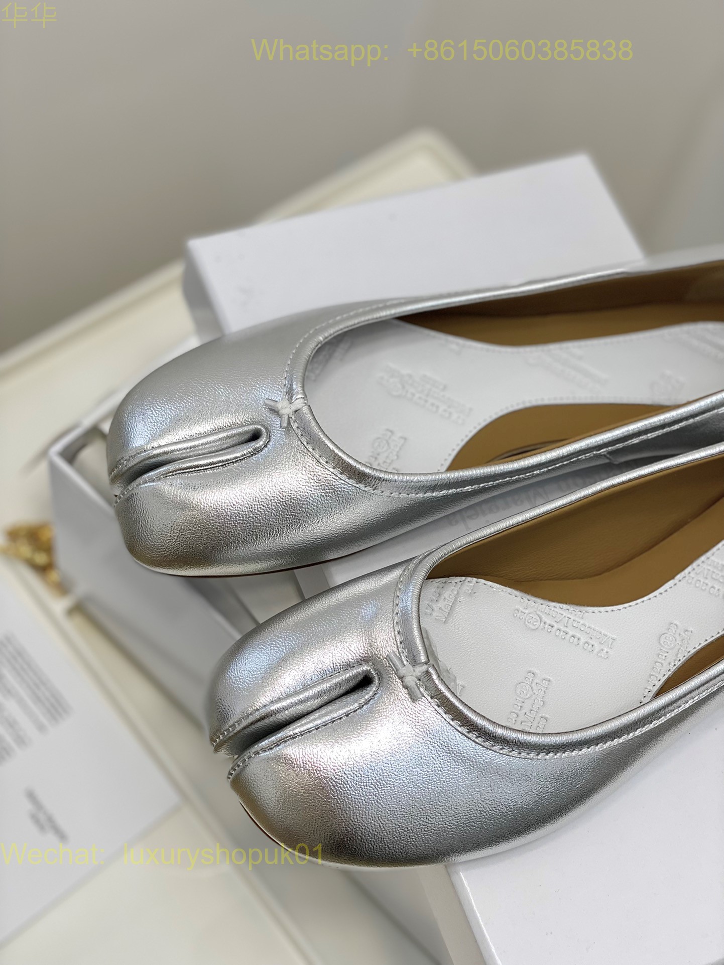 MM6 Maison Margiela tabi stitch-out silver leather ballerina shoes Women Flat Shoes