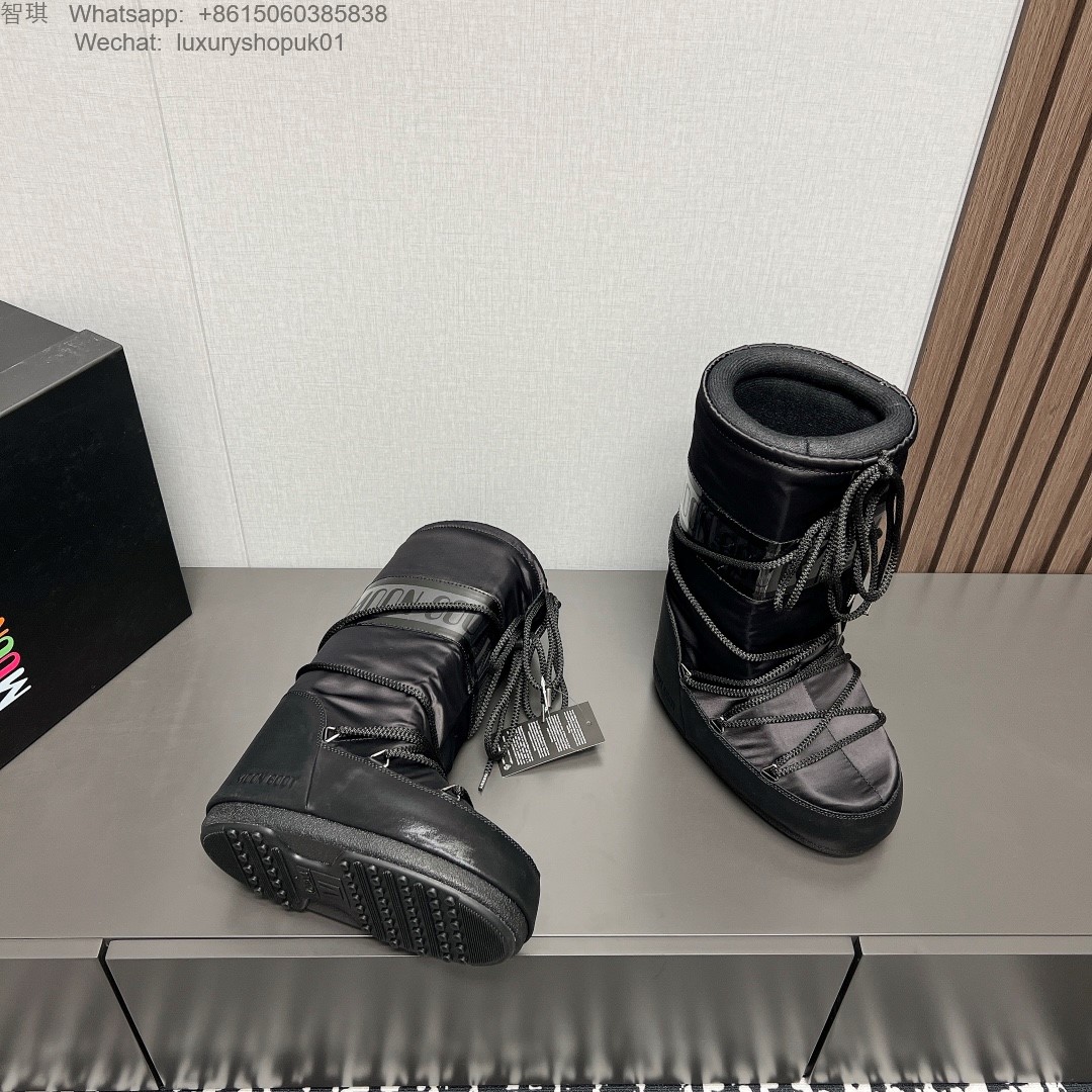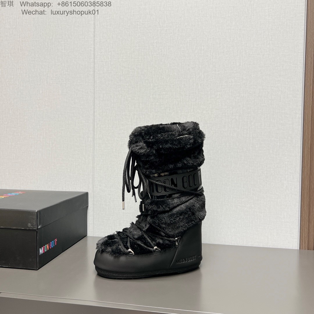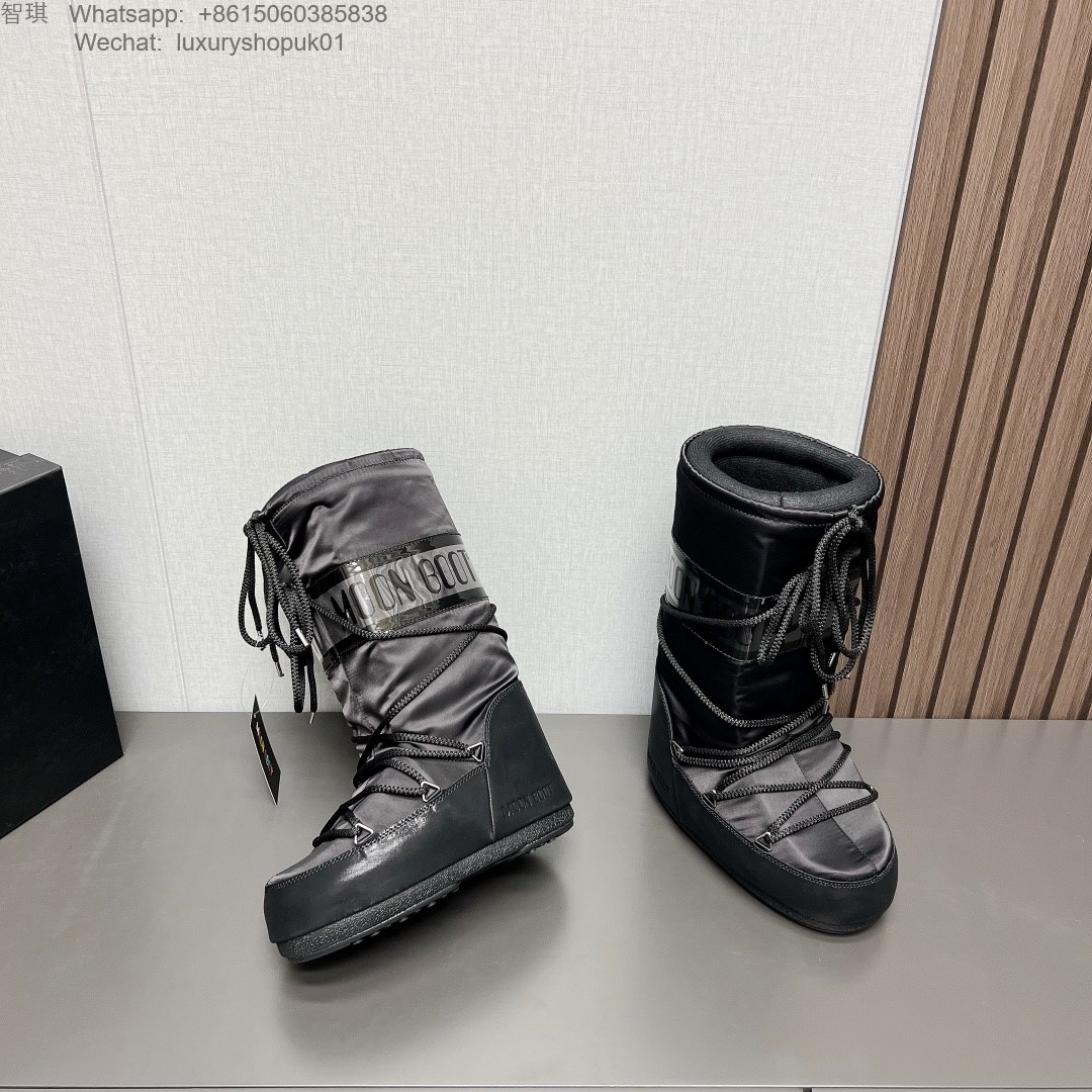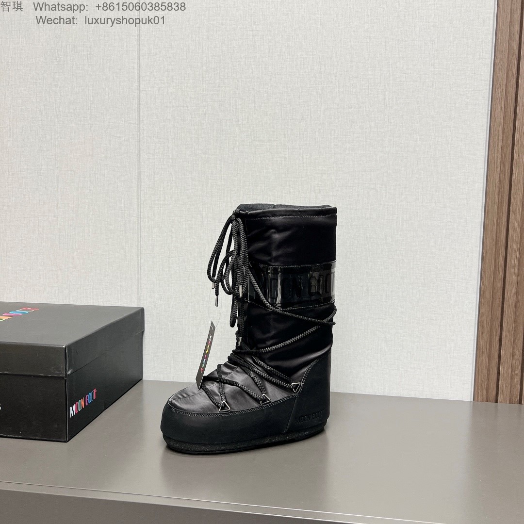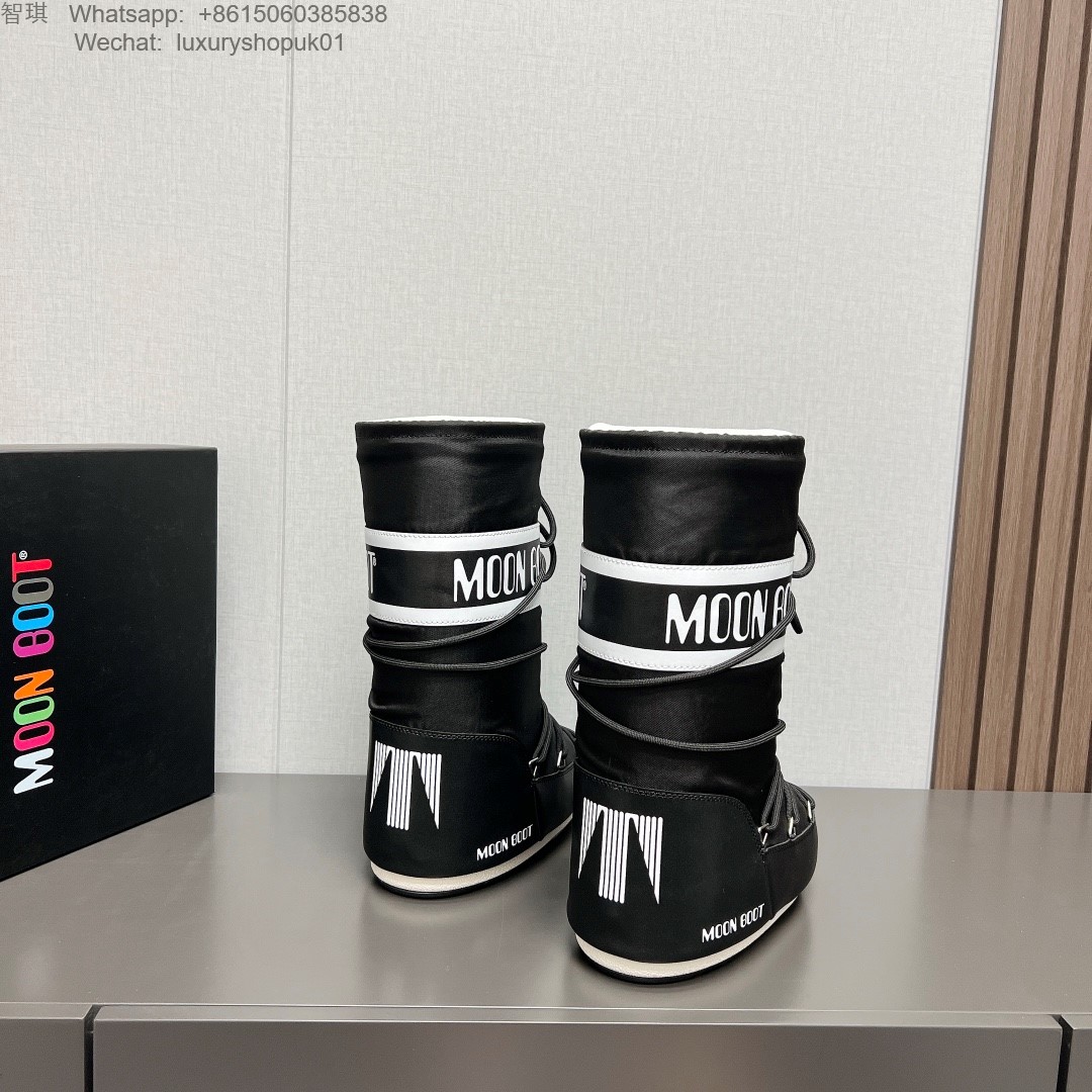 Moon Boot Shearling Fur Icon Glance Satin Nylon Lace-Up Women Snow Boots