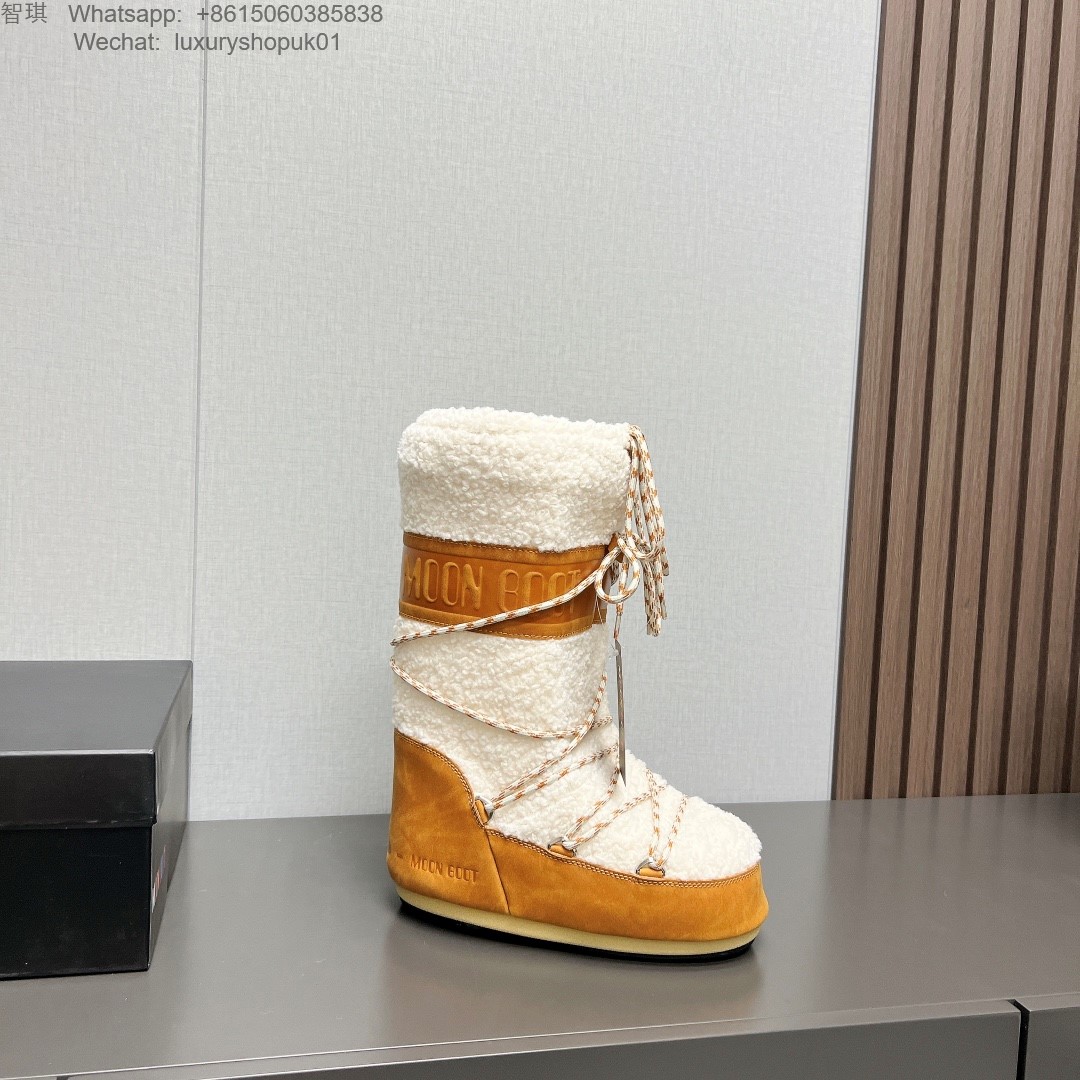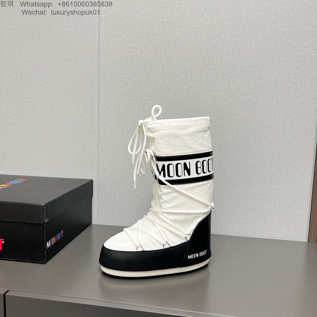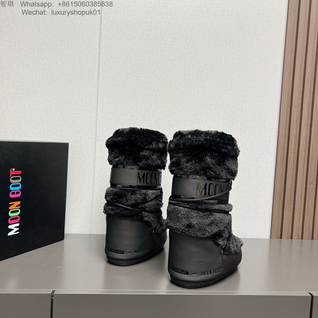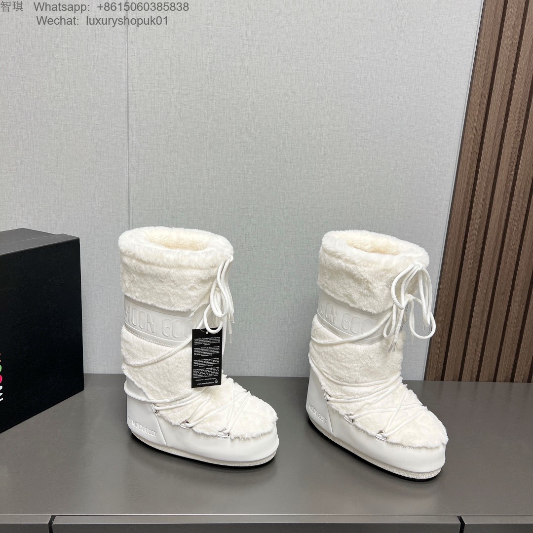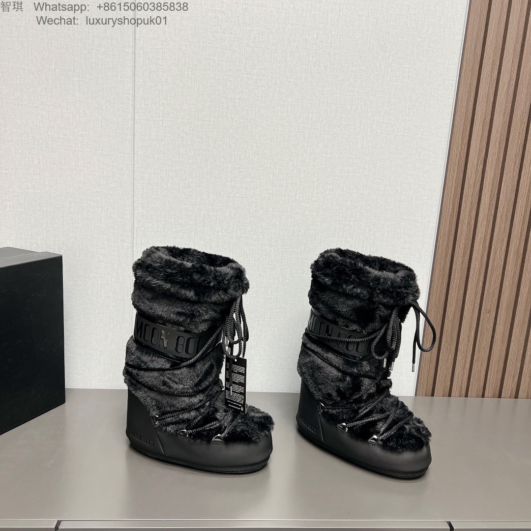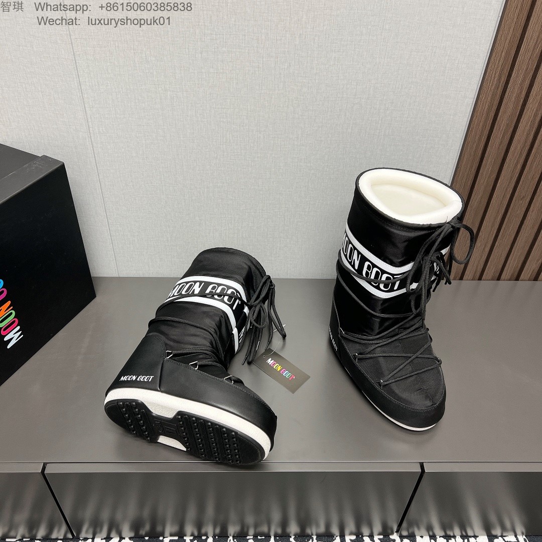 Moon Boot Shearling Fur Icon Glance Satin Nylon Lace-Up Women Snow Boots