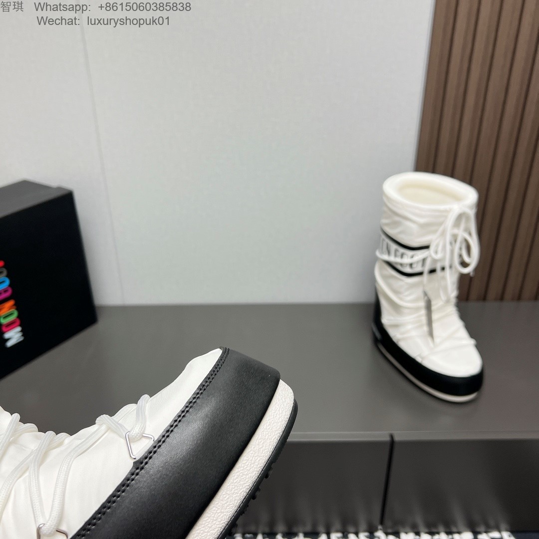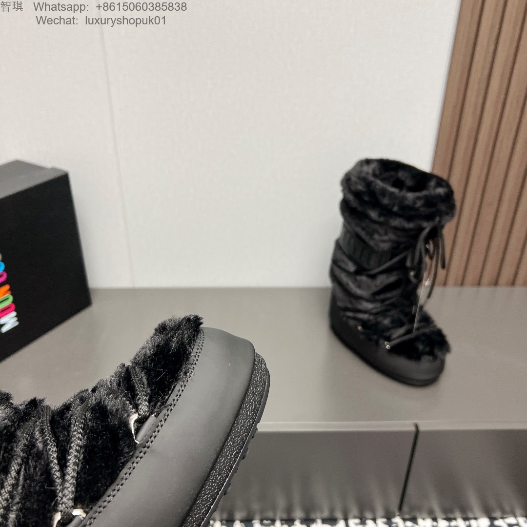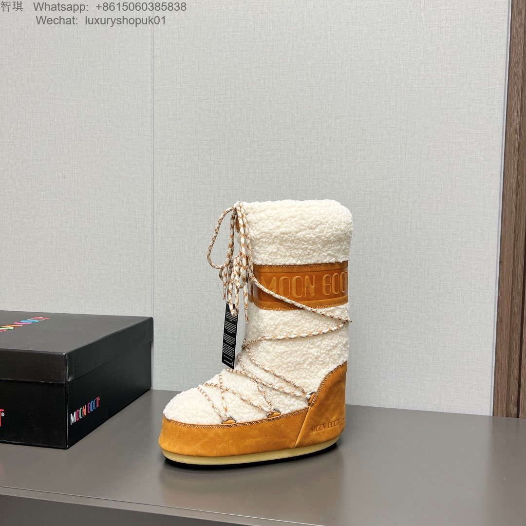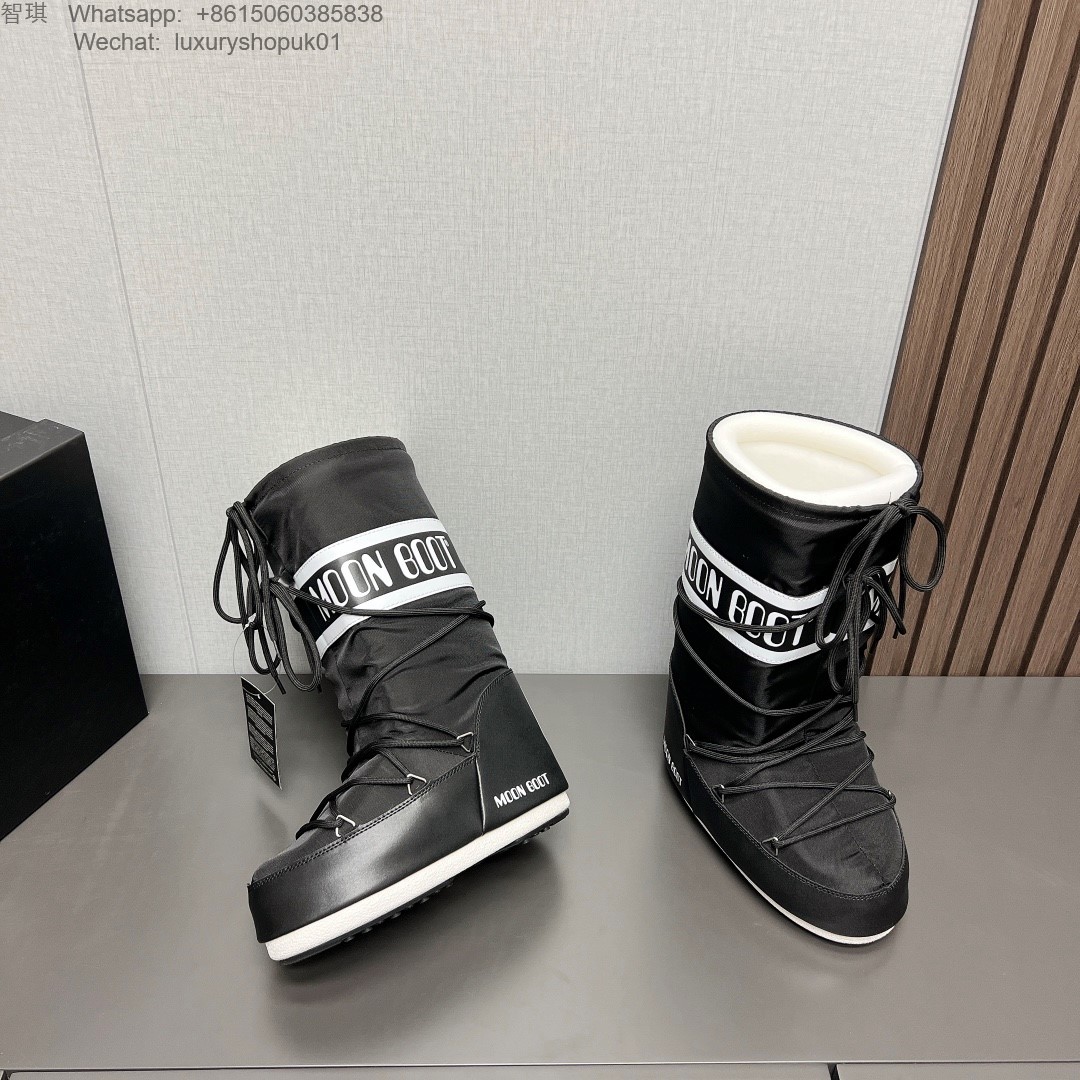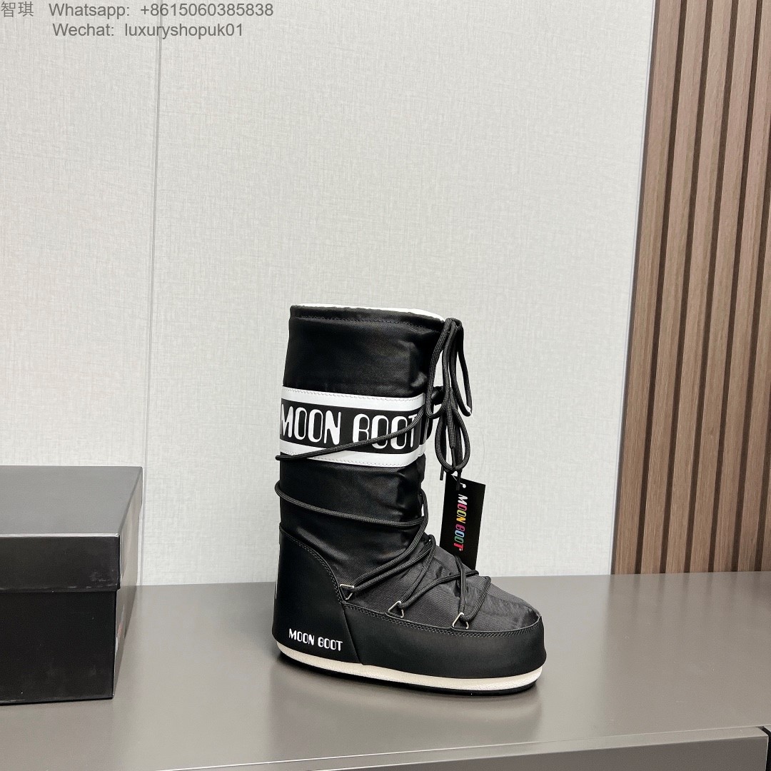 Moon Boot Shearling Fur Icon Glance Satin Nylon Lace-Up Women Snow Boots