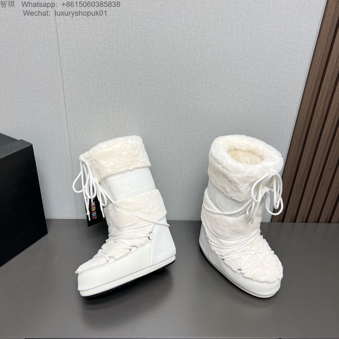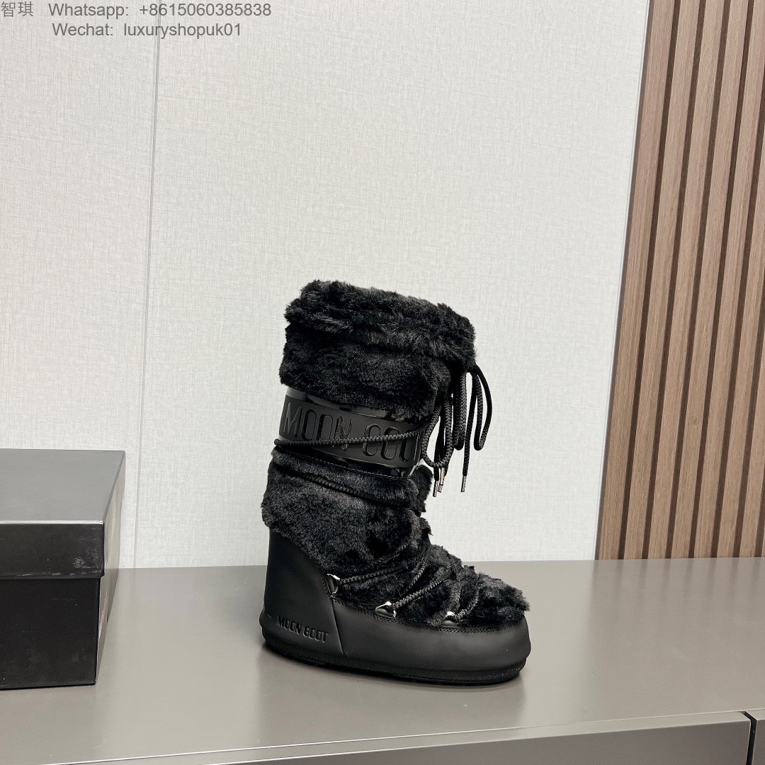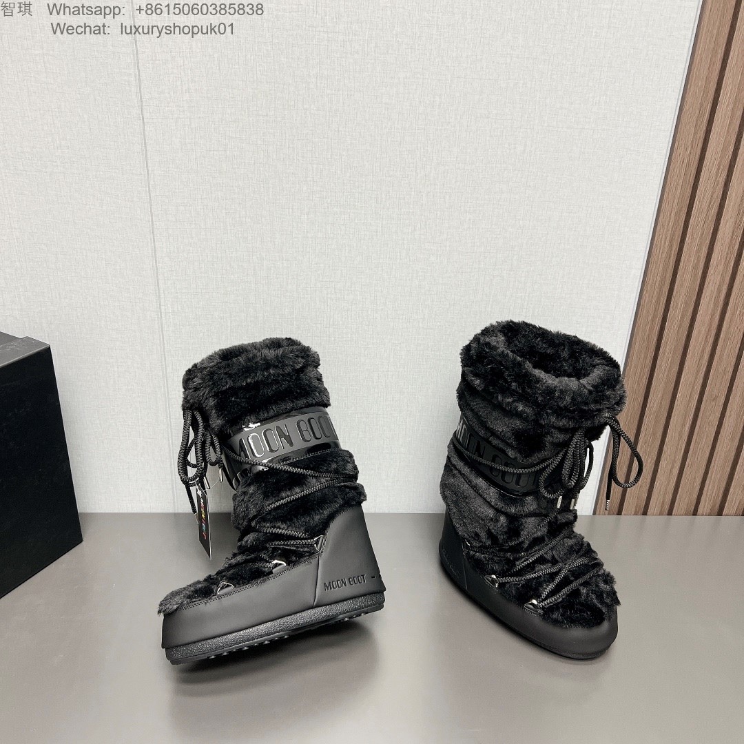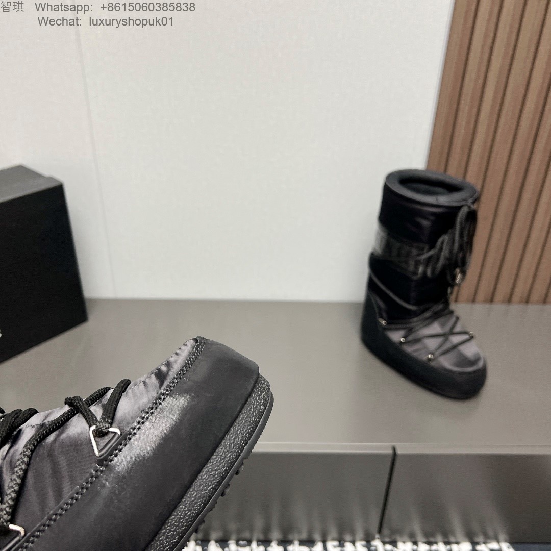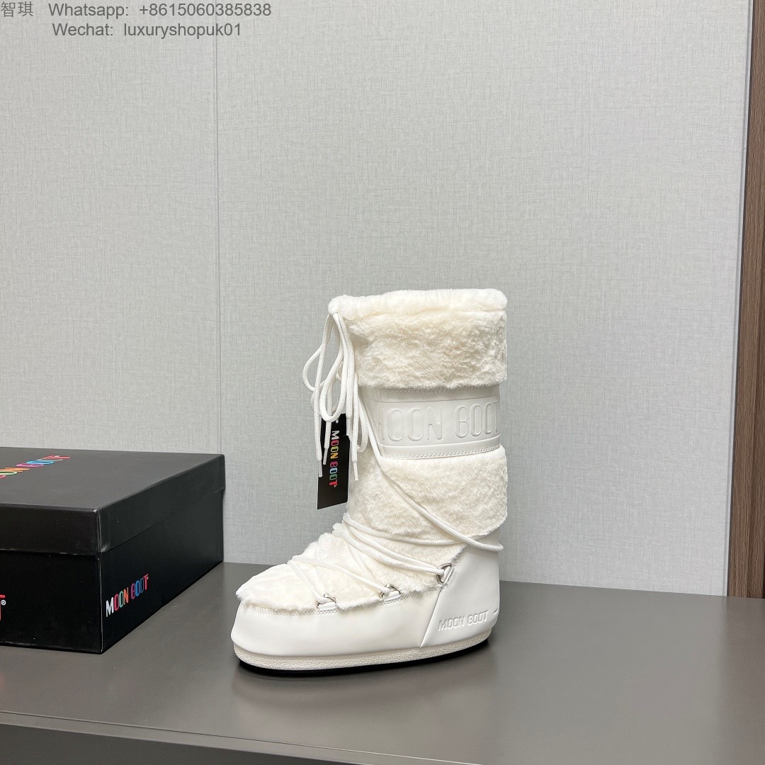 Moon Boot Shearling Fur Icon Glance Satin Nylon Lace-Up Women Snow Boots