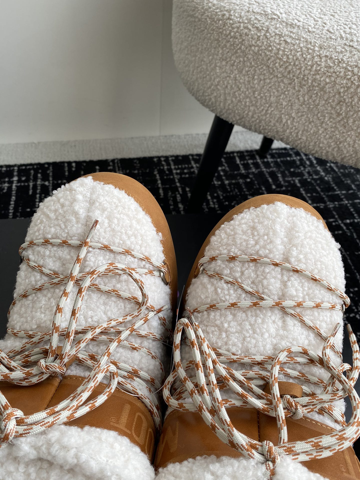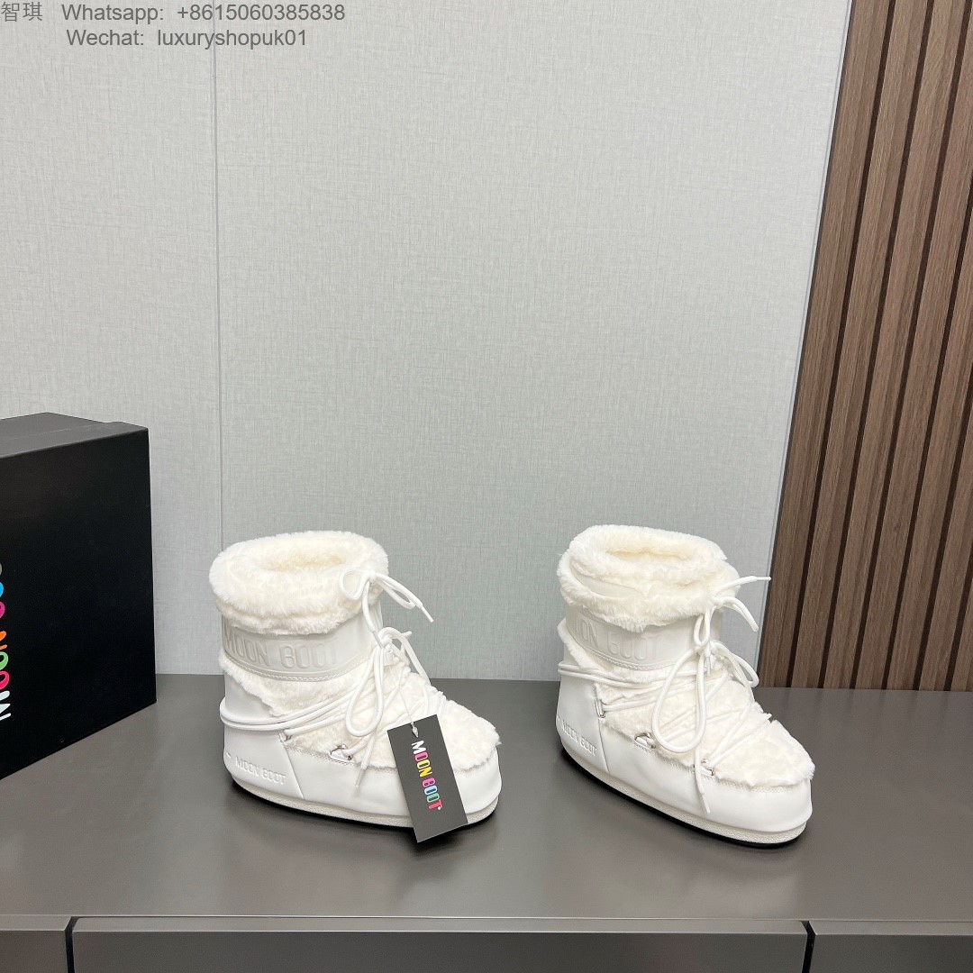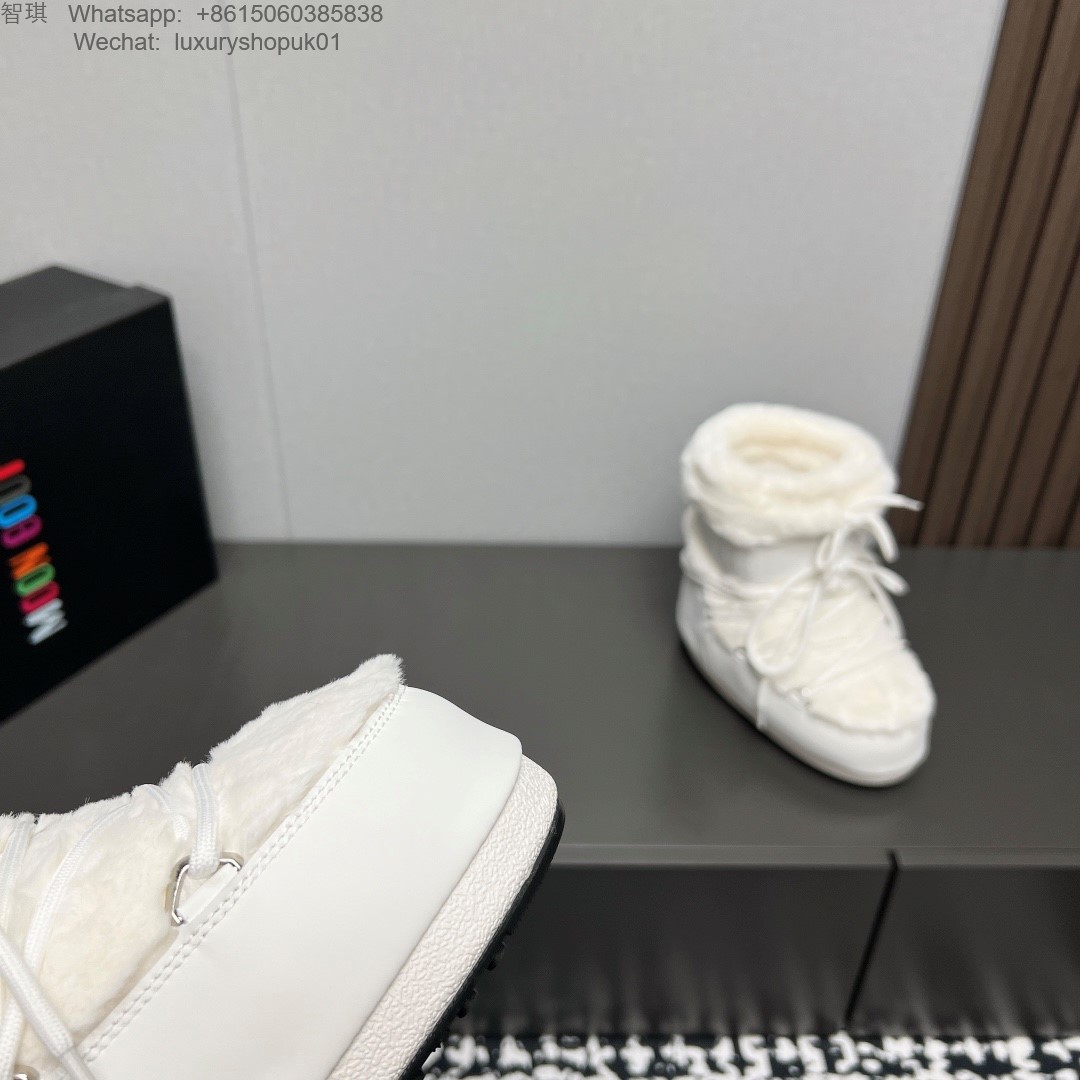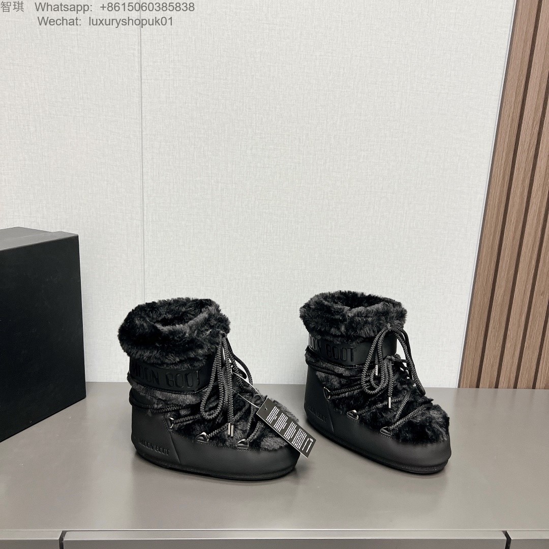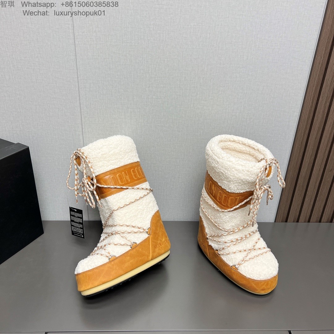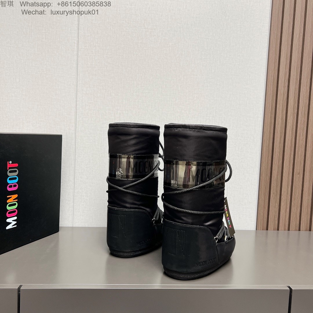 Moon Boot Shearling Fur Icon Glance Satin Nylon Lace-Up Women Snow Boots