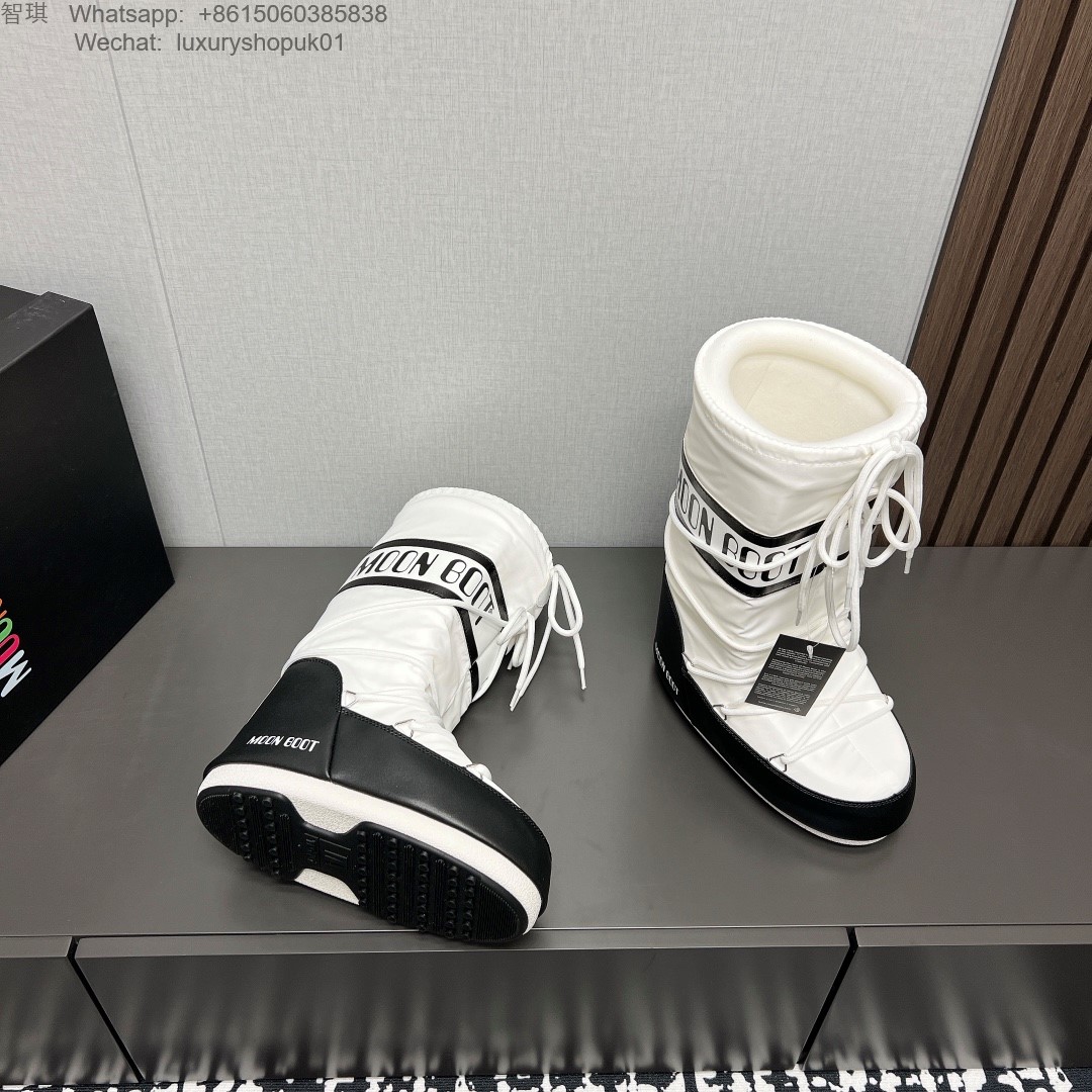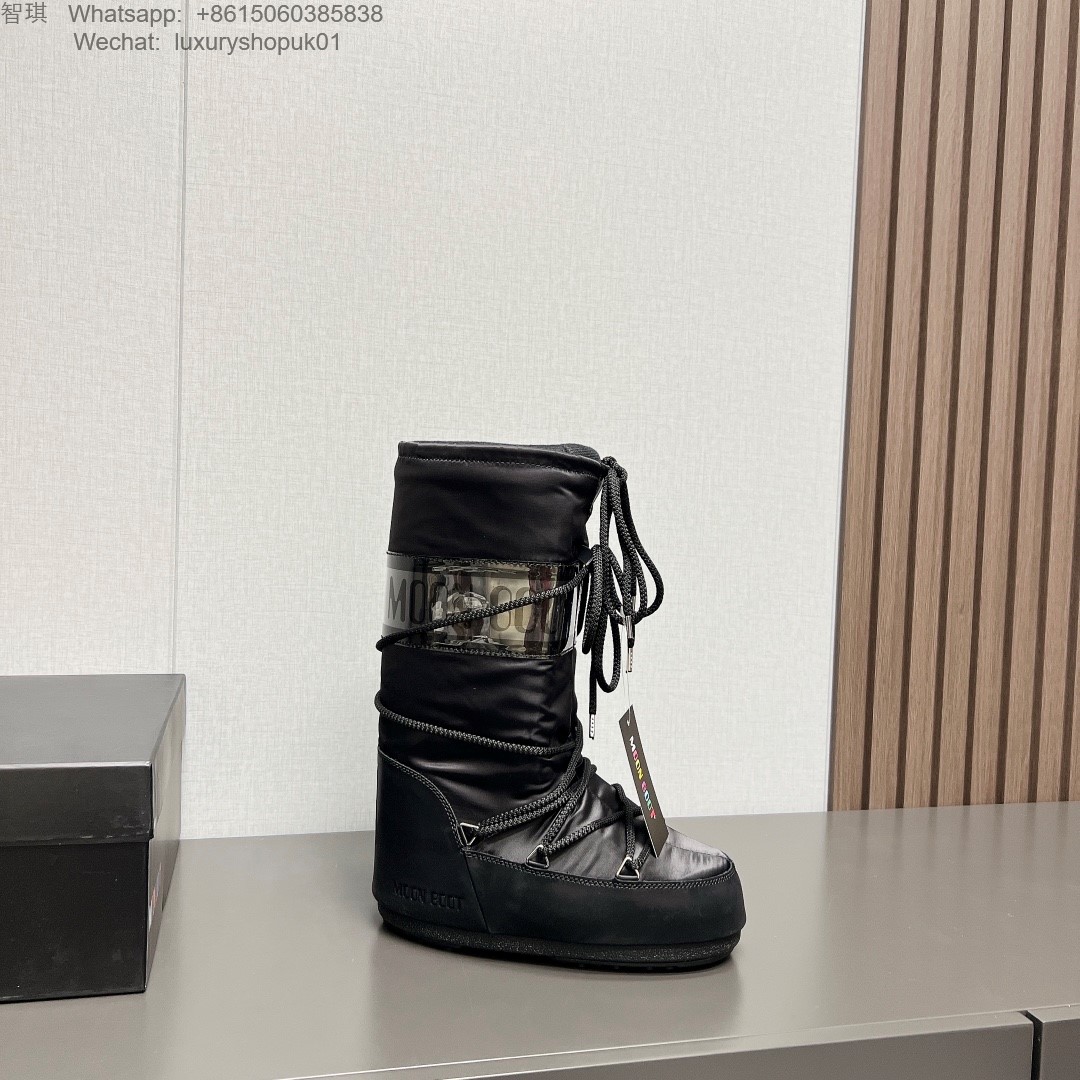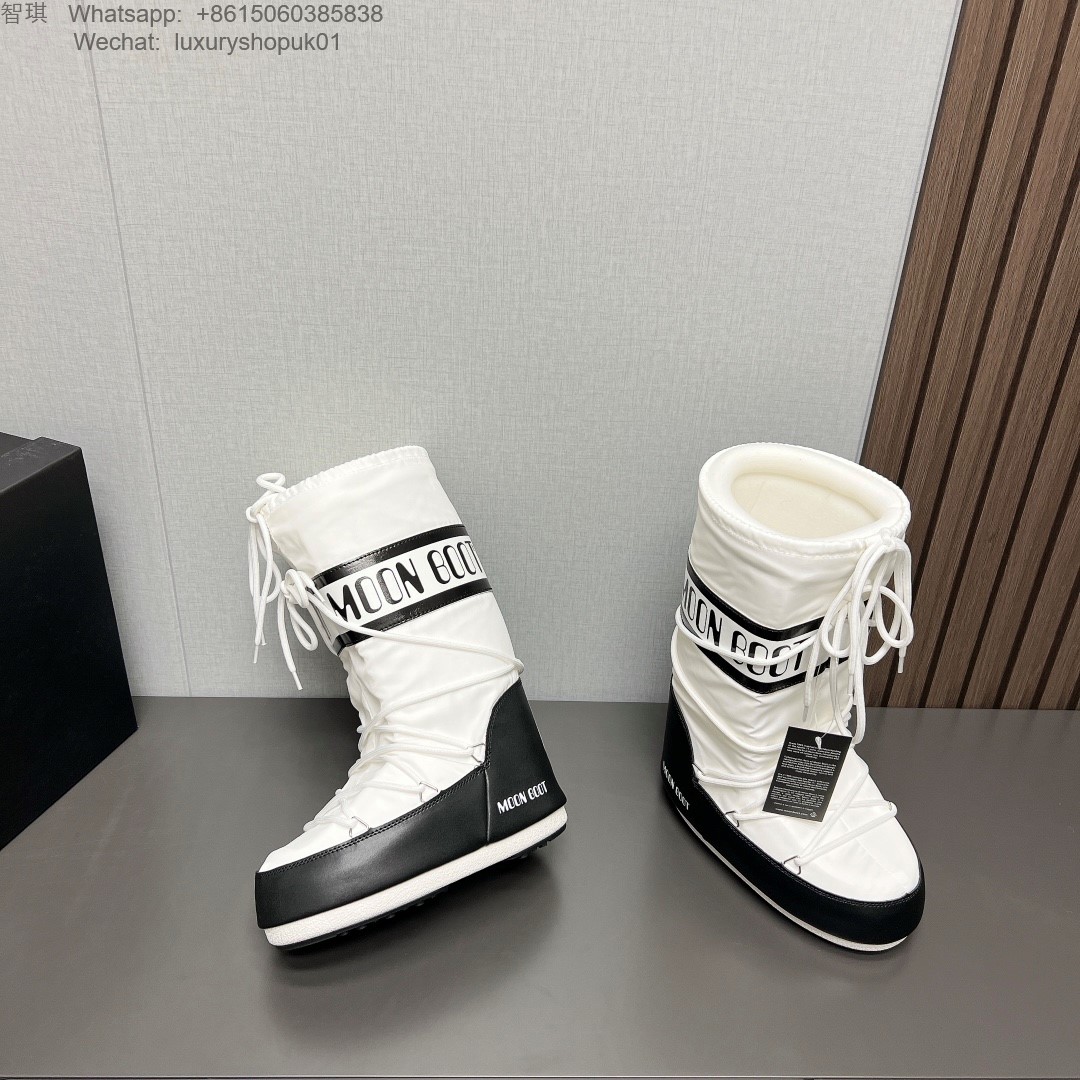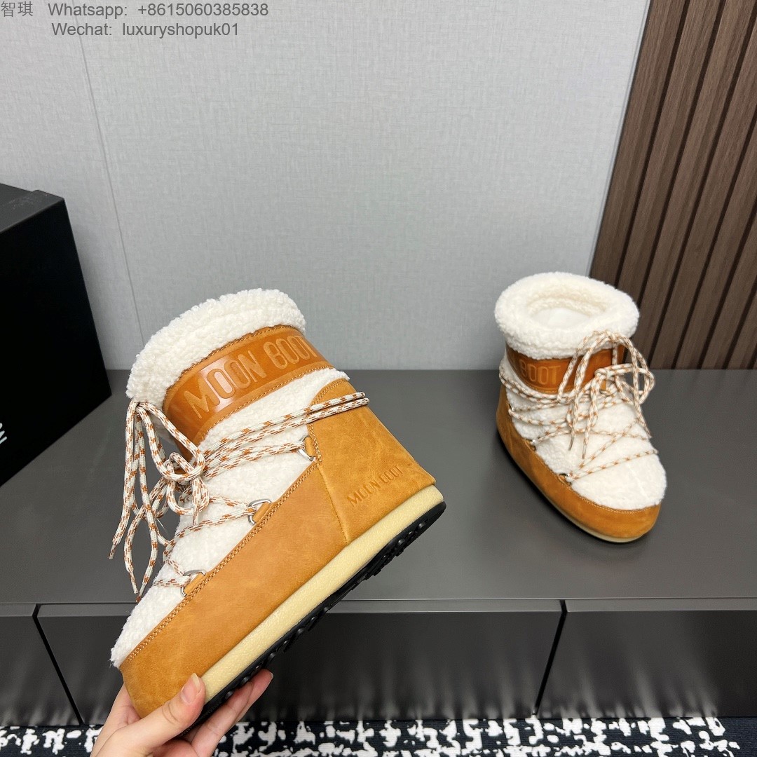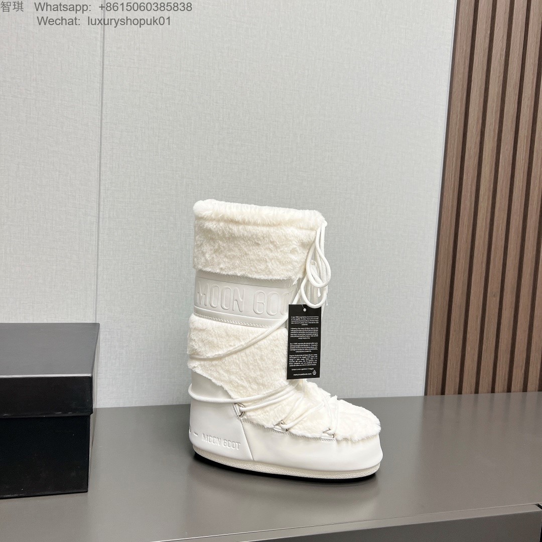 Moon Boot Shearling Fur Icon Glance Satin Nylon Lace-Up Women Snow Boots