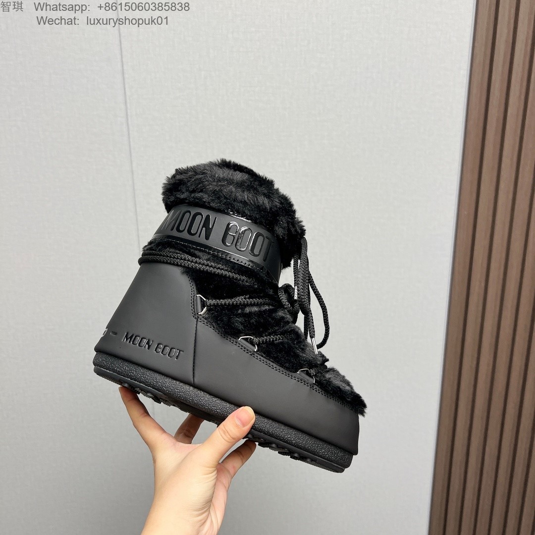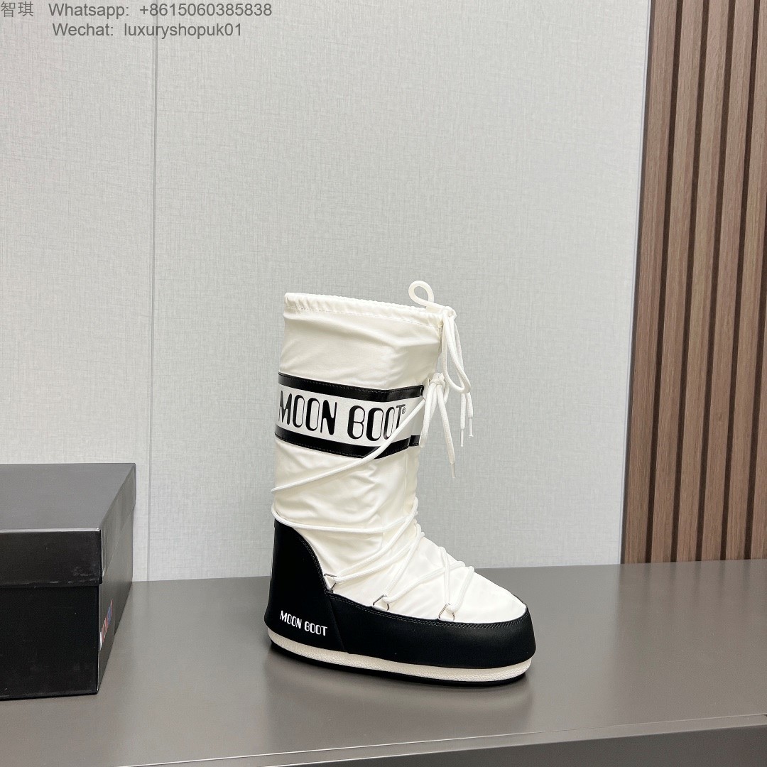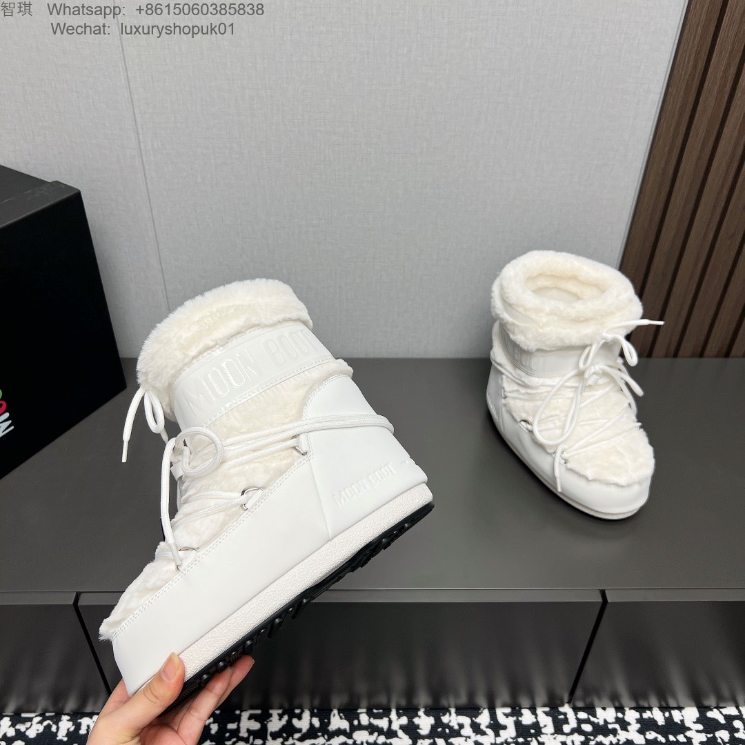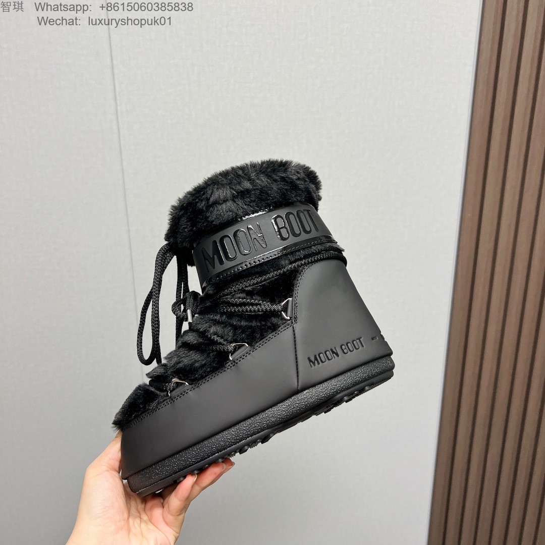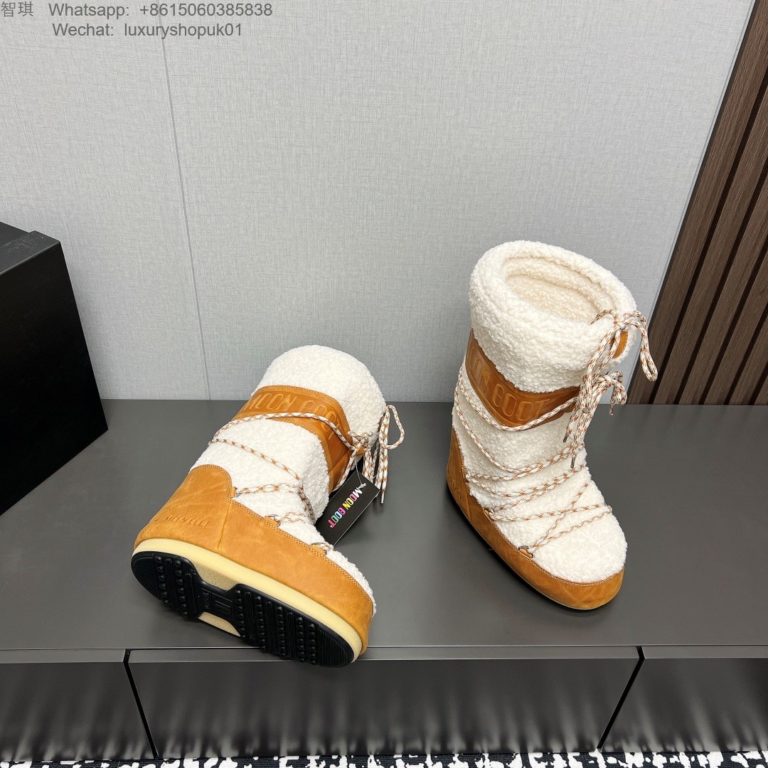 Moon Boot Shearling Fur Icon Glance Satin Nylon Lace-Up Women Snow Boots