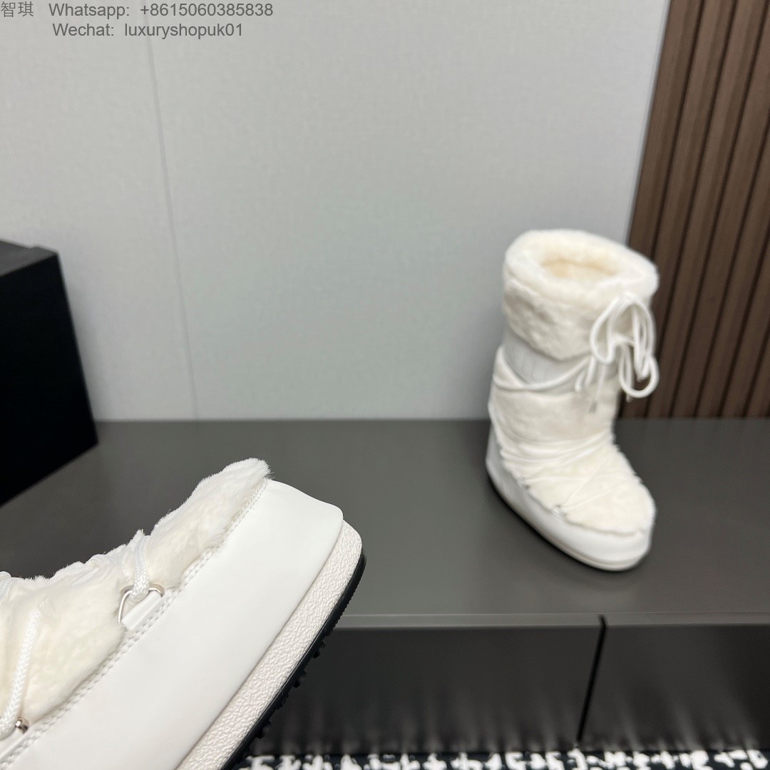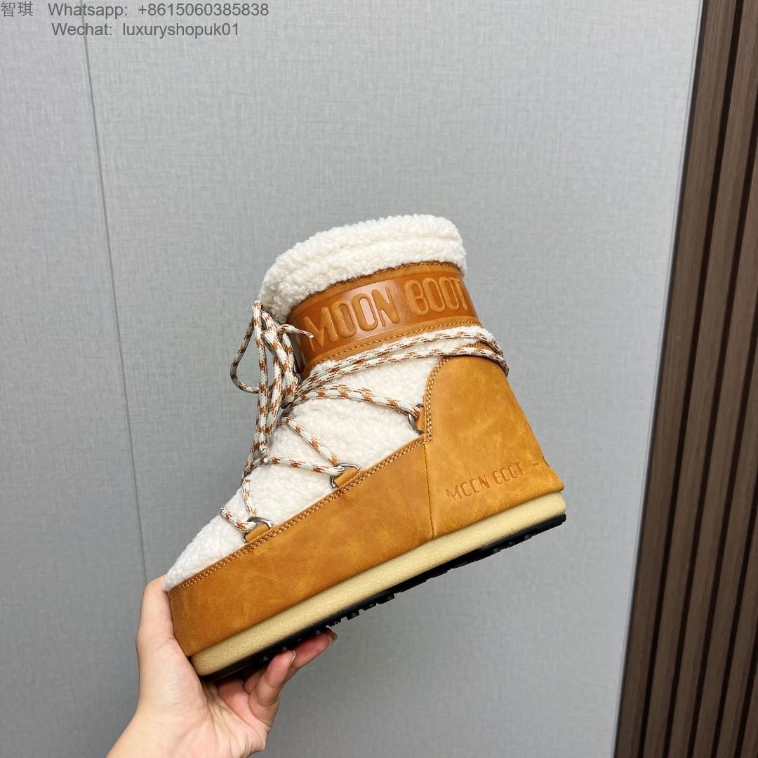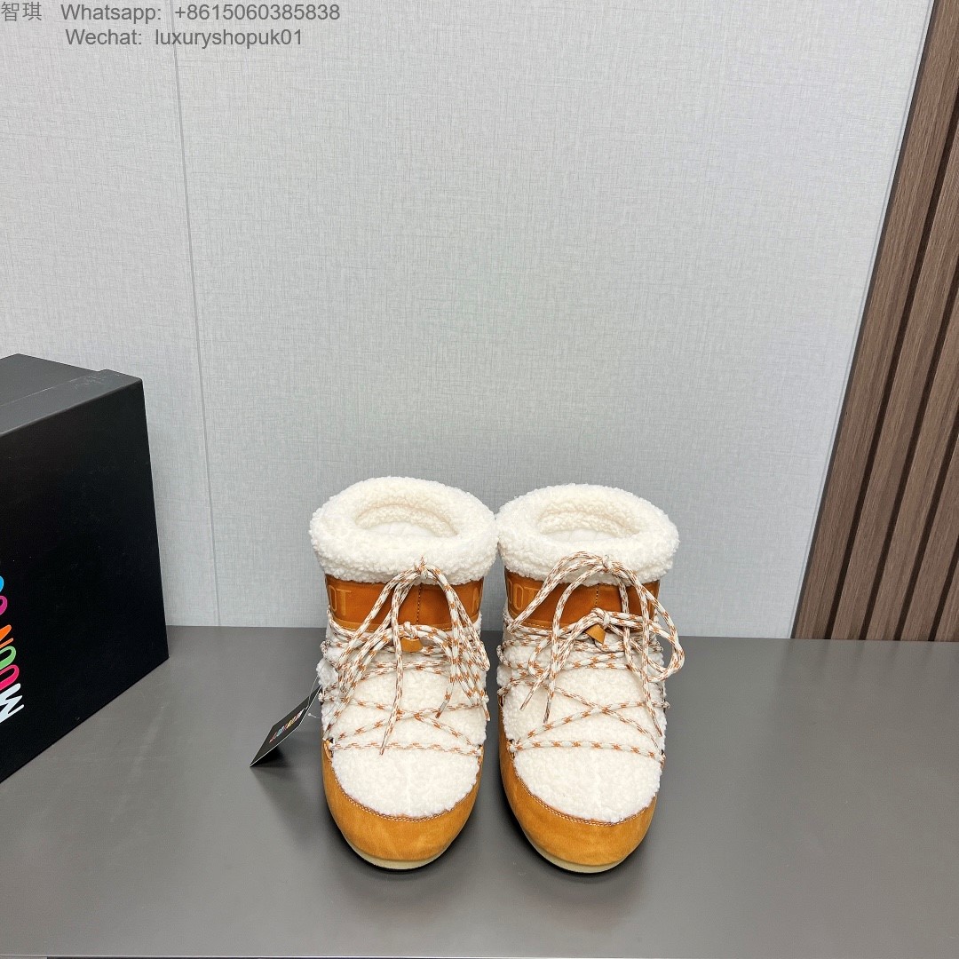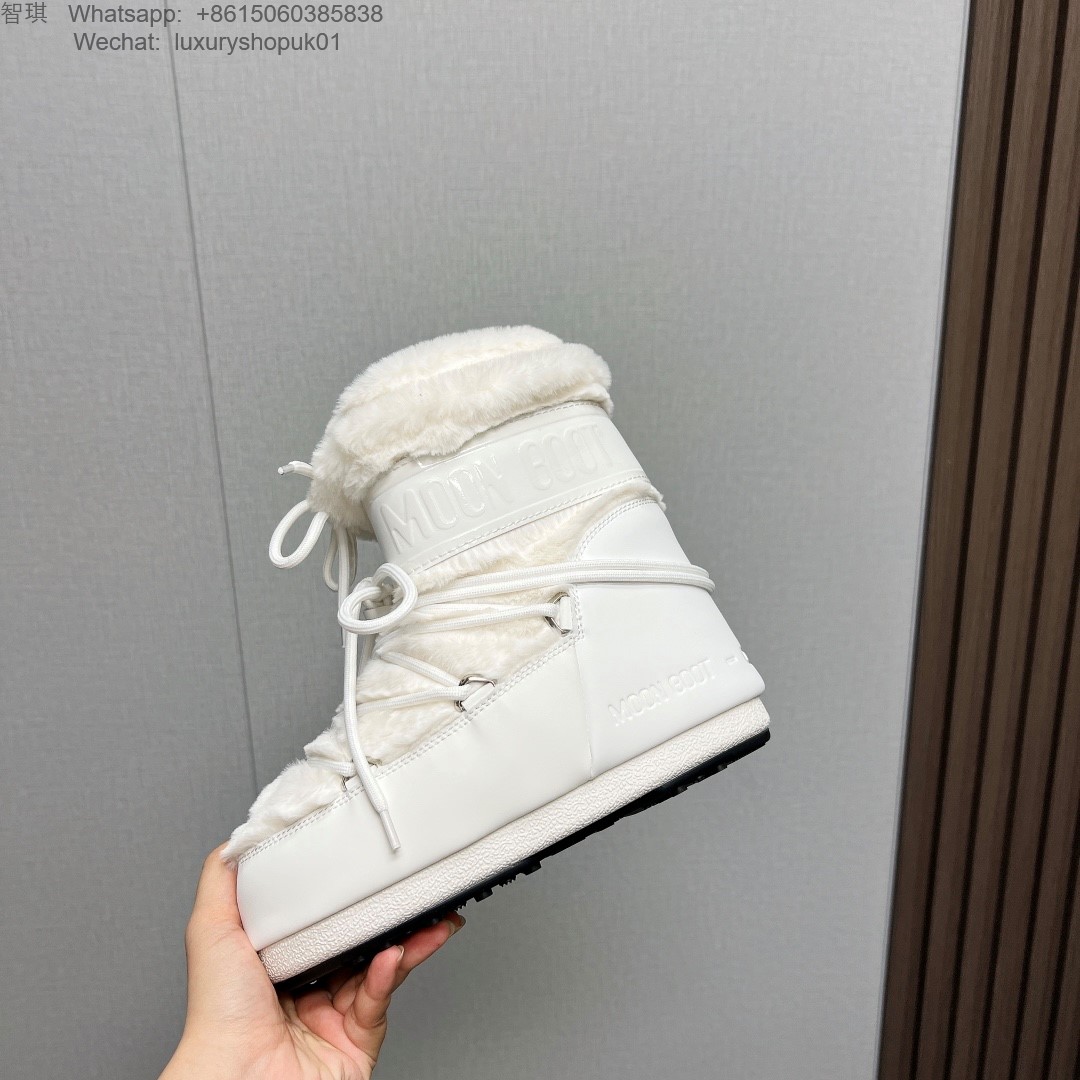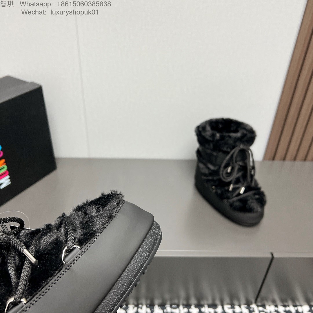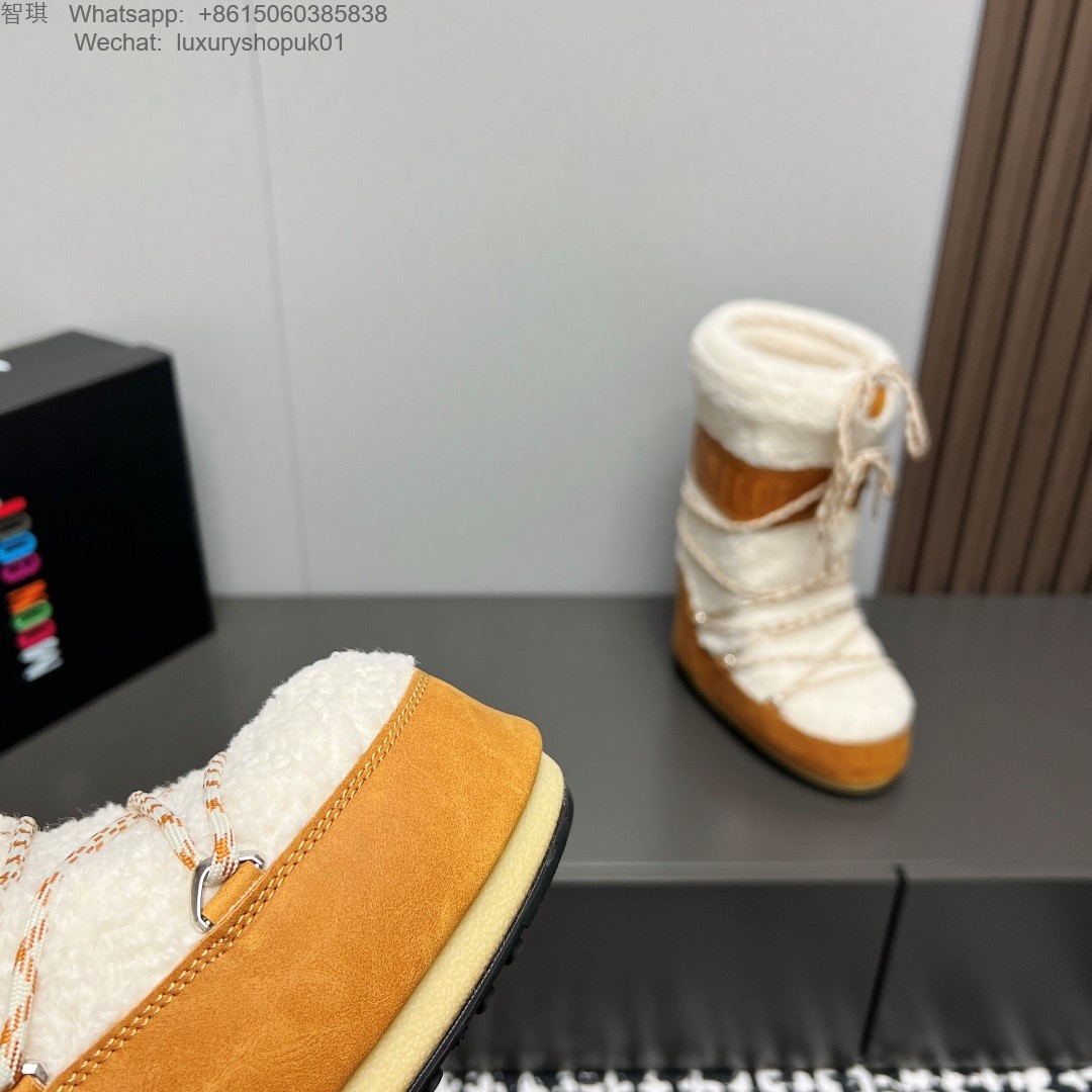 Moon Boot Shearling Fur Icon Glance Satin Nylon Lace-Up Women Snow Boots