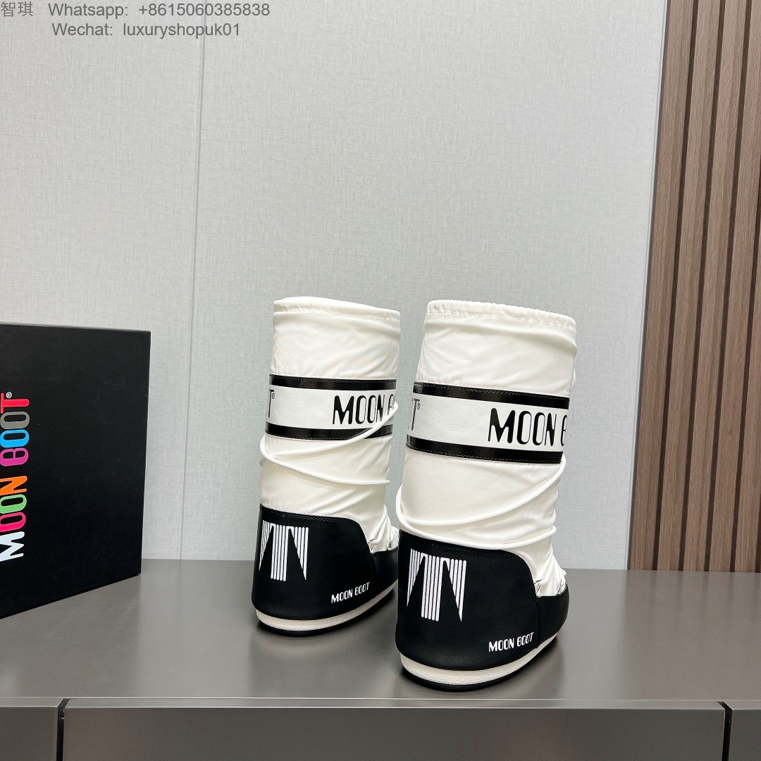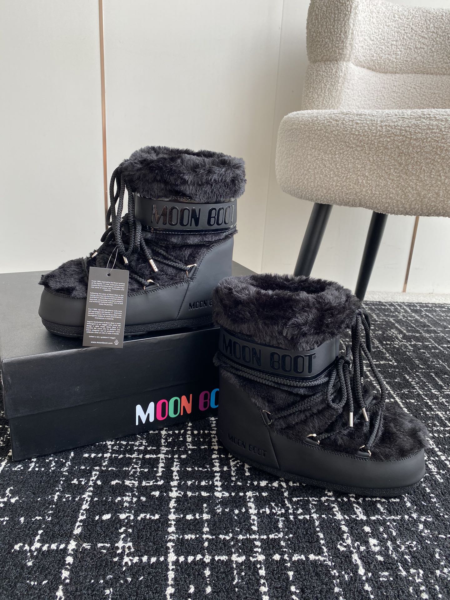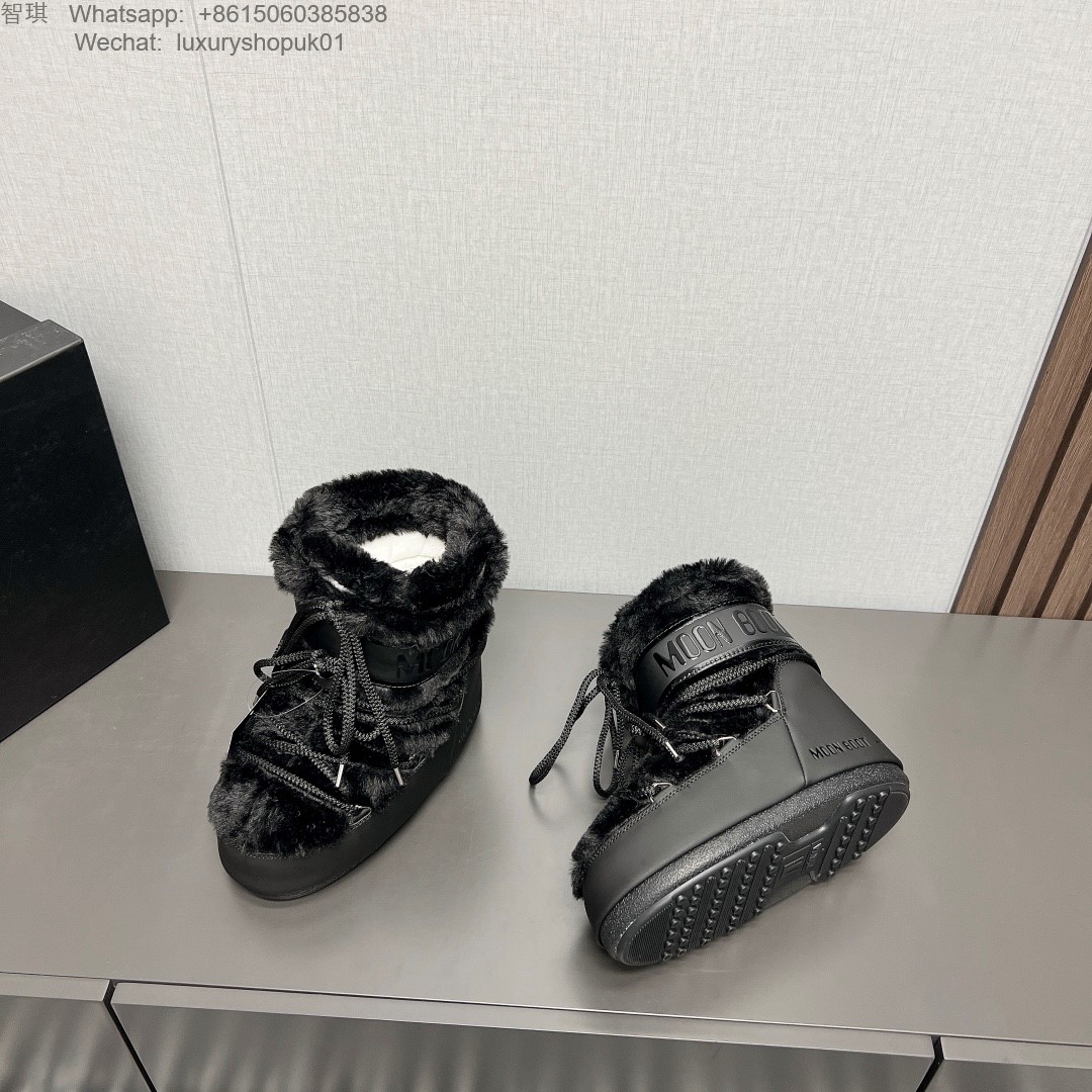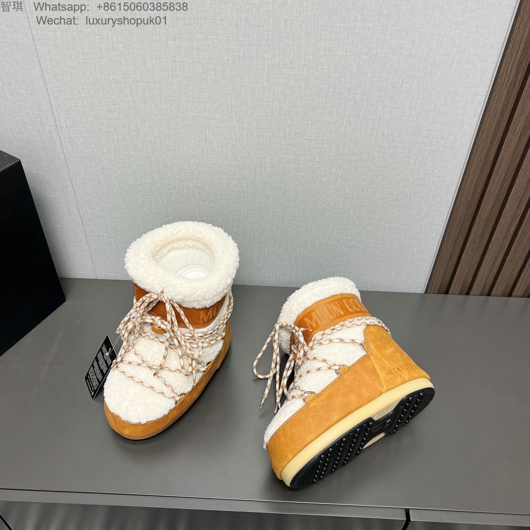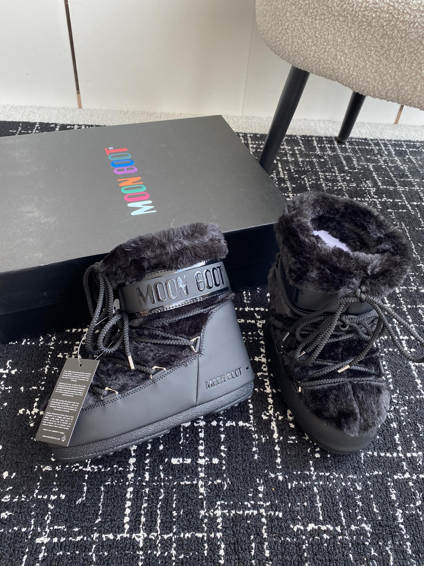 Moon Boot Shearling Fur Icon Glance Satin Nylon Lace-Up Women Snow Boots