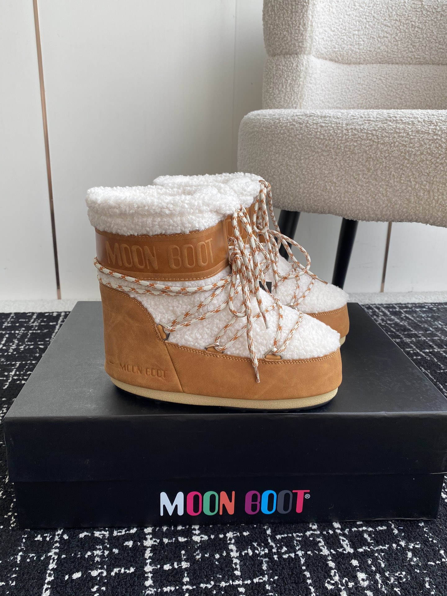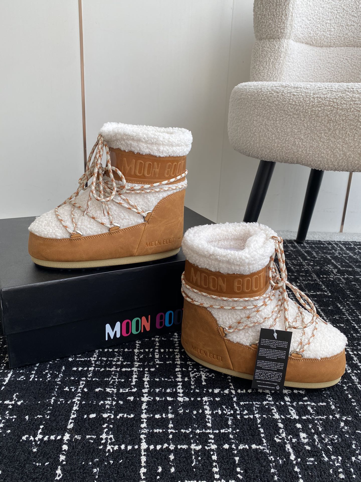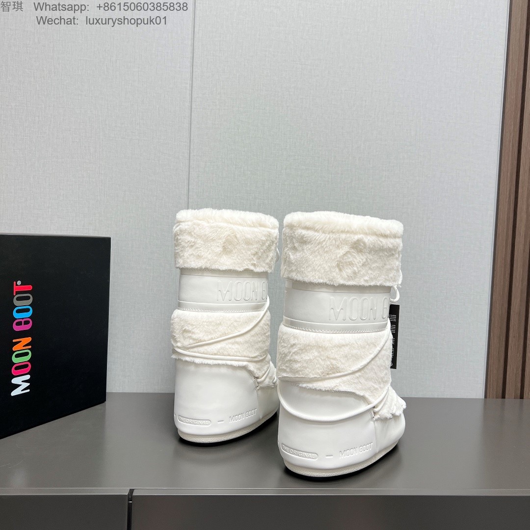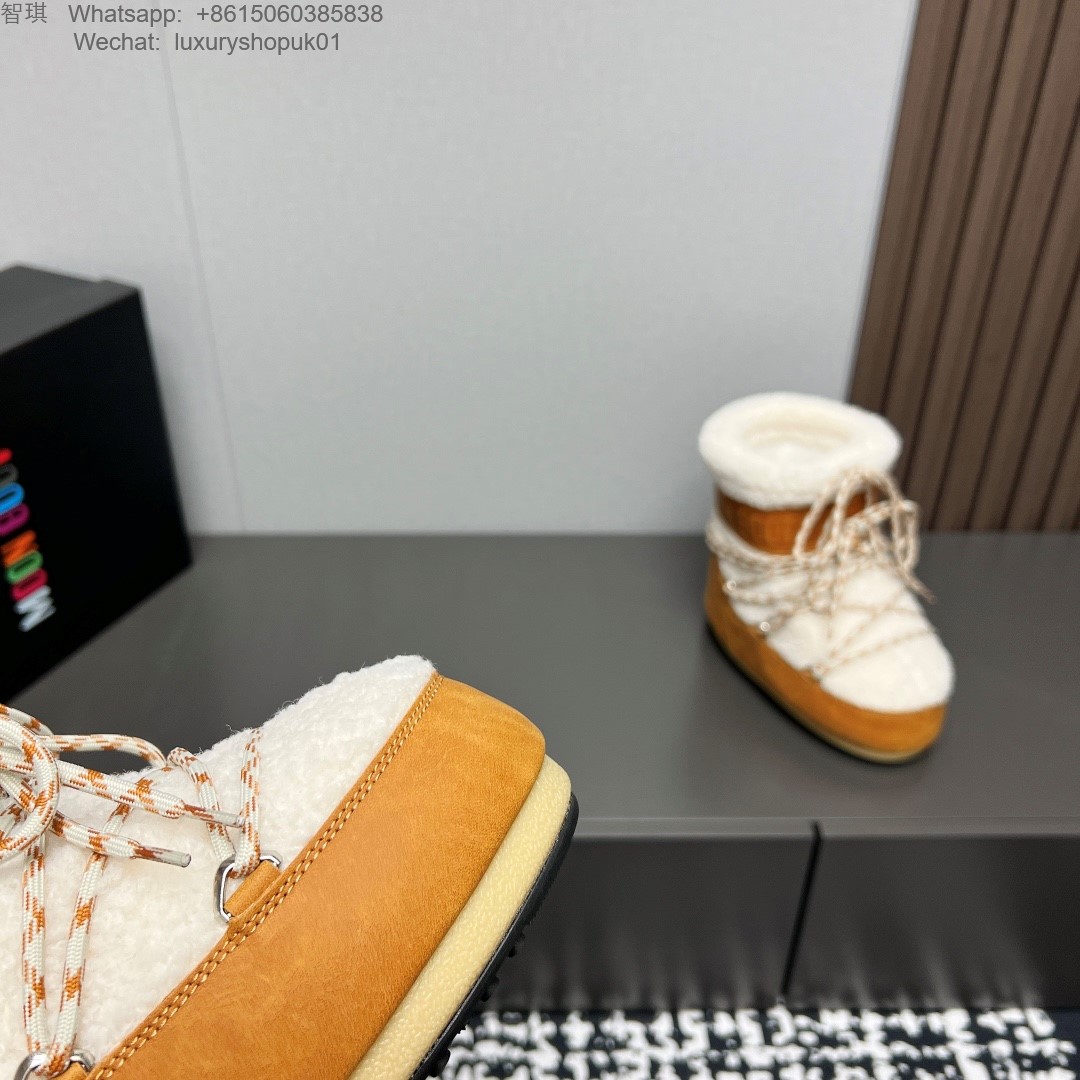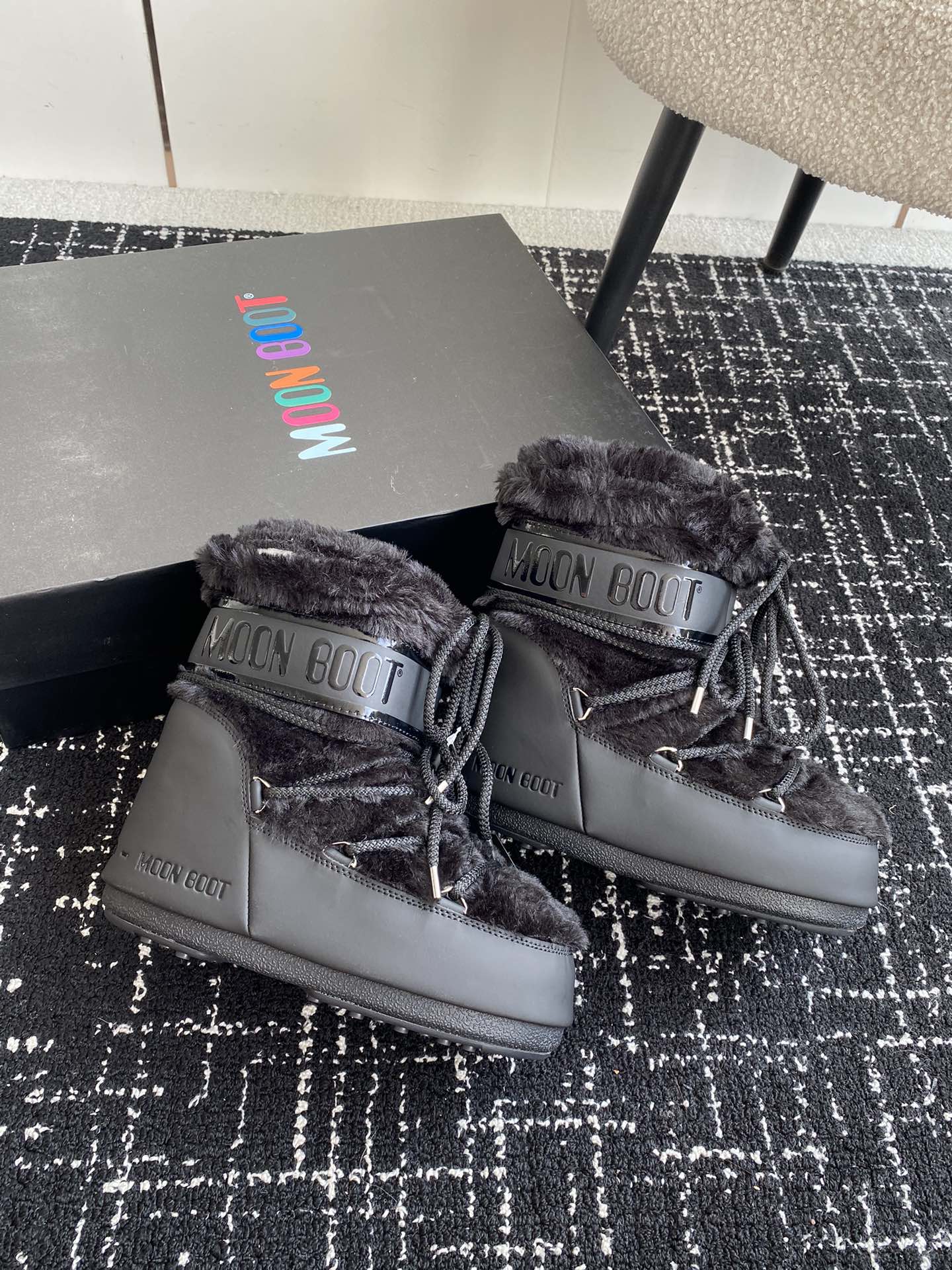 Moon Boot Shearling Fur Icon Glance Satin Nylon Lace-Up Women Snow Boots