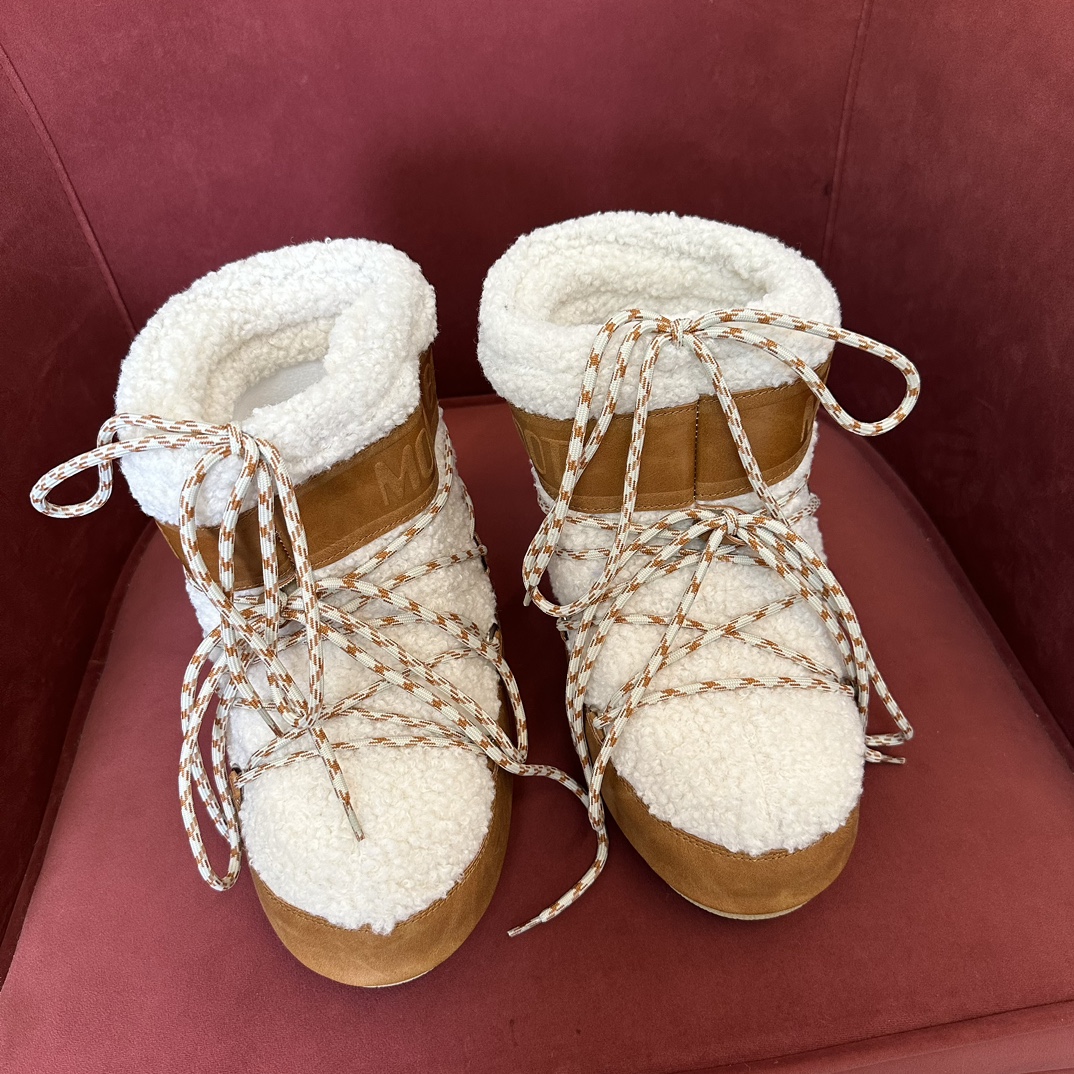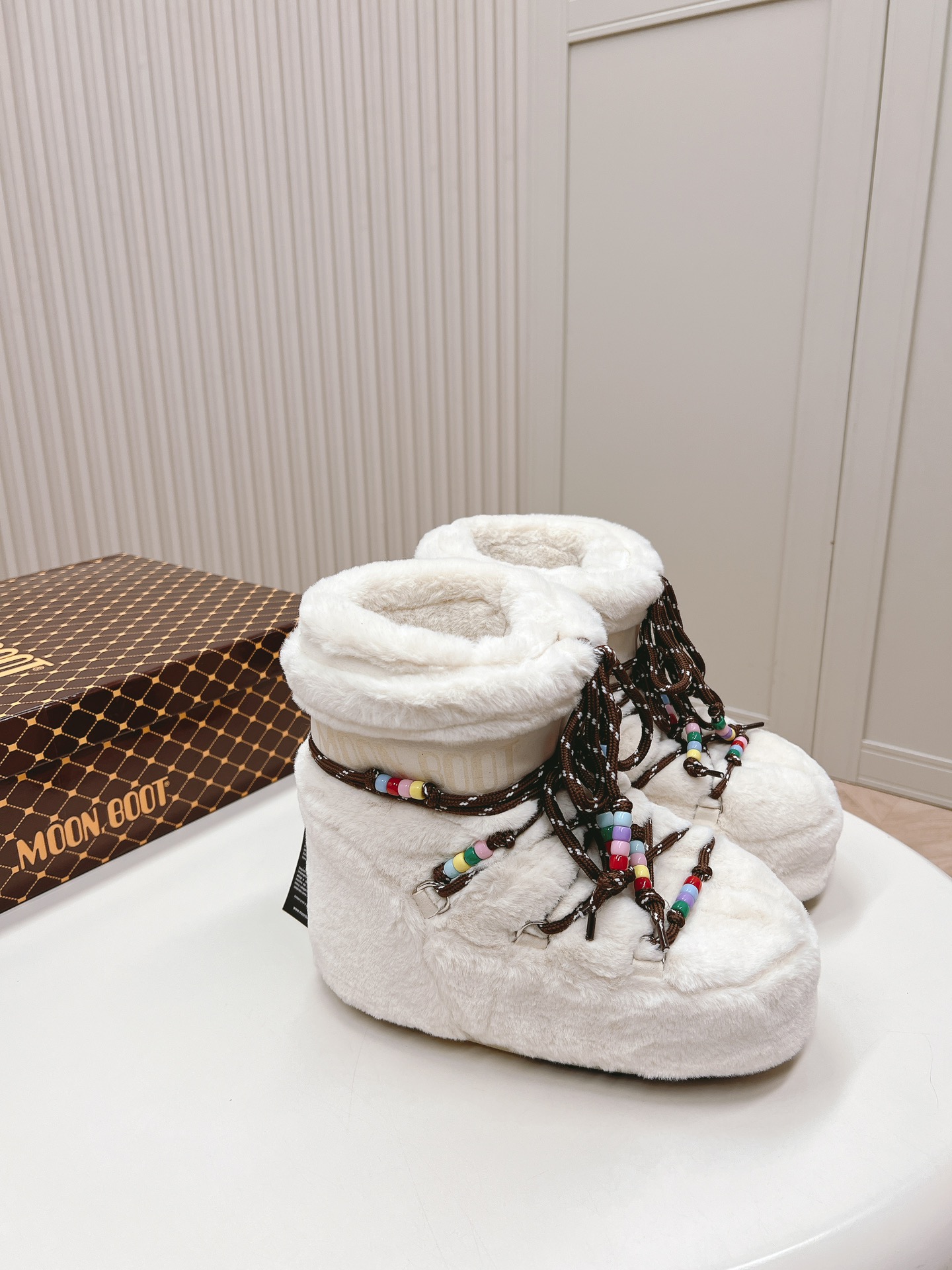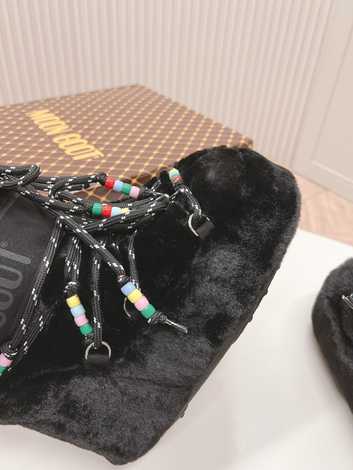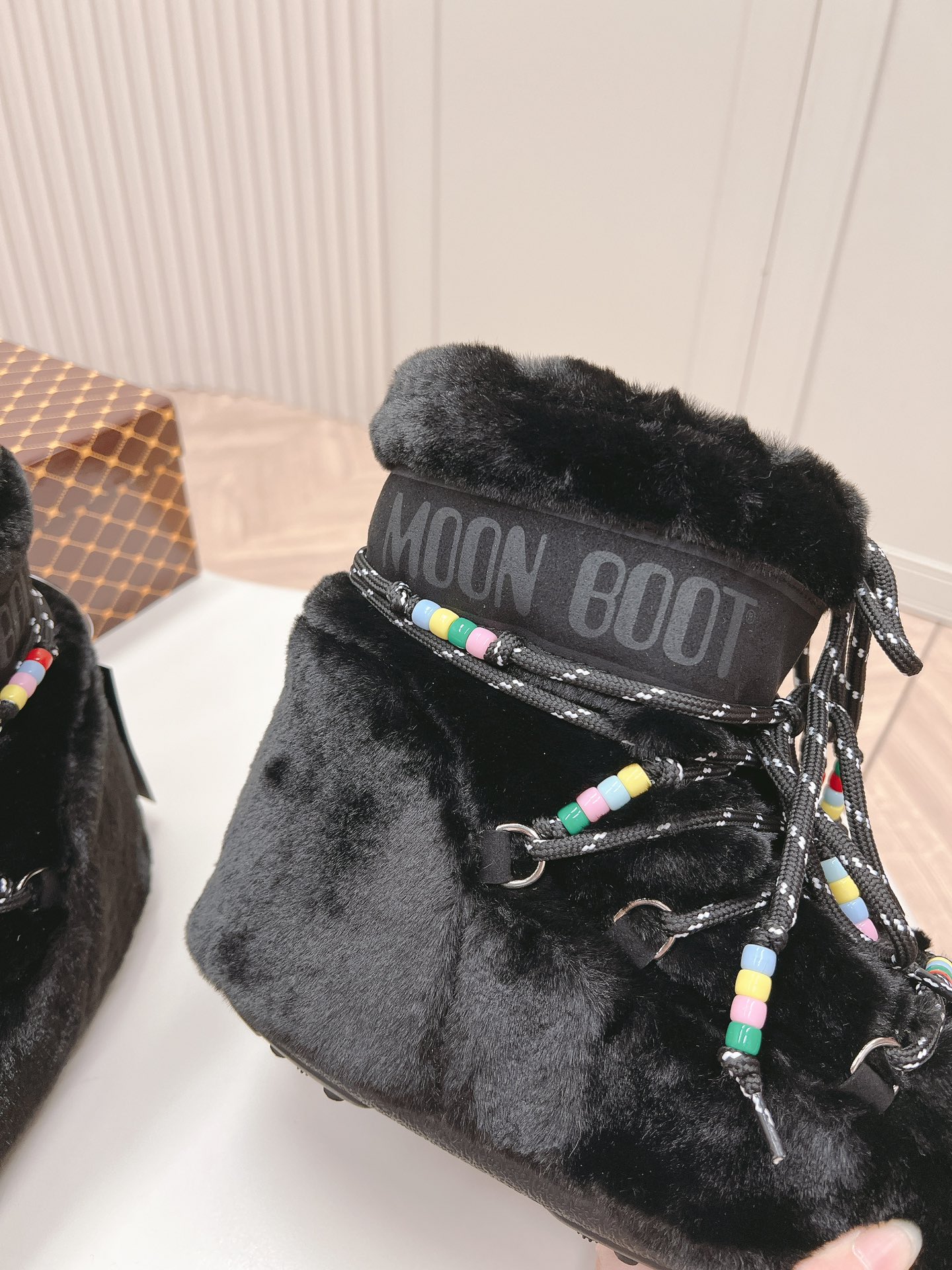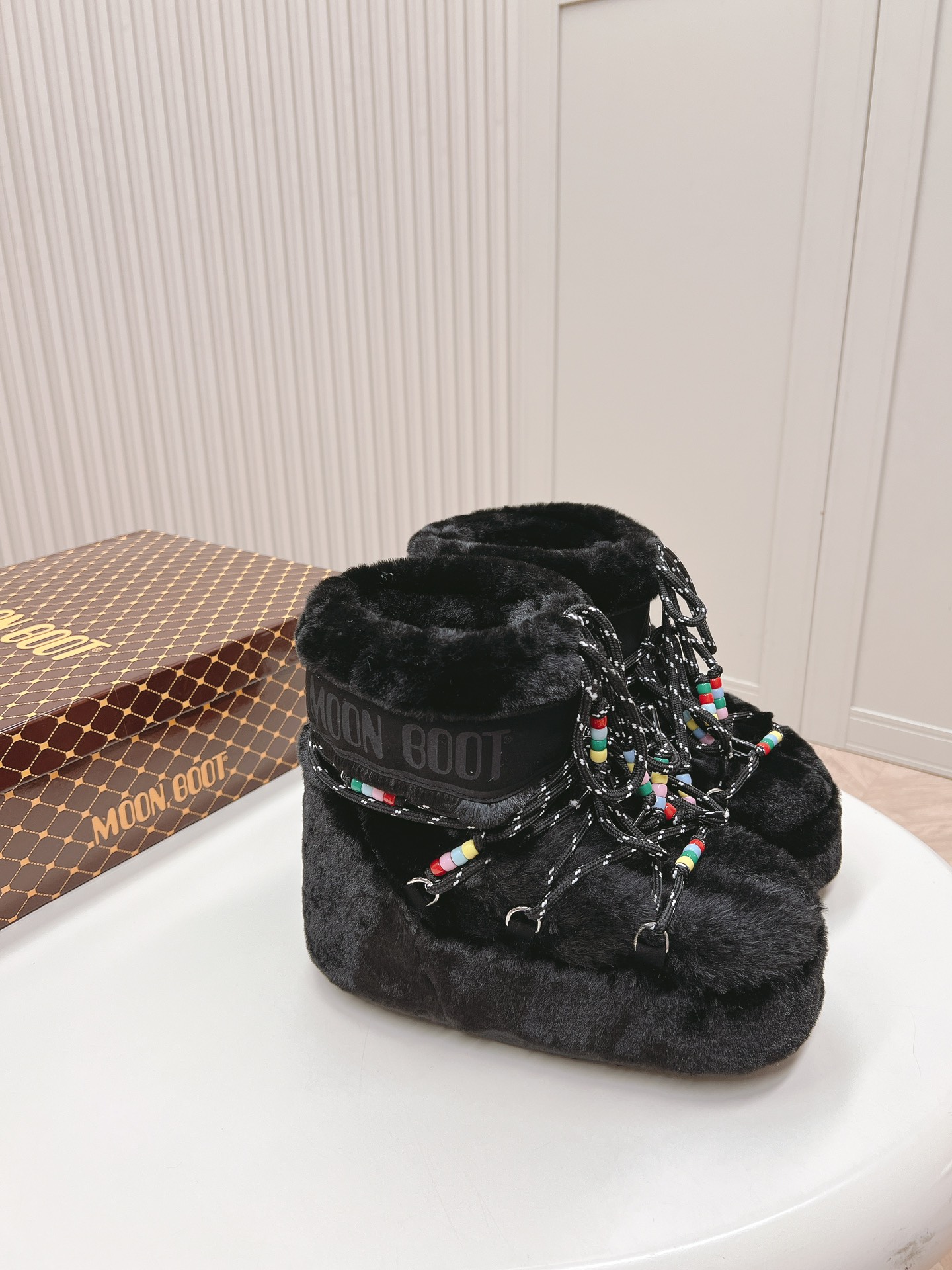 Moon Boot Shearling Fur Icon Glance Satin Nylon Lace-Up Women Snow Boots